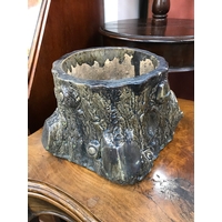 A Large heavy brown glazed stone pedestal plant stand.110CM. 57CM IN DIAMETER