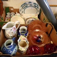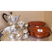 Two shaped mahogany boxes together with a small qty of silver plate