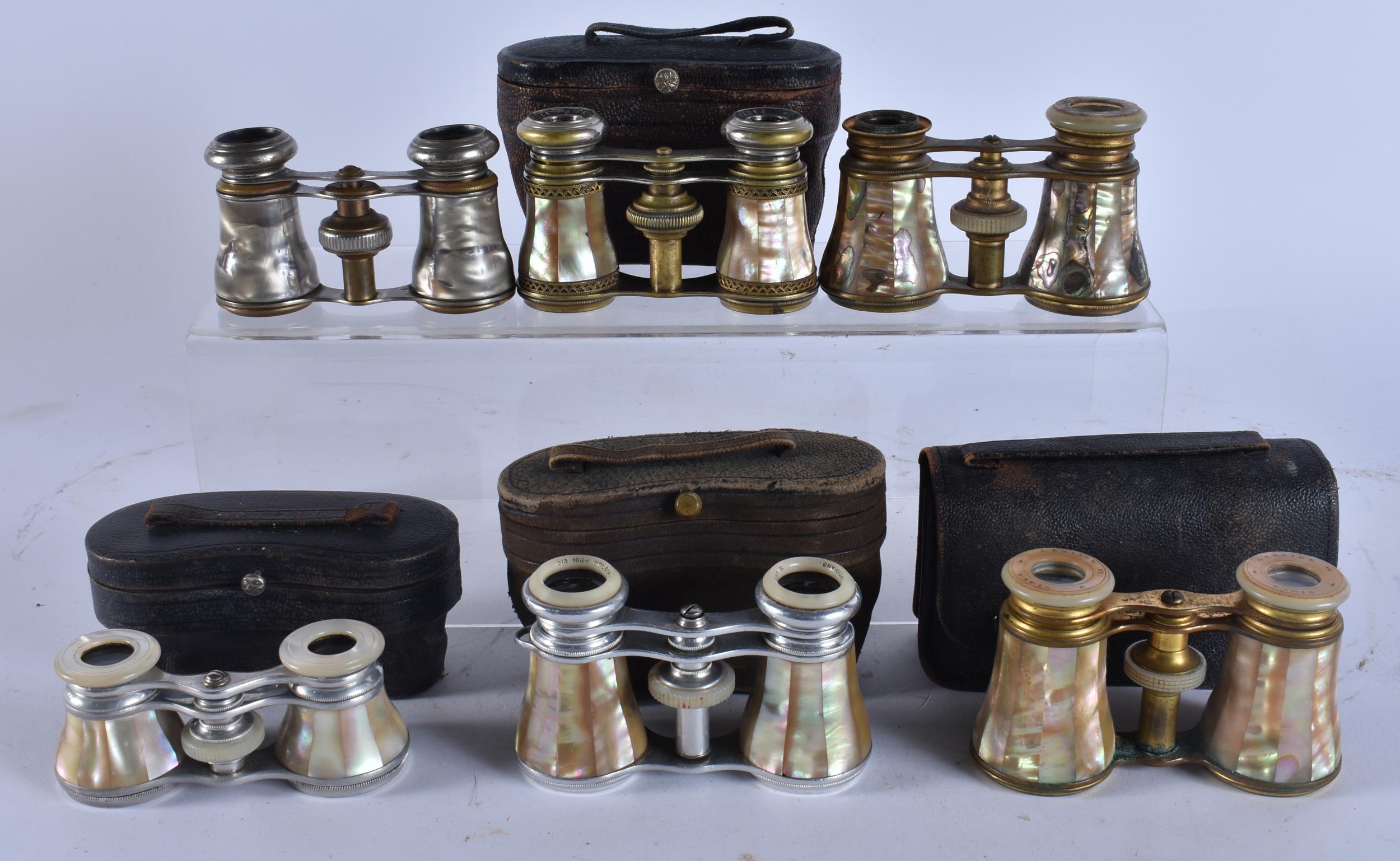 SIX PAIRS OF MOTHER OF PEARL OPERA GLASSES. (6)