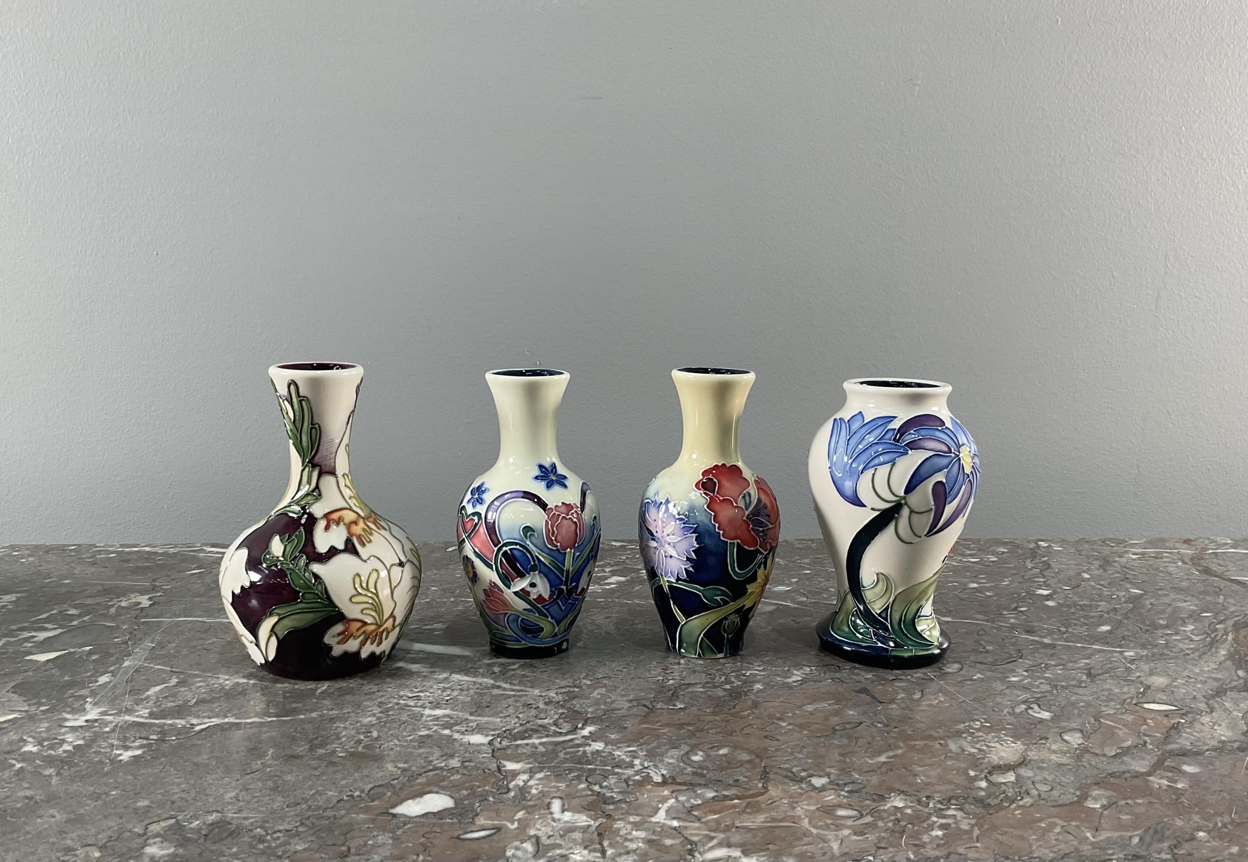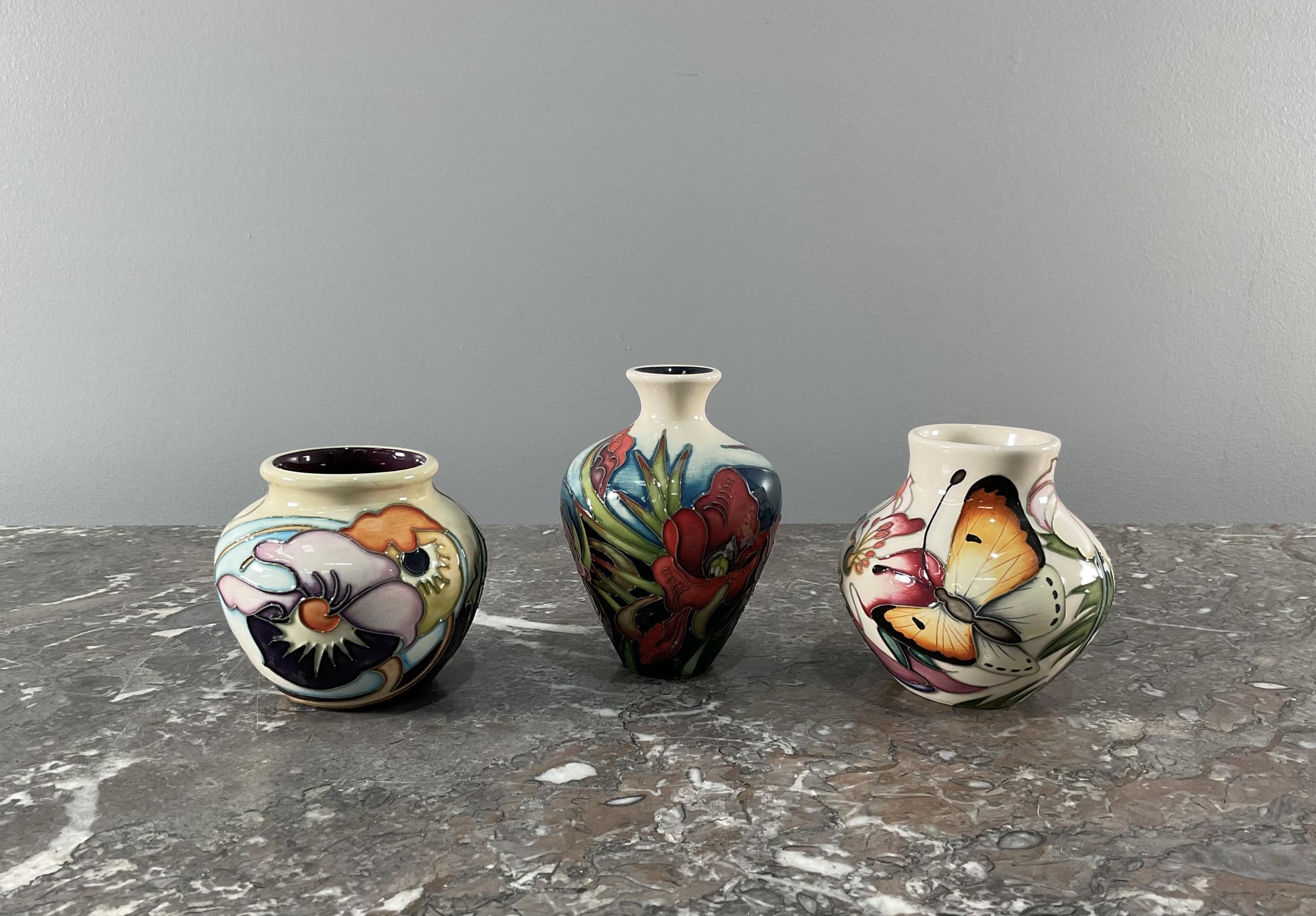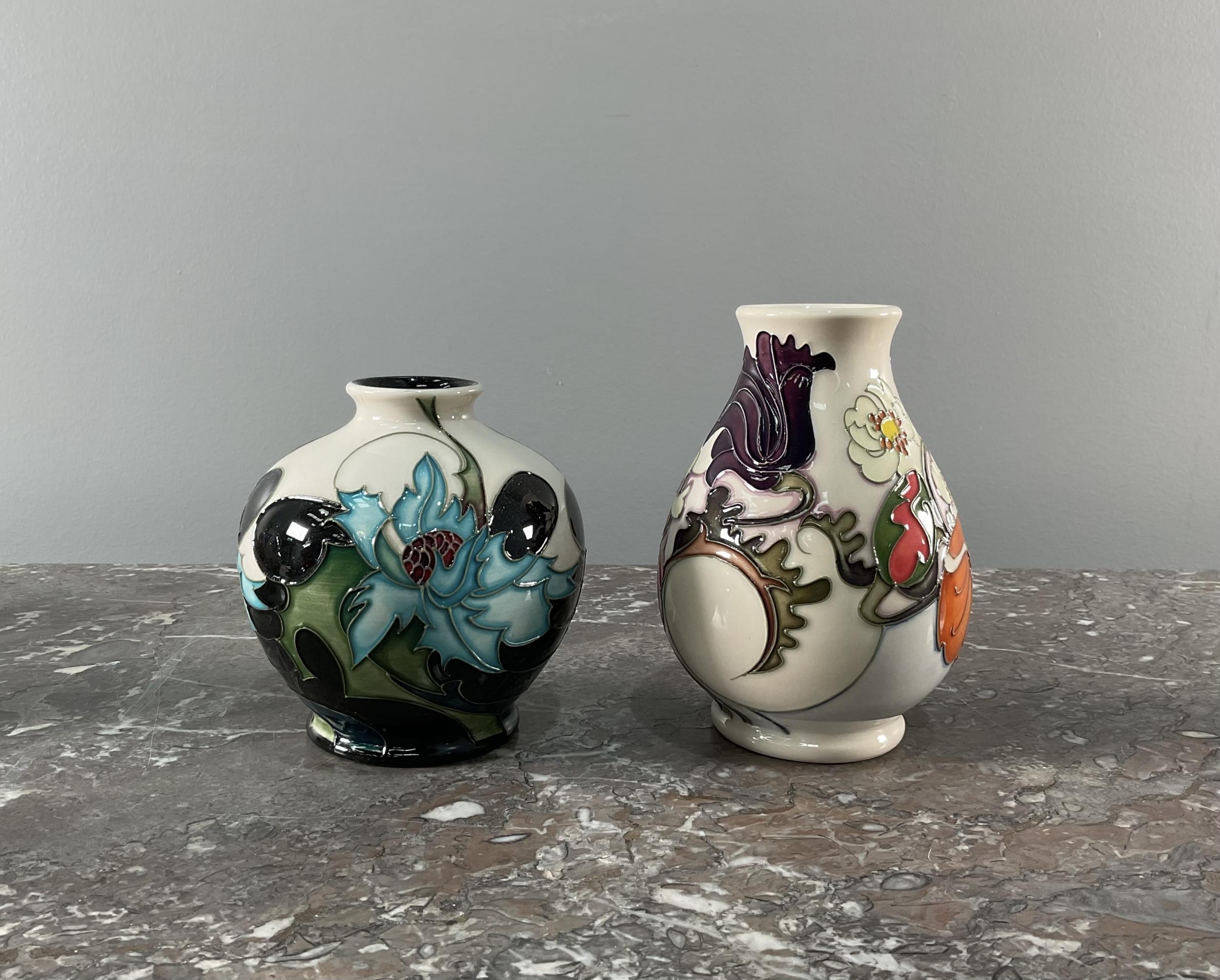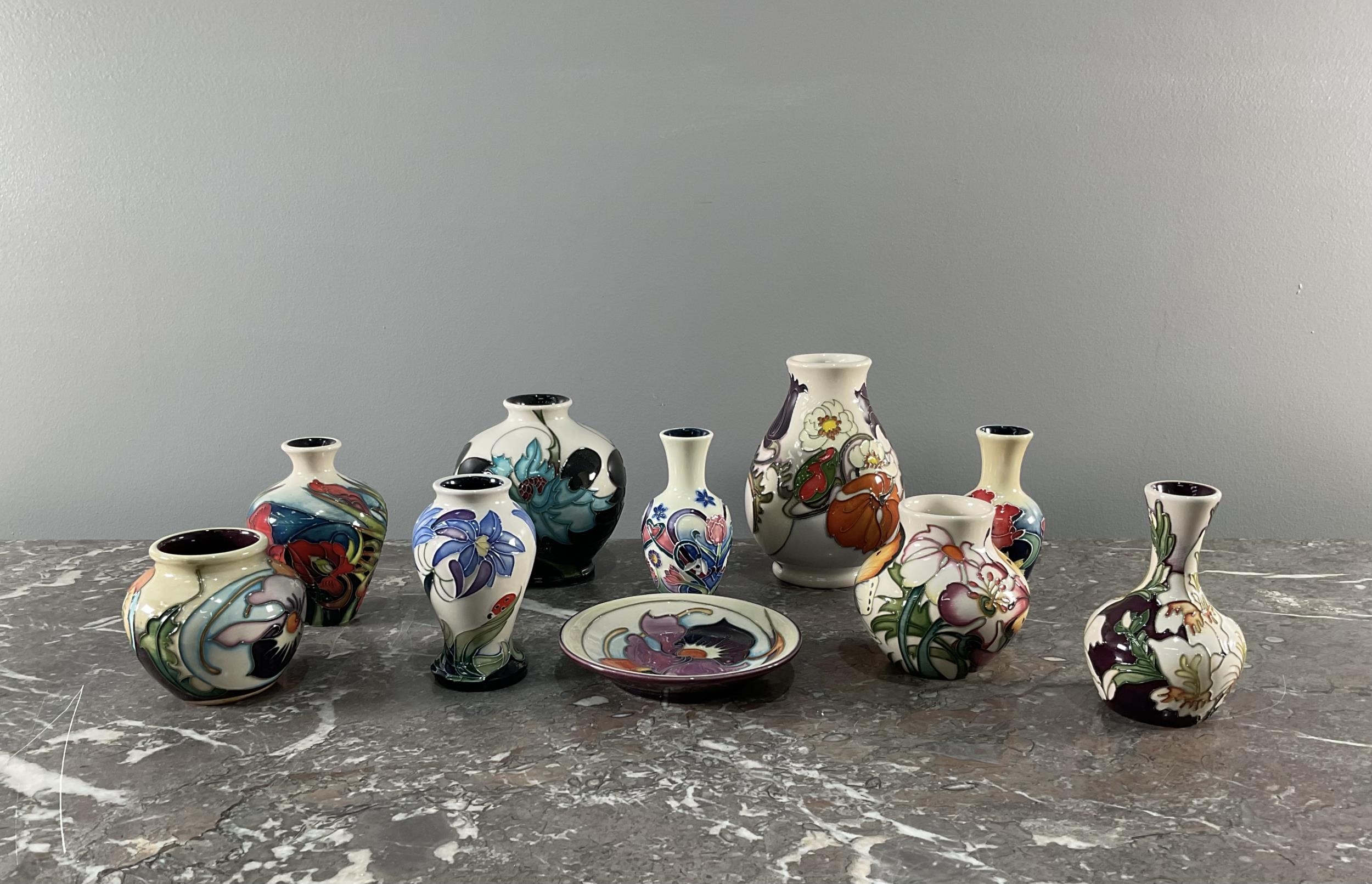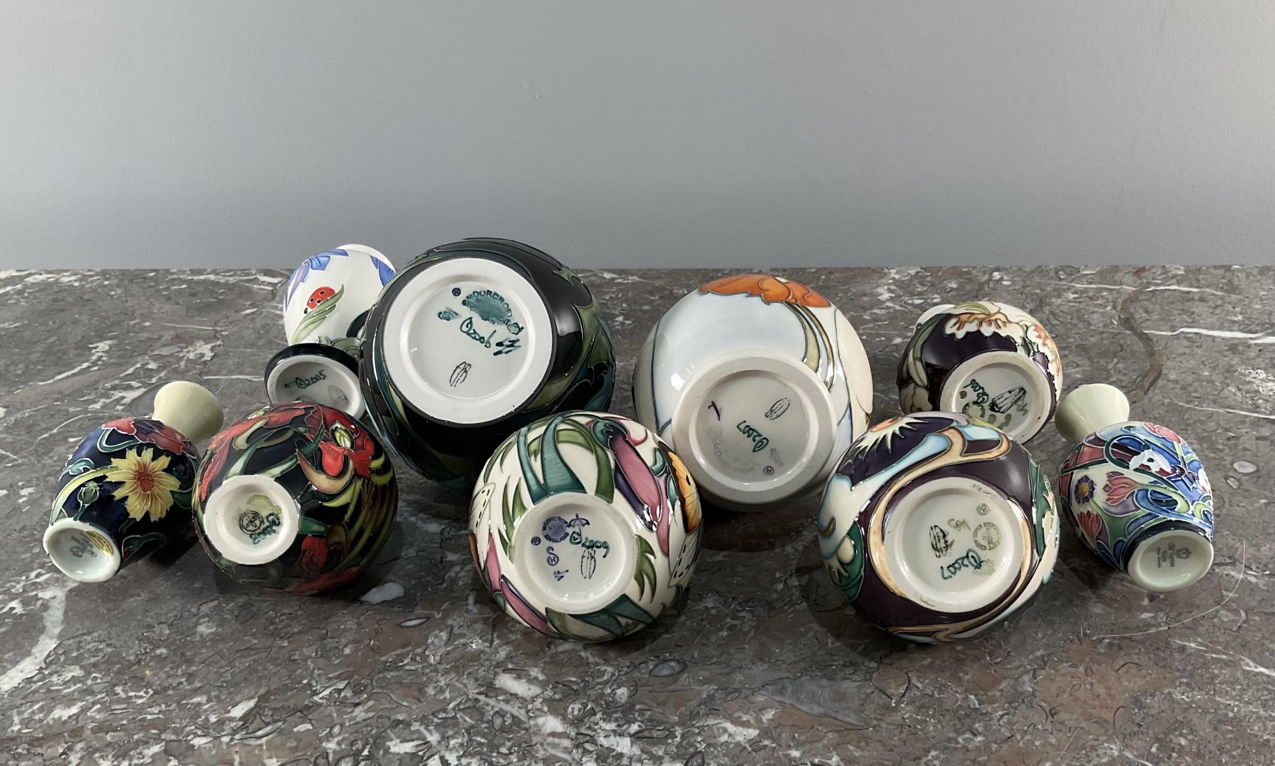 A collection of eight contemporary Moorcroft vases and bowls along with two additional "Old Tupton Ware" vases (Largest 10cm x 14cm).