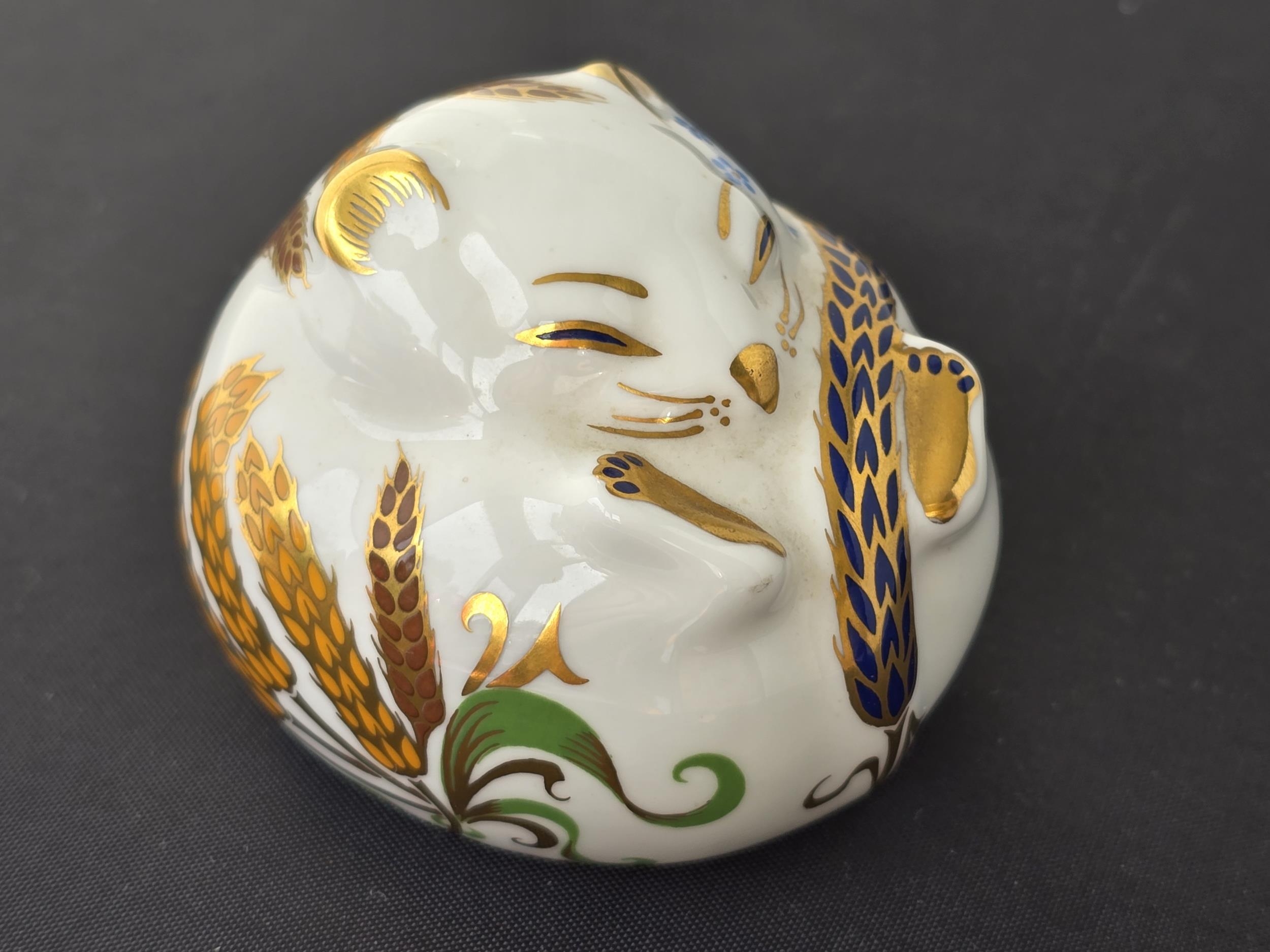 Royal Crown Derby "Sleeping Dormouse" ceramic paperweight. Gold RCD stopper - First quality. Excellent condition. Boxed.