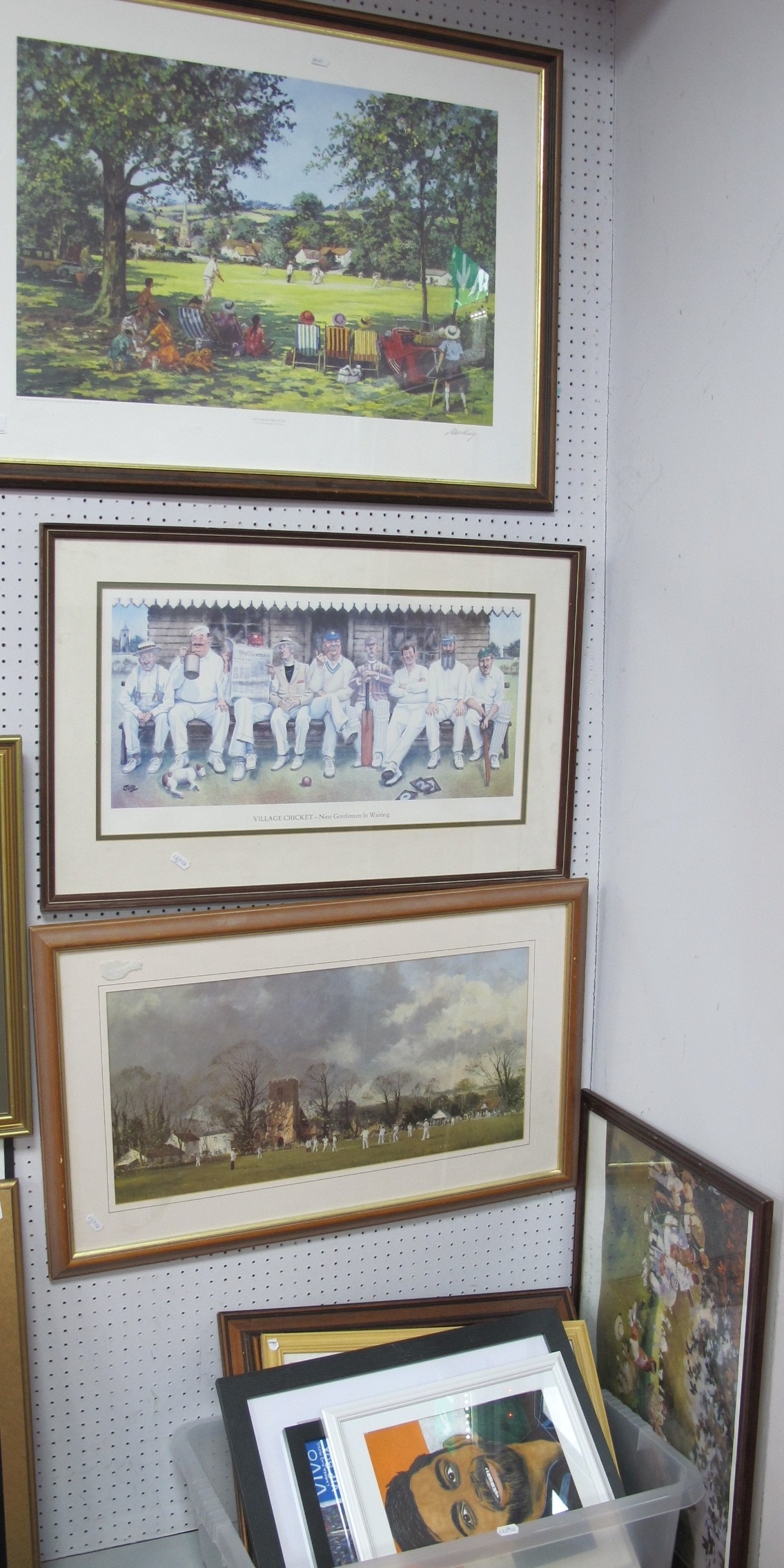 Cricket Prints - View From the Shade, signed Alan King, Spy, Birds Custard, etc, Robert Wilkinson original artworks of Kholi, Gayle, Dhoni, George Best, framed player's cards.