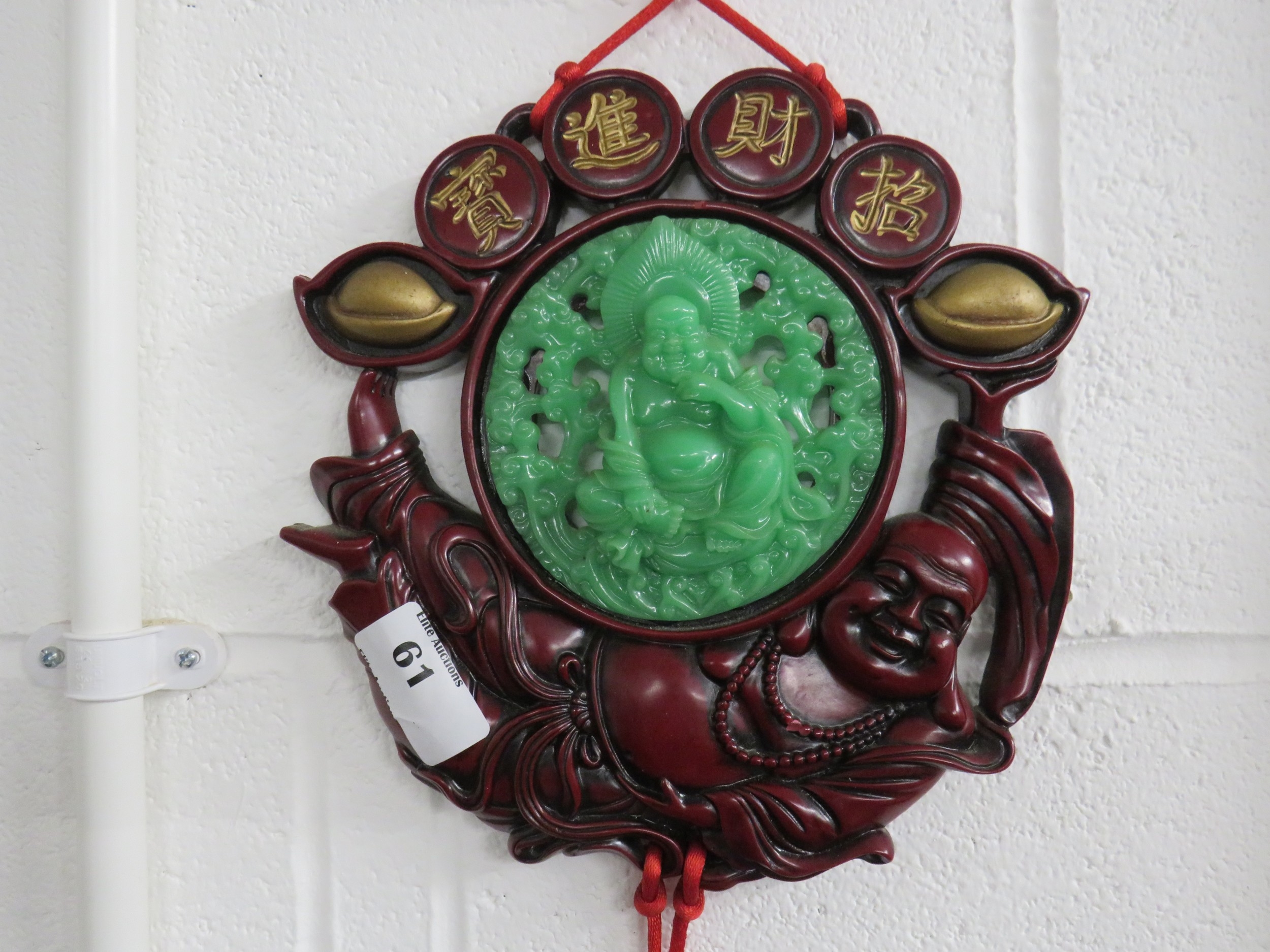Chinese large wall hanging decoration with carved Jade laughing Buddha