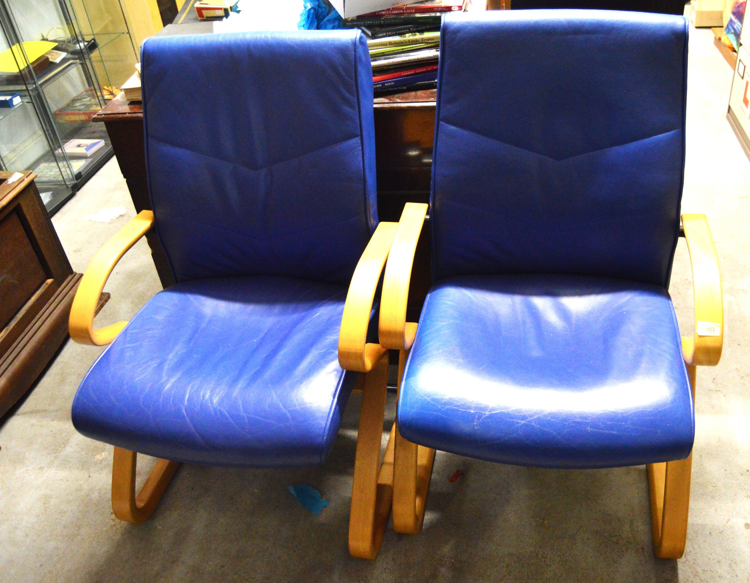 A Pair of Blue Leather Upholstered Bentwood Chairs
