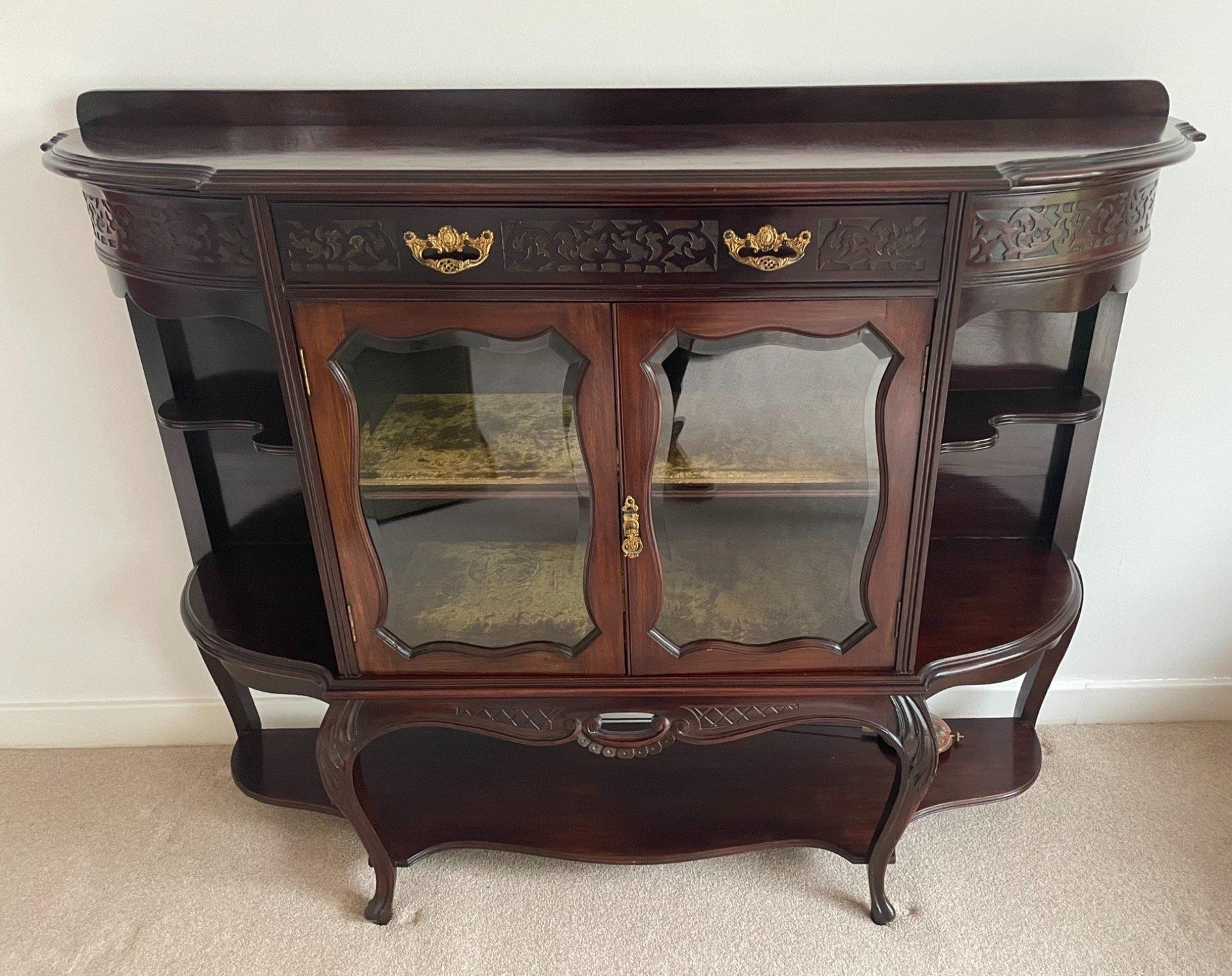 A cEDWARDIAN style display cabinet with two glazed doors and a display shelf - dimensions length 4ft length x 18 depth