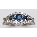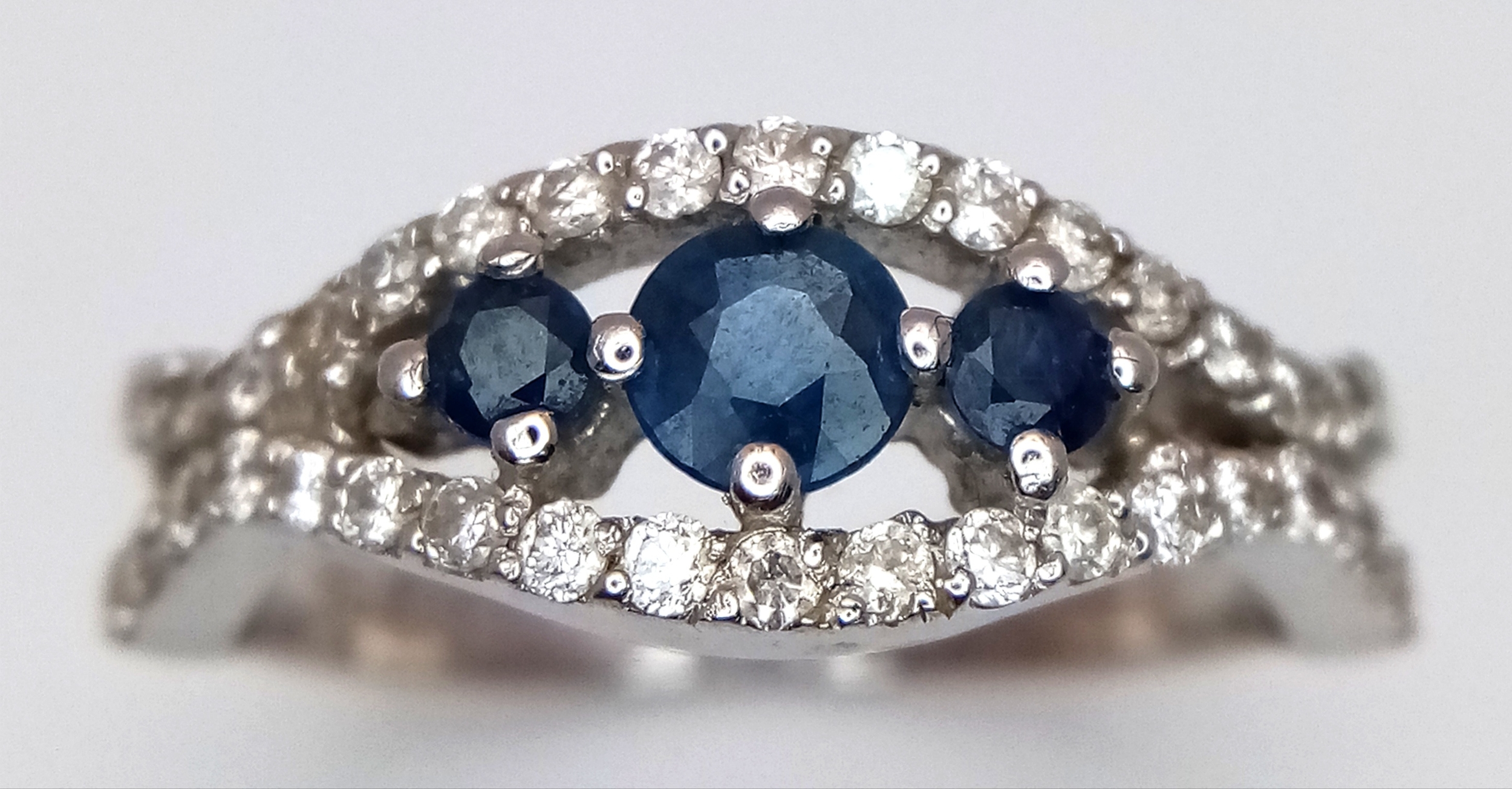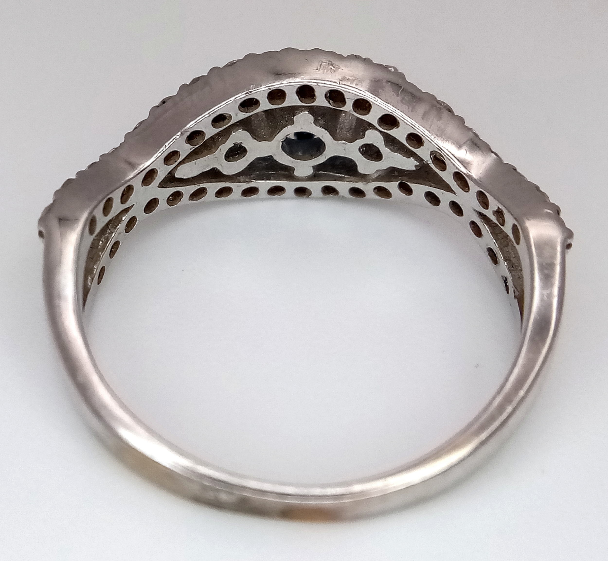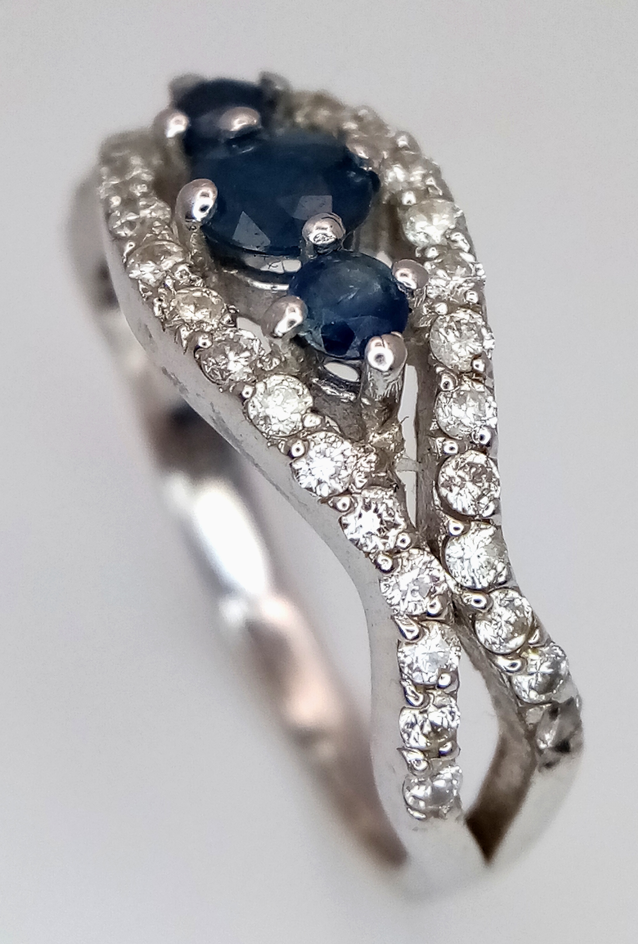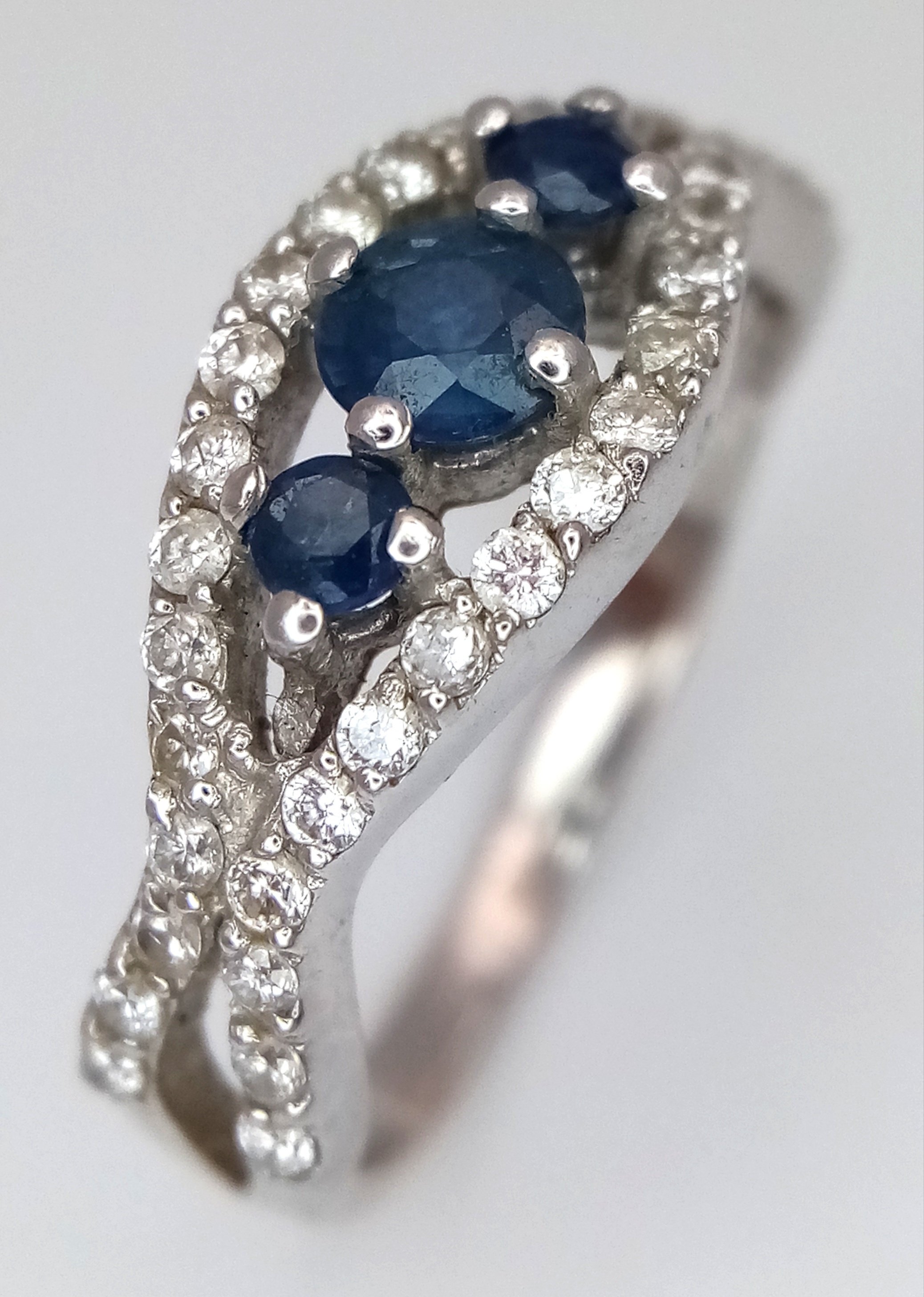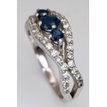 AN 18K WHITE GOLD DIAMOND AND SAPPHIRE RING. 3.8G. SIZE N. SPSA-3017.