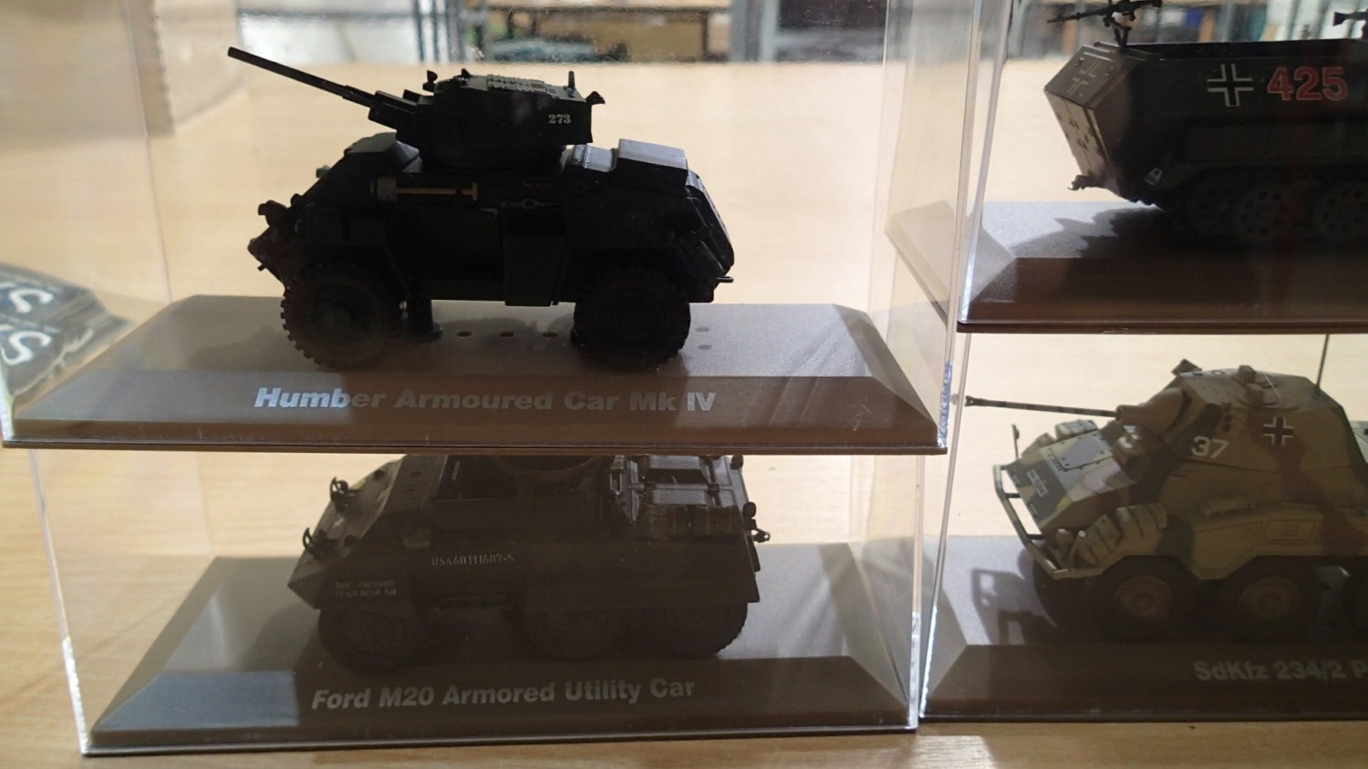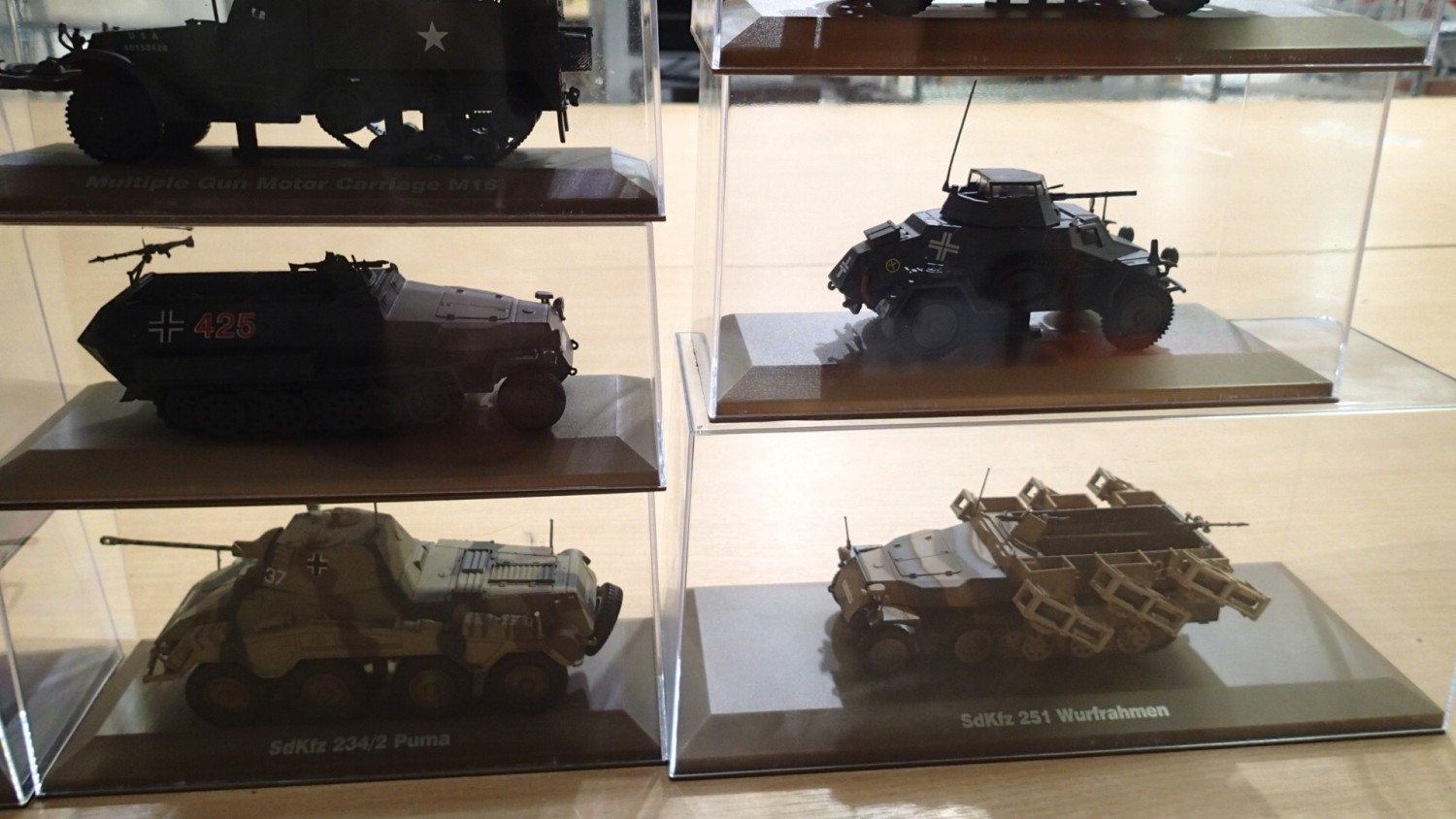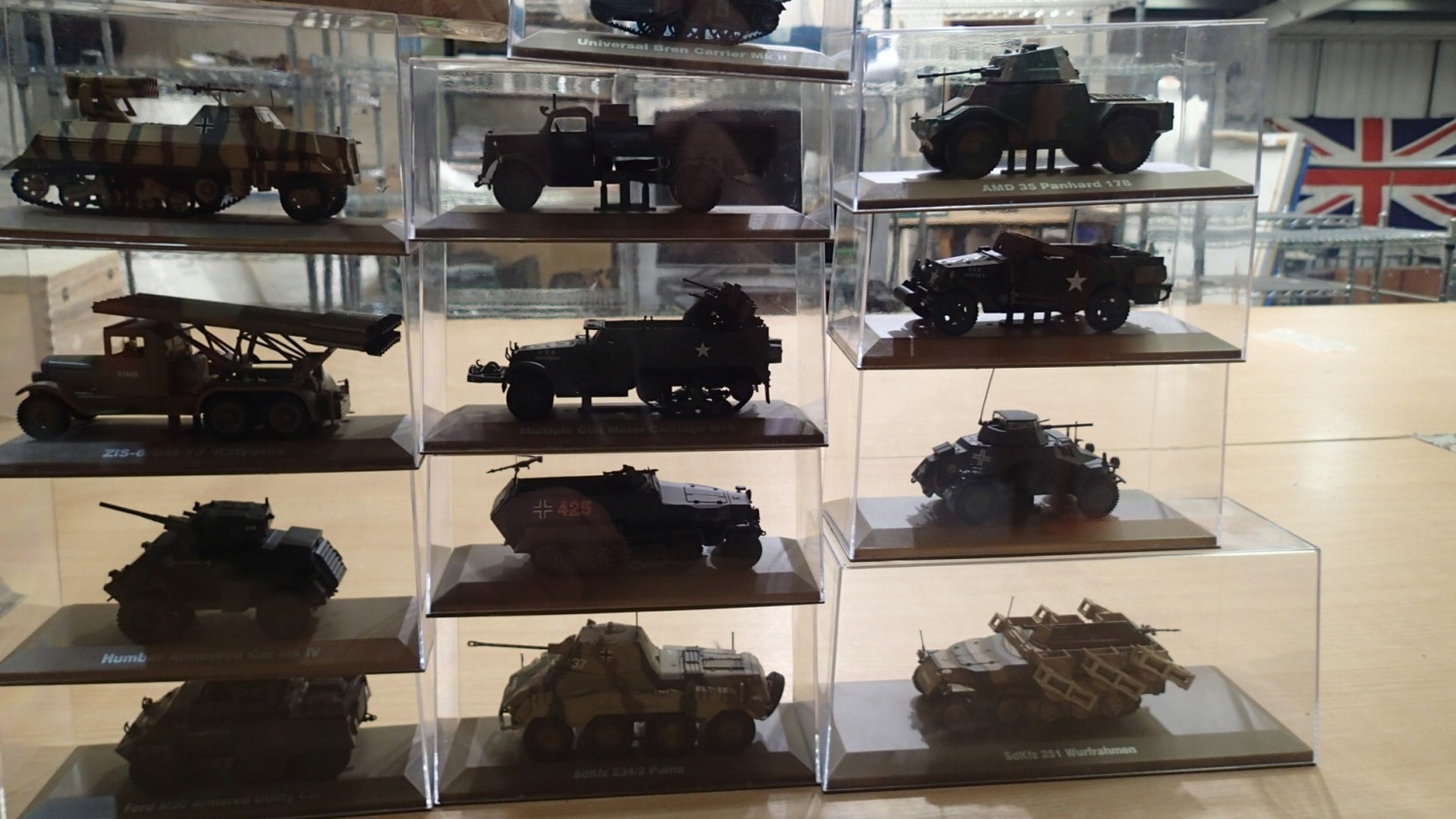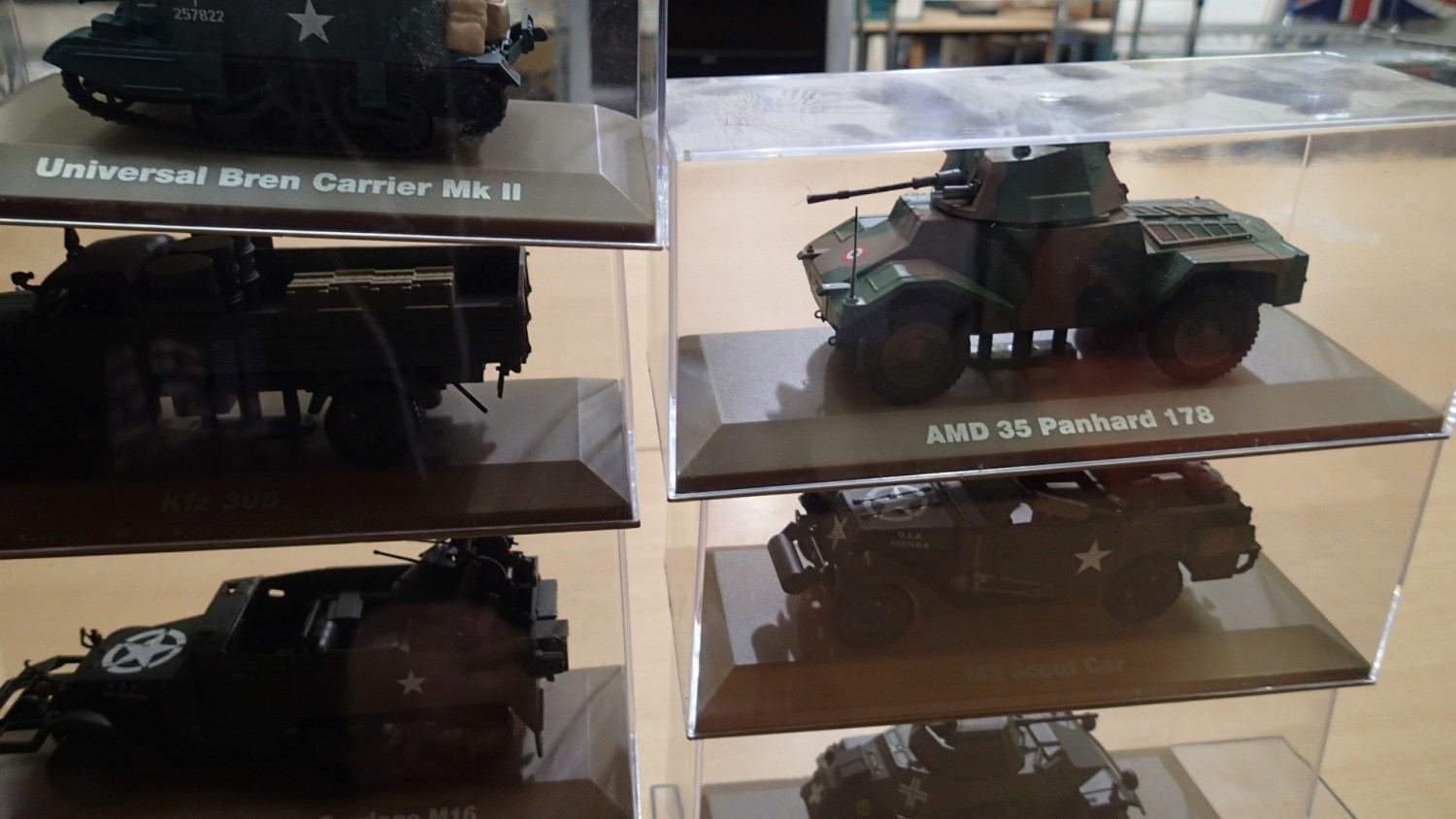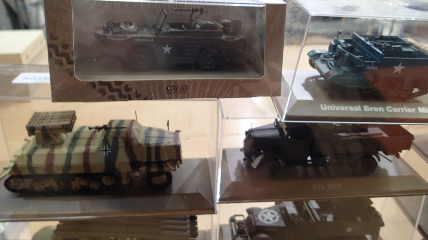 14x Atlas editions military vehicles, approx 1/35 scale, all in cases, ex display models. Not available for in-house P&P