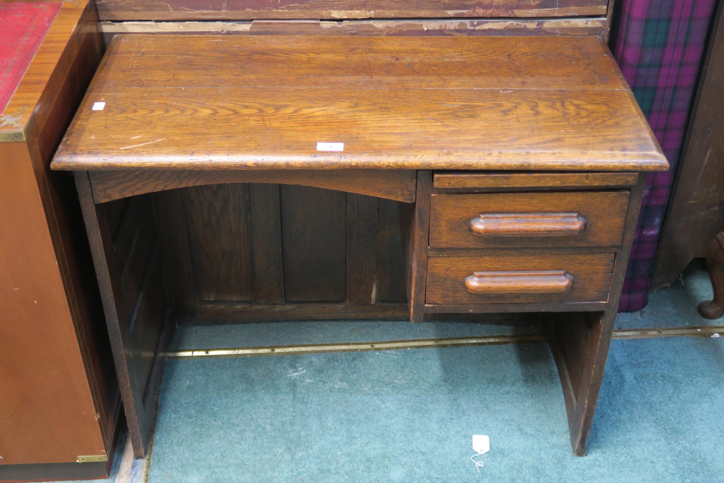 Desk is of a condition consummate with age and use with surface wear and separation to top, dimensions are as follows 69cm high x 91cm wide x 45cm deep