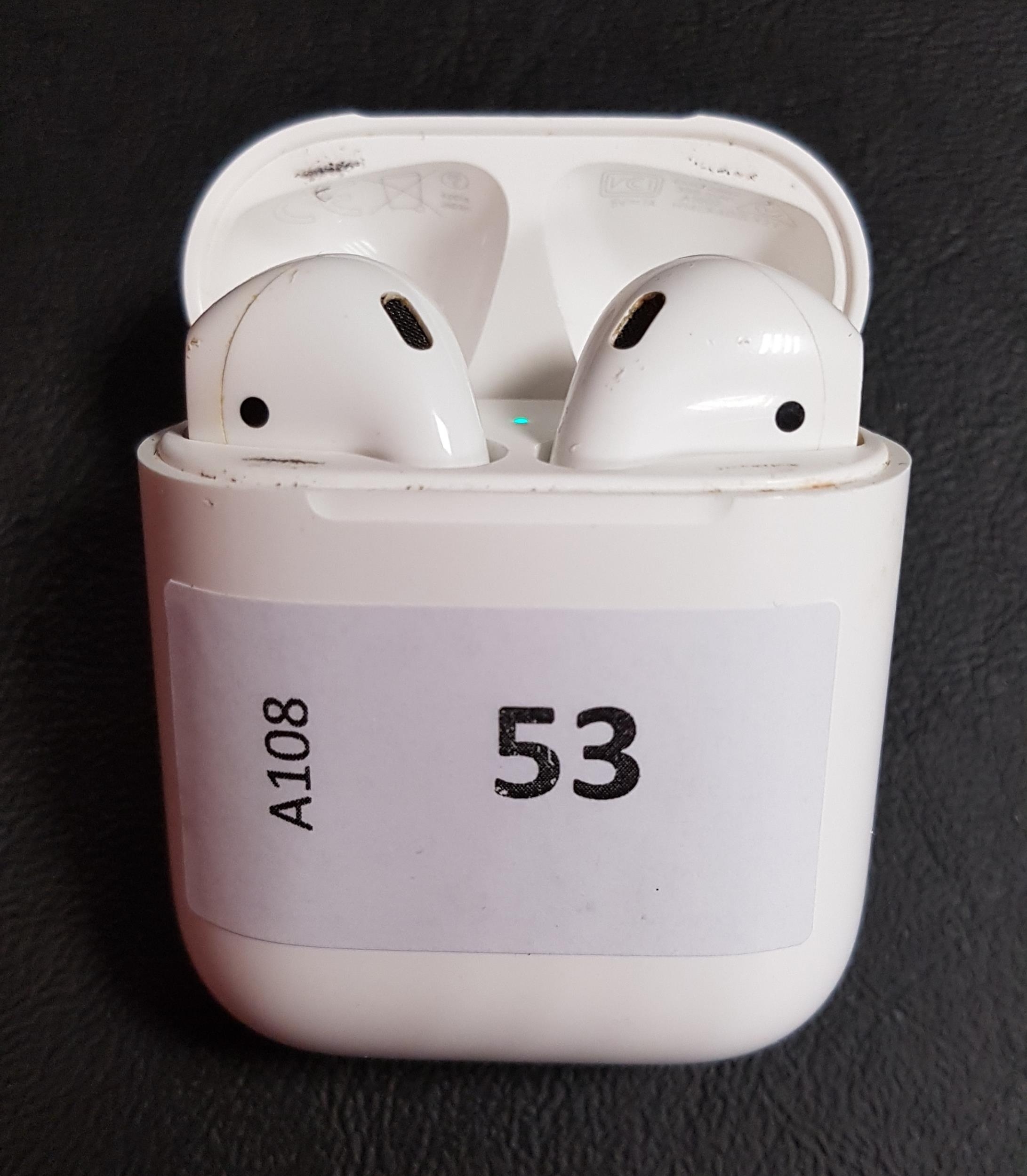 PAIR OF APPLE AIRPODS 2ND GENERATIONin Lightning charging caseNote: model number partially worn off on right earbud