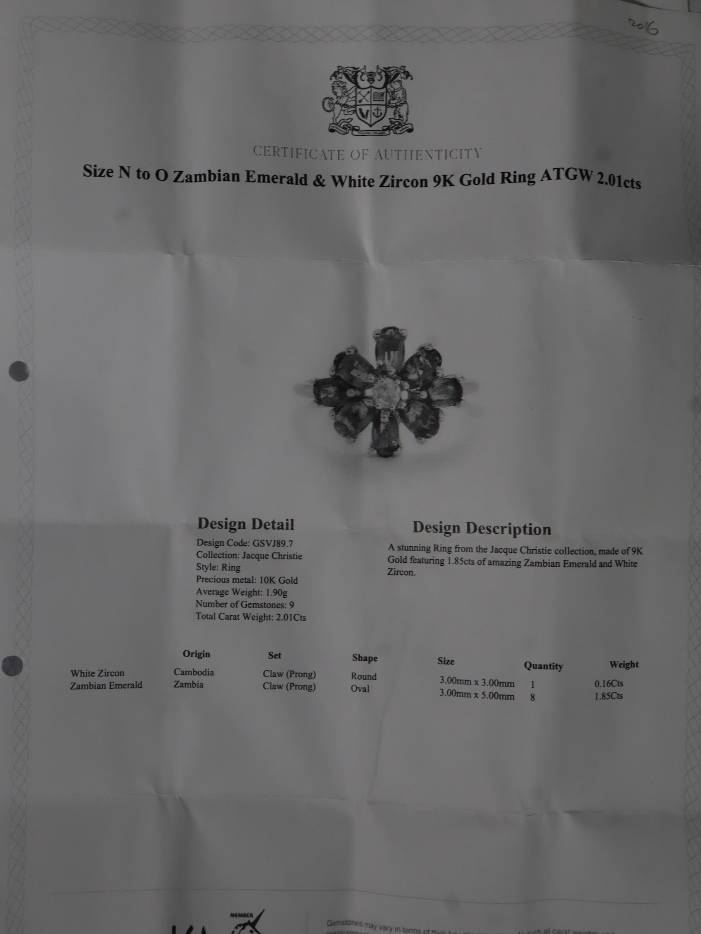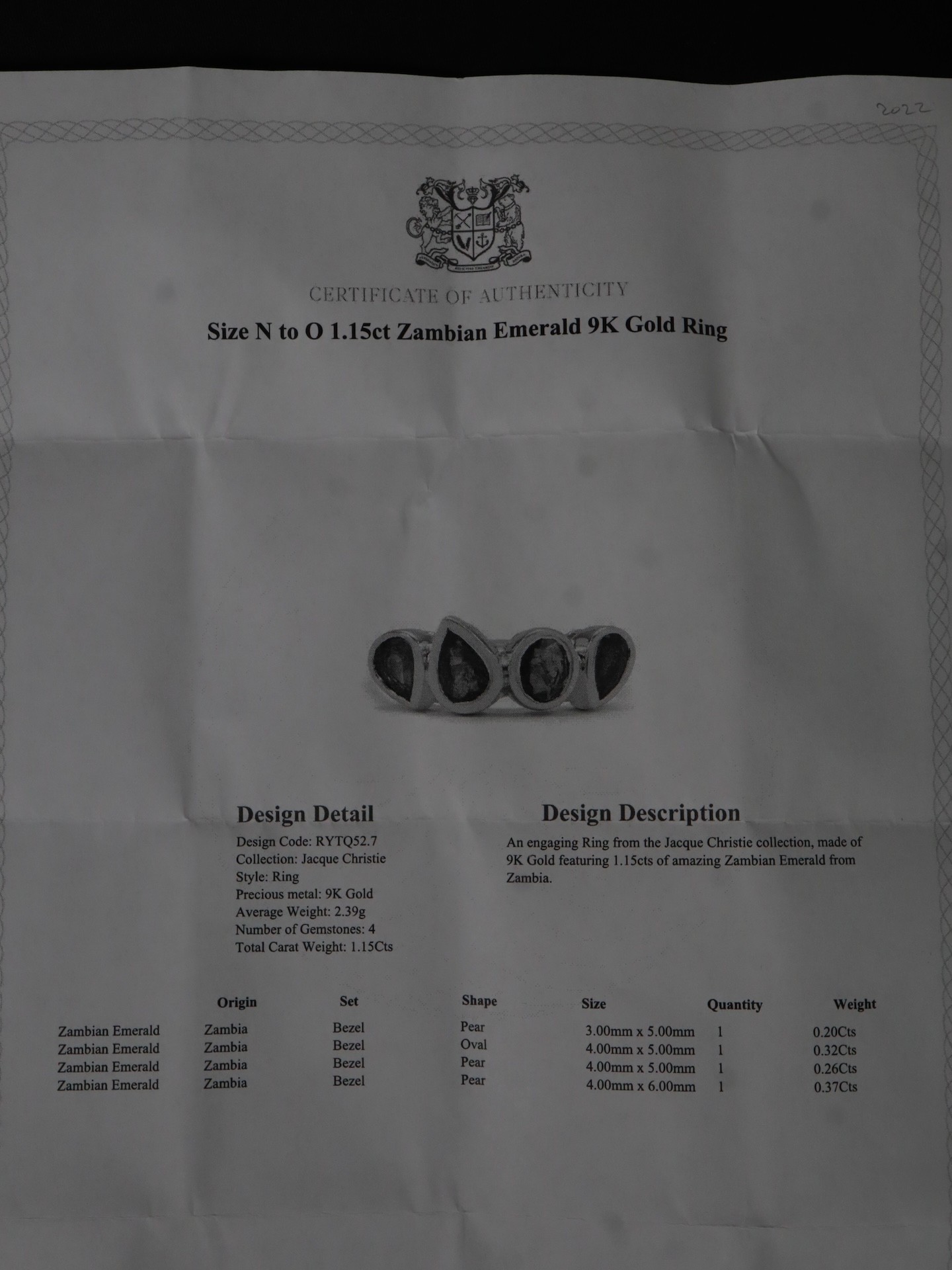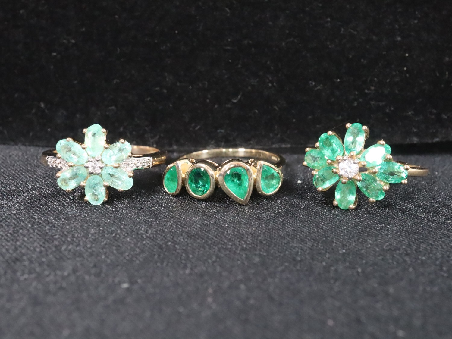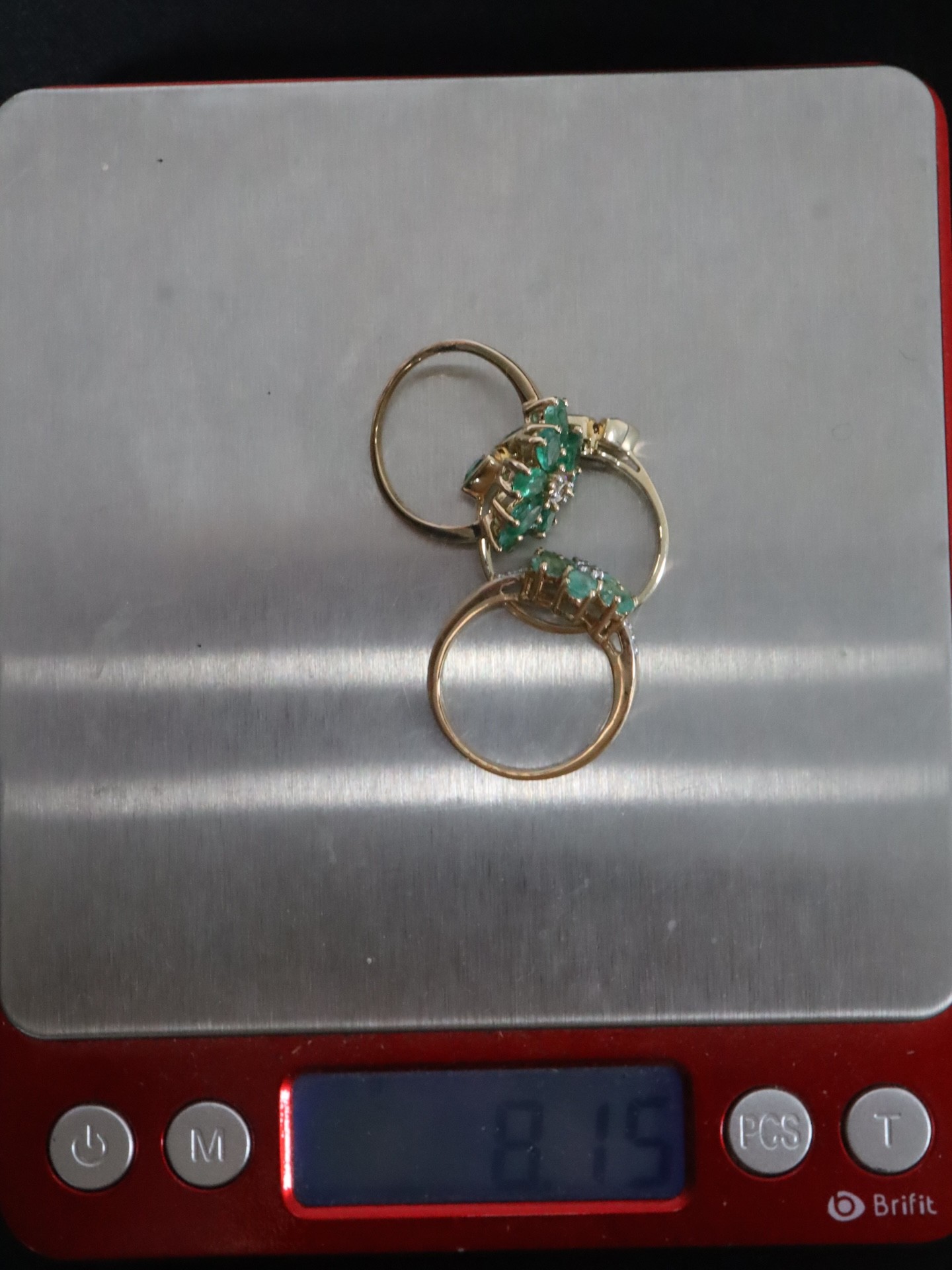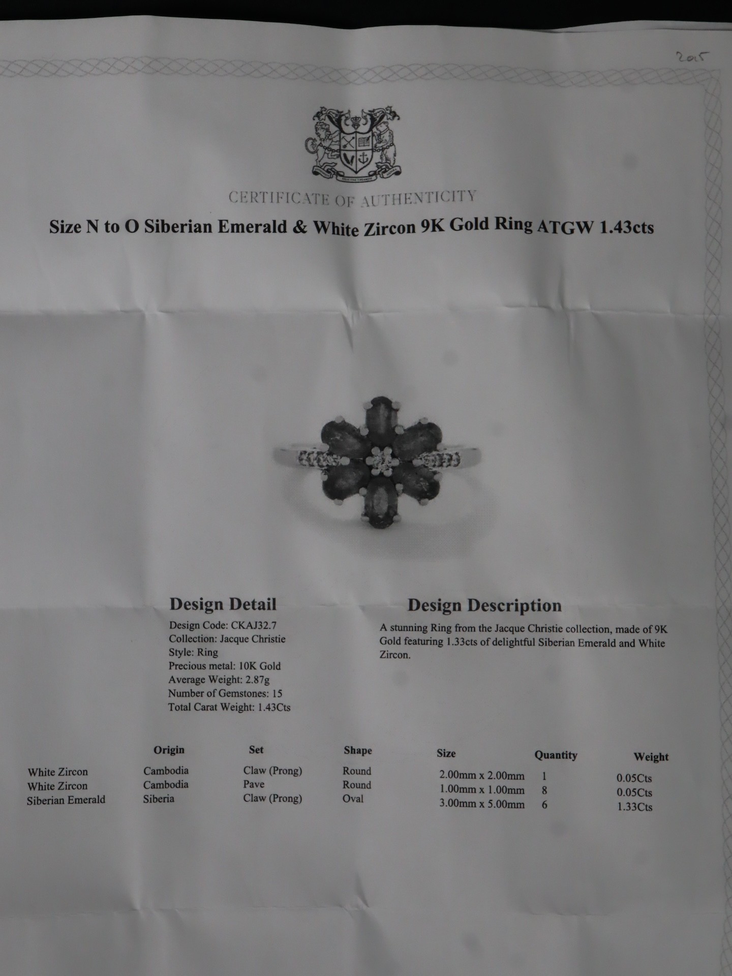 Siberian Emerald & White Zircon 9K Gold Ring Atgw 1.43cts, Zambian Emerald & White Zircon 9K Gold Ring Atgw 2.01cts, 1.15ct Zambian Emerald 9K Gold Ring Size N to O -8.1g