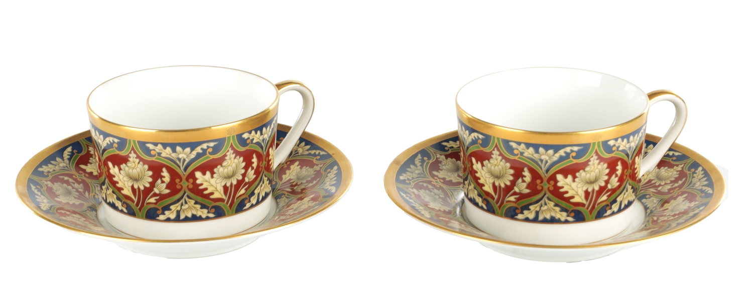 A SET OF TWO CHRISTIAN DIOR PORCELAIN CUPS AND SAUCERS