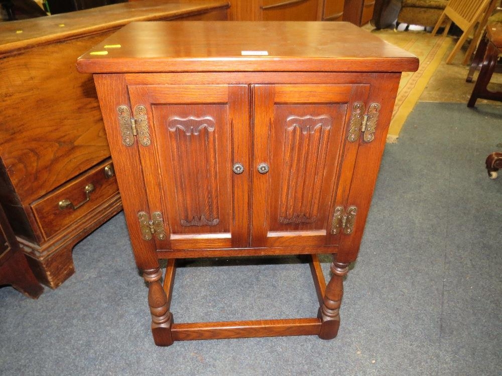 AN 'OLD CHARM' TWO DRAWER LINENFOLD CUPBOARD H-71 W-50 CM