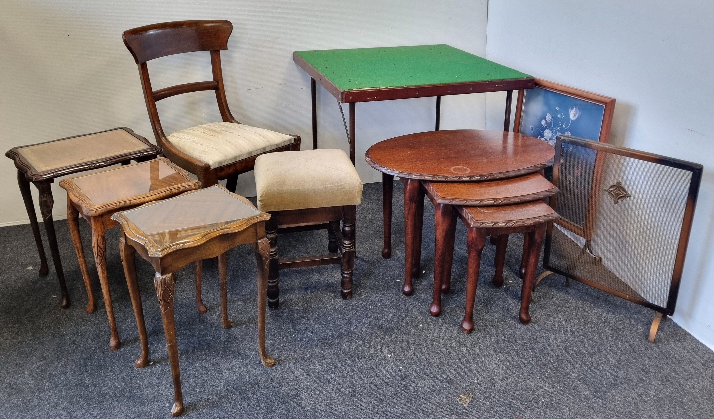 Assorted Lot of Furniture to include Nest of Tables, chair, card table etc.