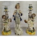 A pair of late 19th century Ernst, Bohne and Sohne figural candlesticks, the two children surrounding the central column with a floral garland, applied flowers throughout 30.5cms high; etc. (3)