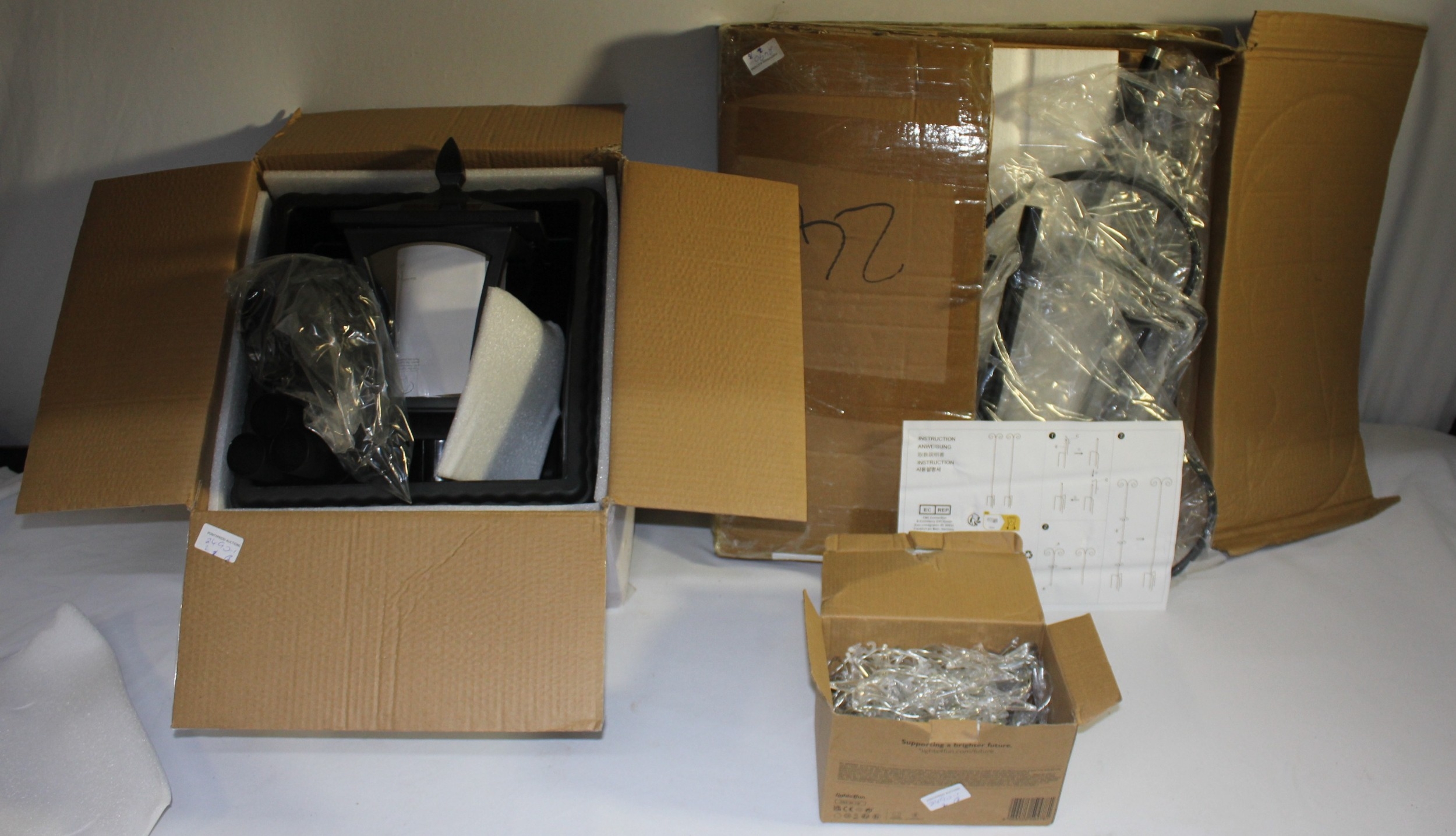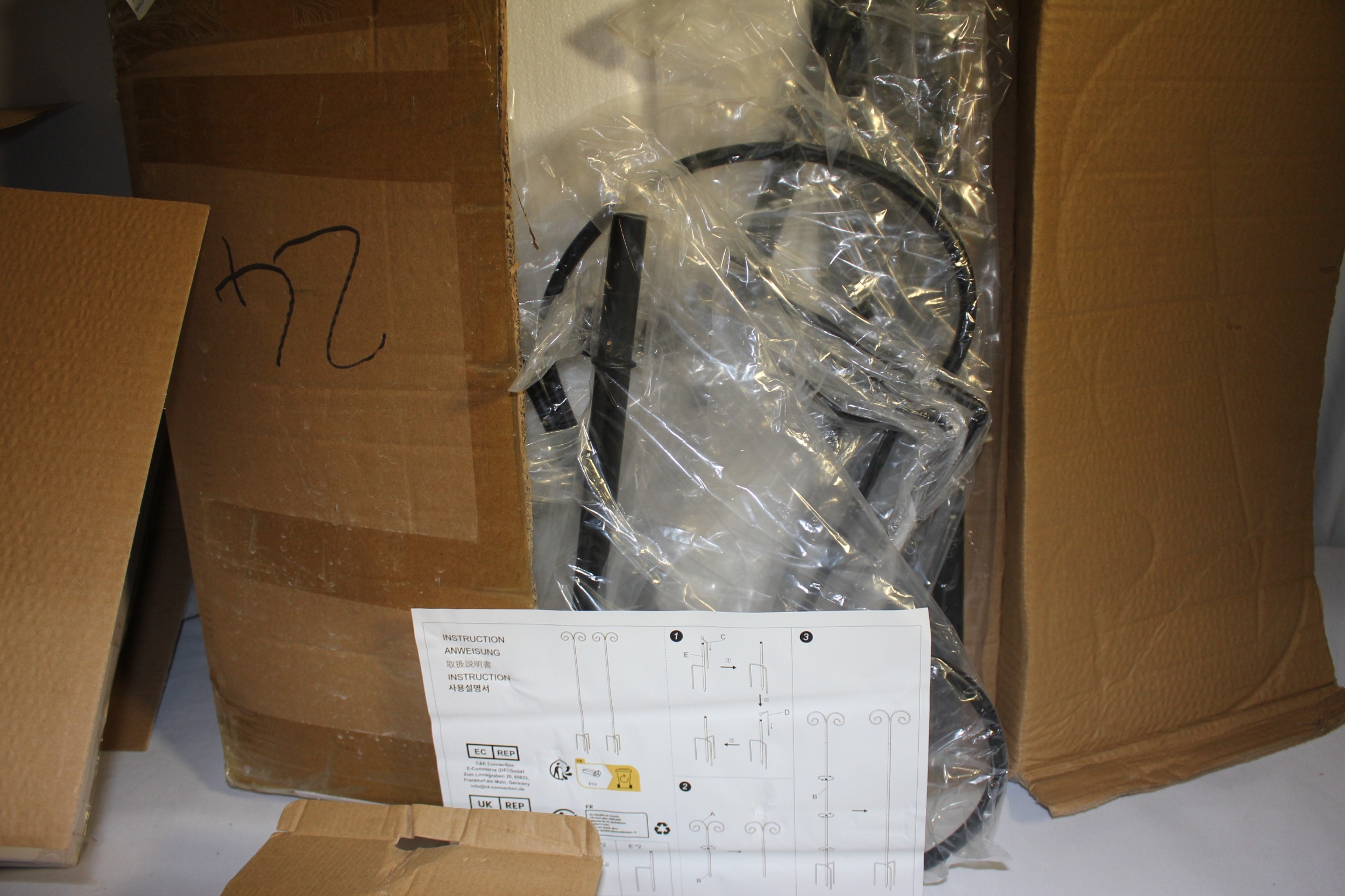 NEW STUDIO LAMP POST, 2 NEW METAL PLANT HANGERS/BIRD FEEDER HANGERS AND SET OF STAR CURTAIN LIGHTS