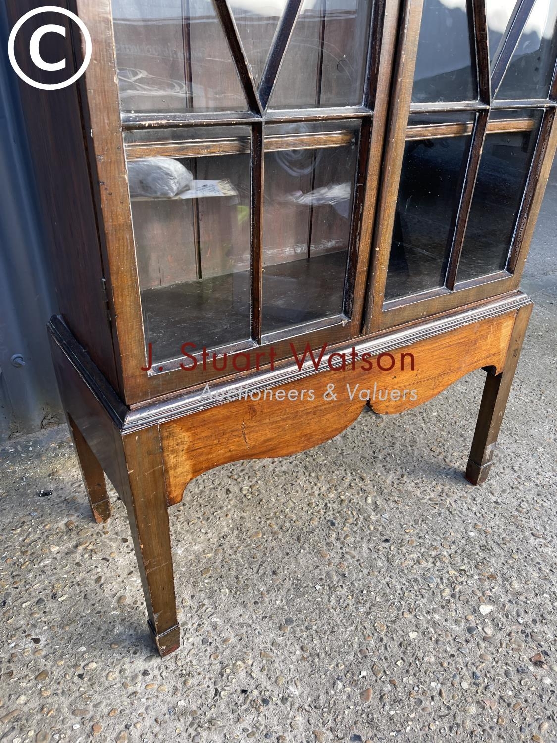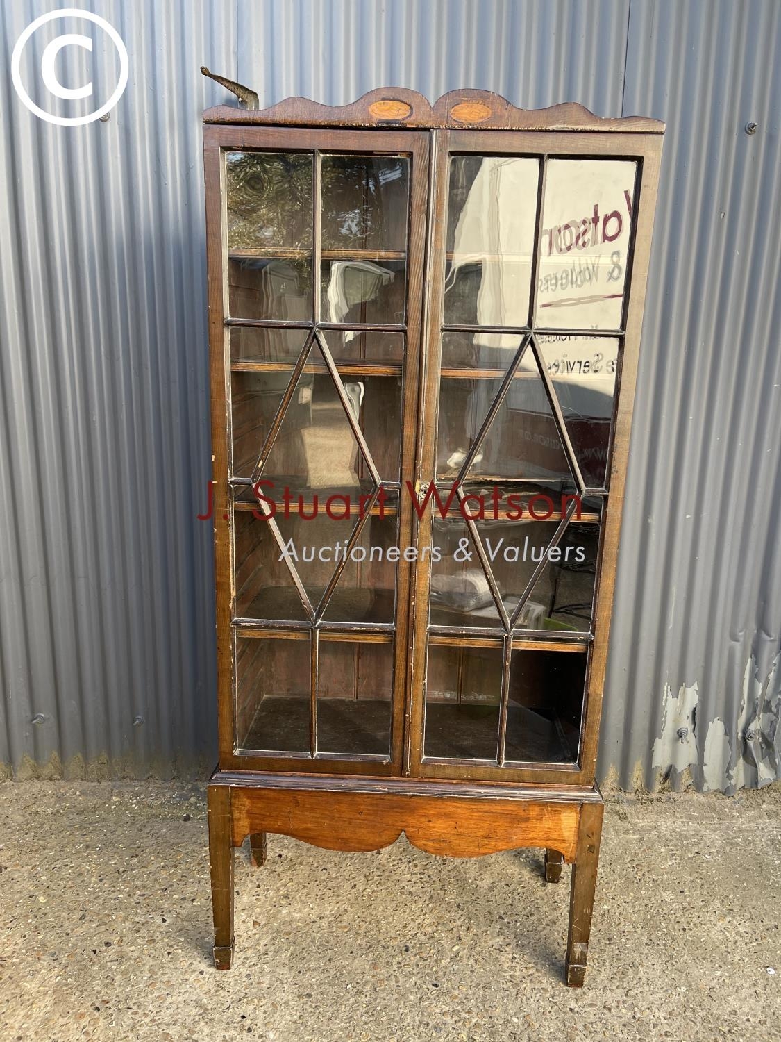 A Victorian mahogany glazed bookcase with satinwood inlay and four adjustable shelves 81x35 x182