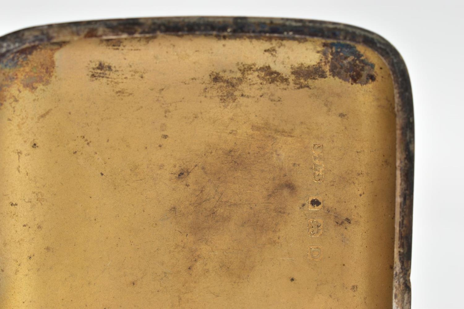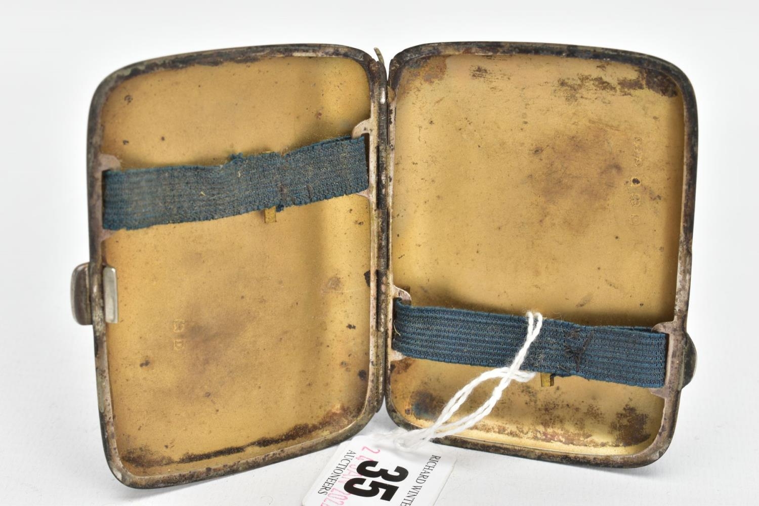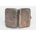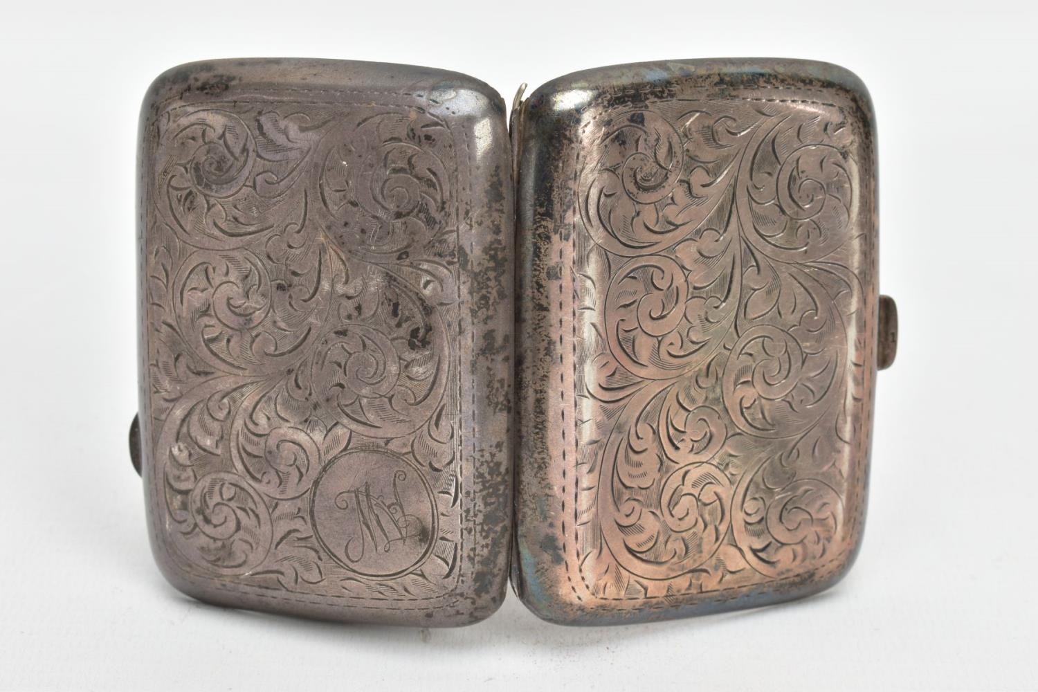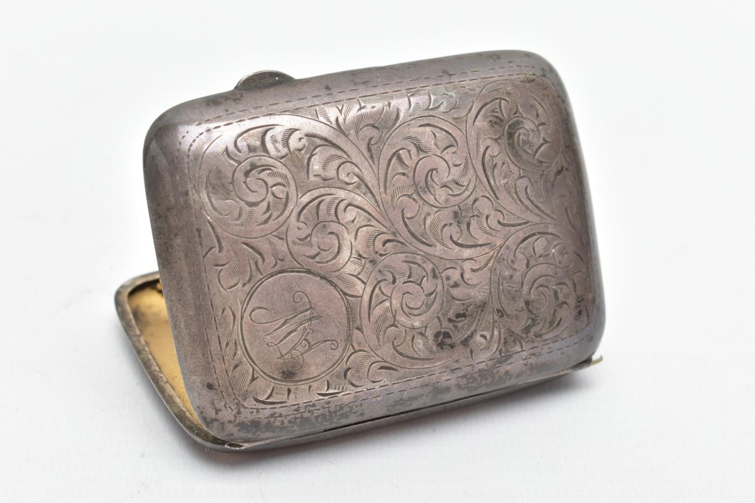 A SILVER CIGARETTE CASE, a silver case with foliage detailing and engraved cartouche with the initials 'AW', gilt interior fitted with original elastic fixtures, approximate length 84mm, approximate width 61mm, hallmarked 'John Thompson & Sons' Birmingham 1928, approximate gross weight 66.2 grams, 2.13 ozt, (condition report: general moderate use, some indenting, would benefit from a gentle clean and polish)