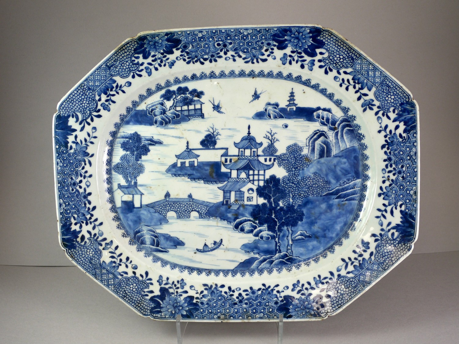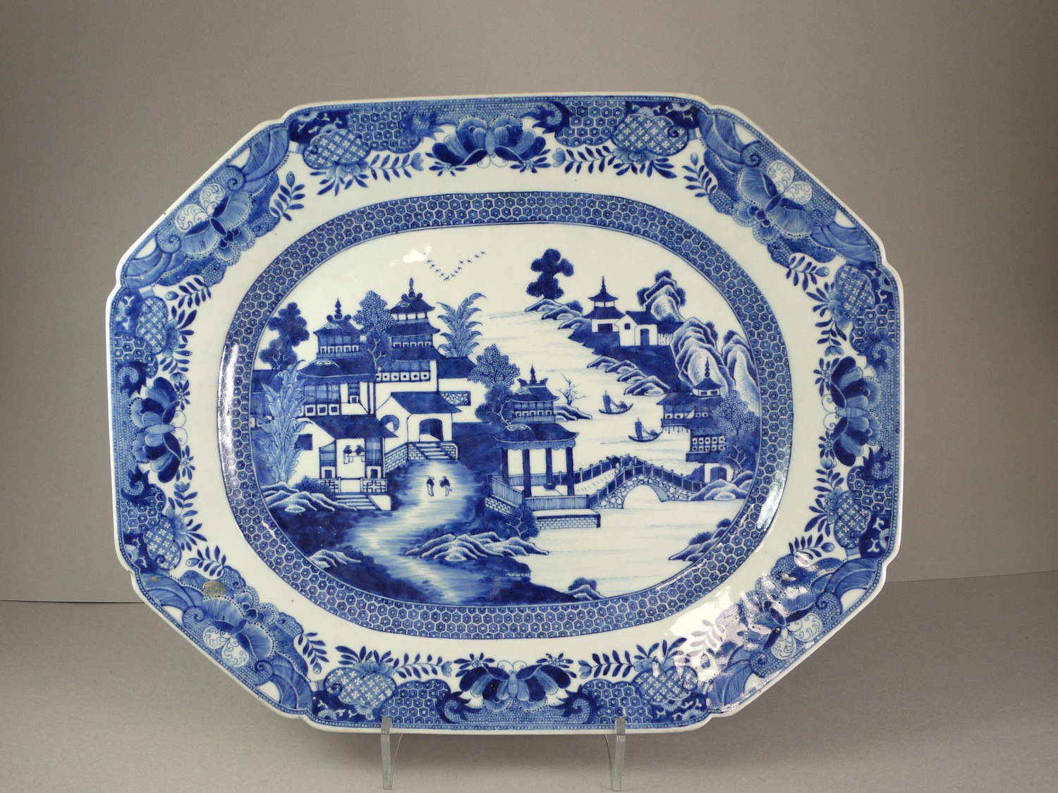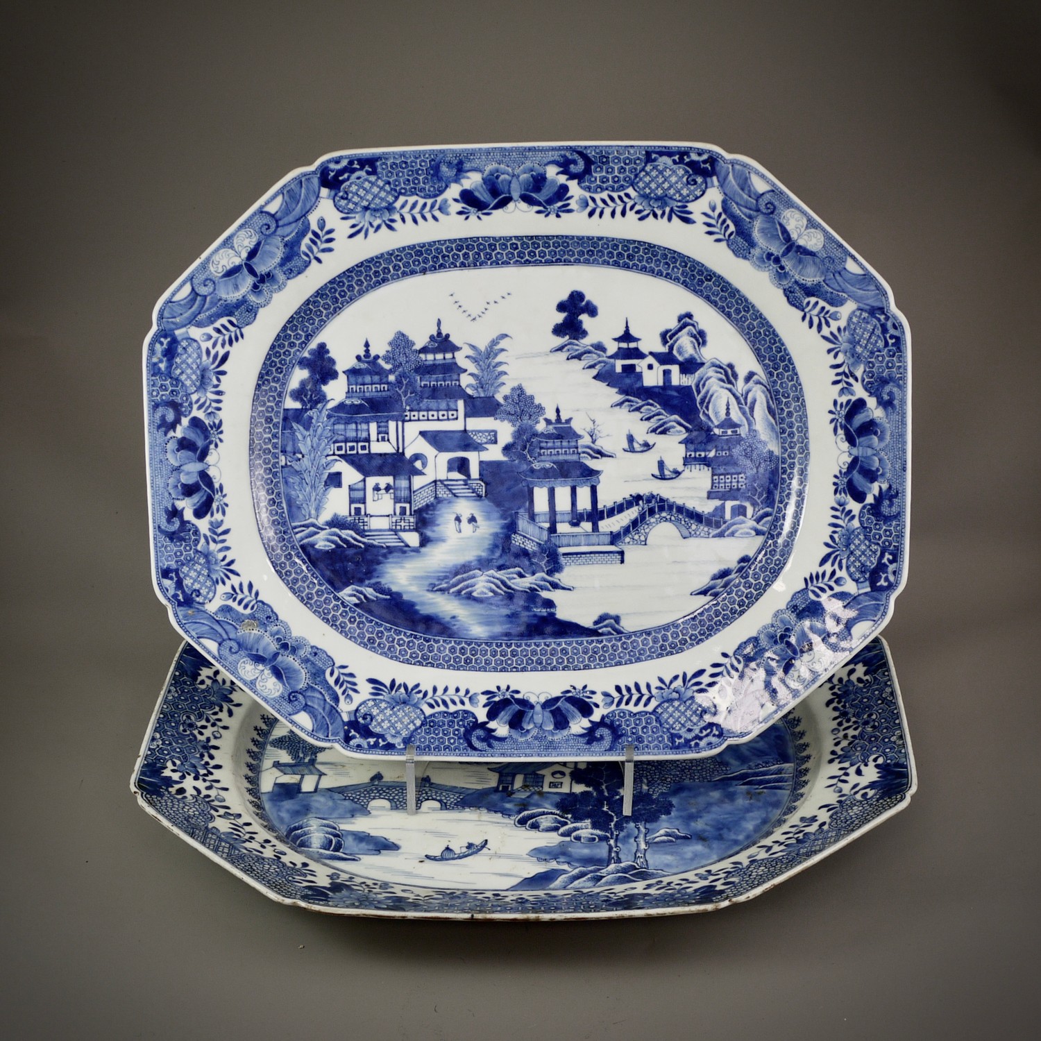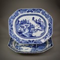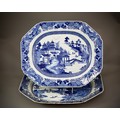 A GOOD PAIR OF BLUE AND WHITE QIANLONG ‘LANDSCAPE’ MEAT DISHES