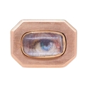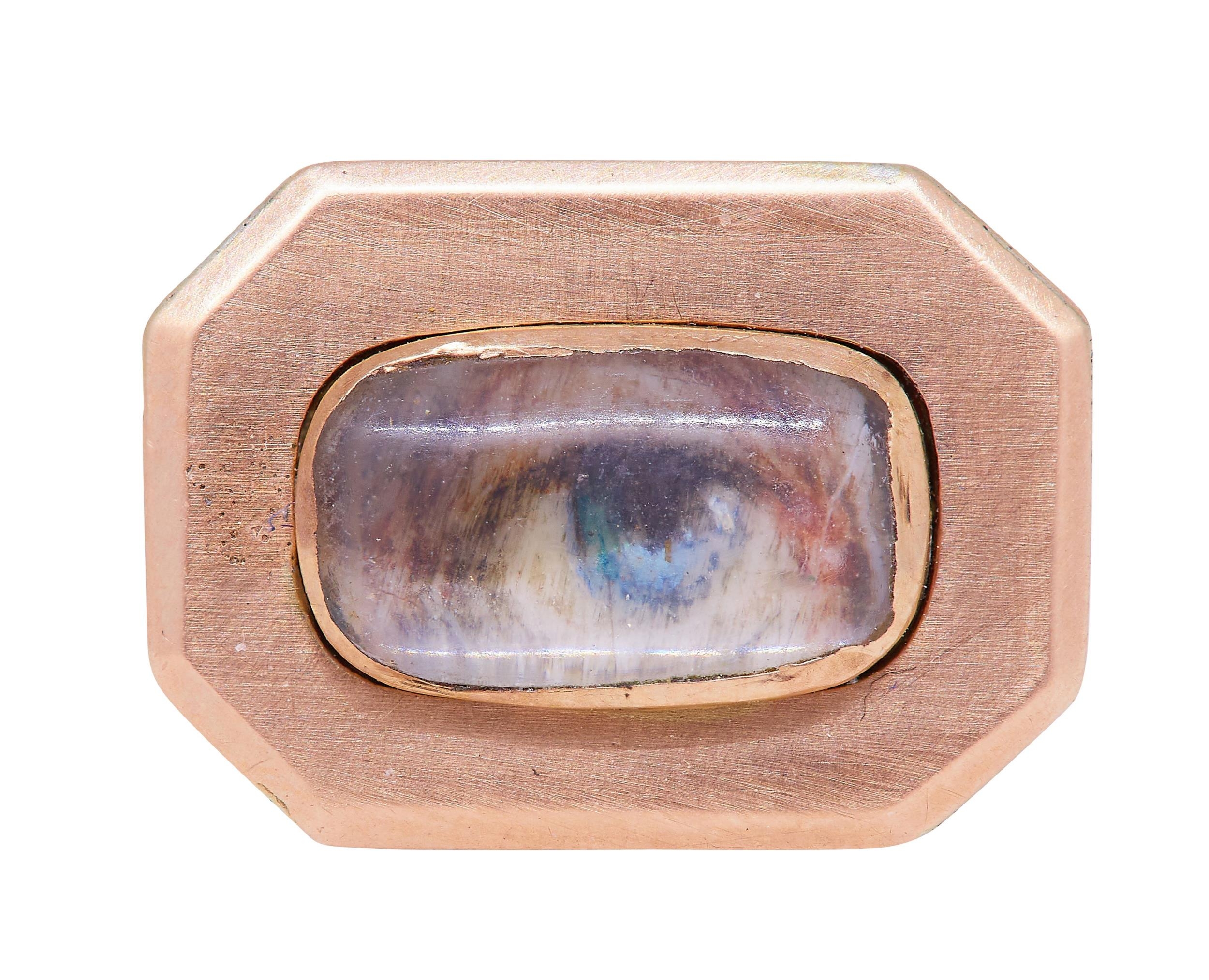 ANTQUE VICTORIAN MINIATURE EYE BROOCH, the brooch of elongated octagonal design, set to the center with a painted miniature eye. L. 1.5 cm. 1.4 grams.