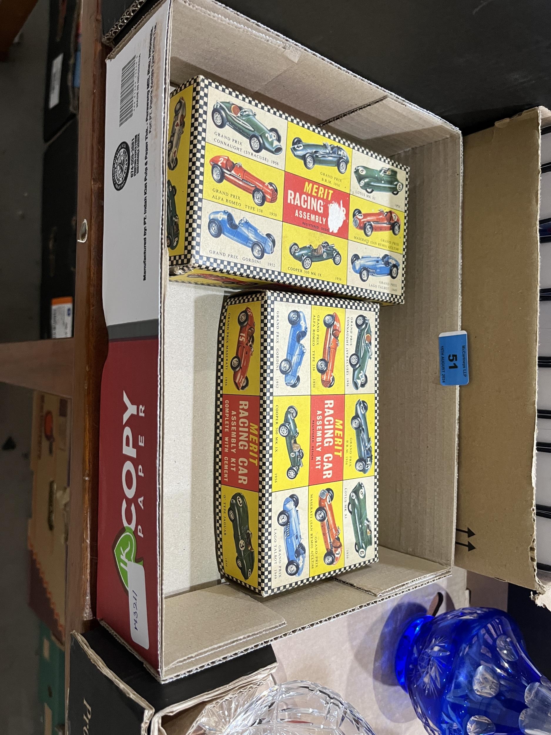 Two boxed Merit racing car assembly kits, 1956 Aston Martin DB3-S and 1956 Maserati 4/CLT/48.