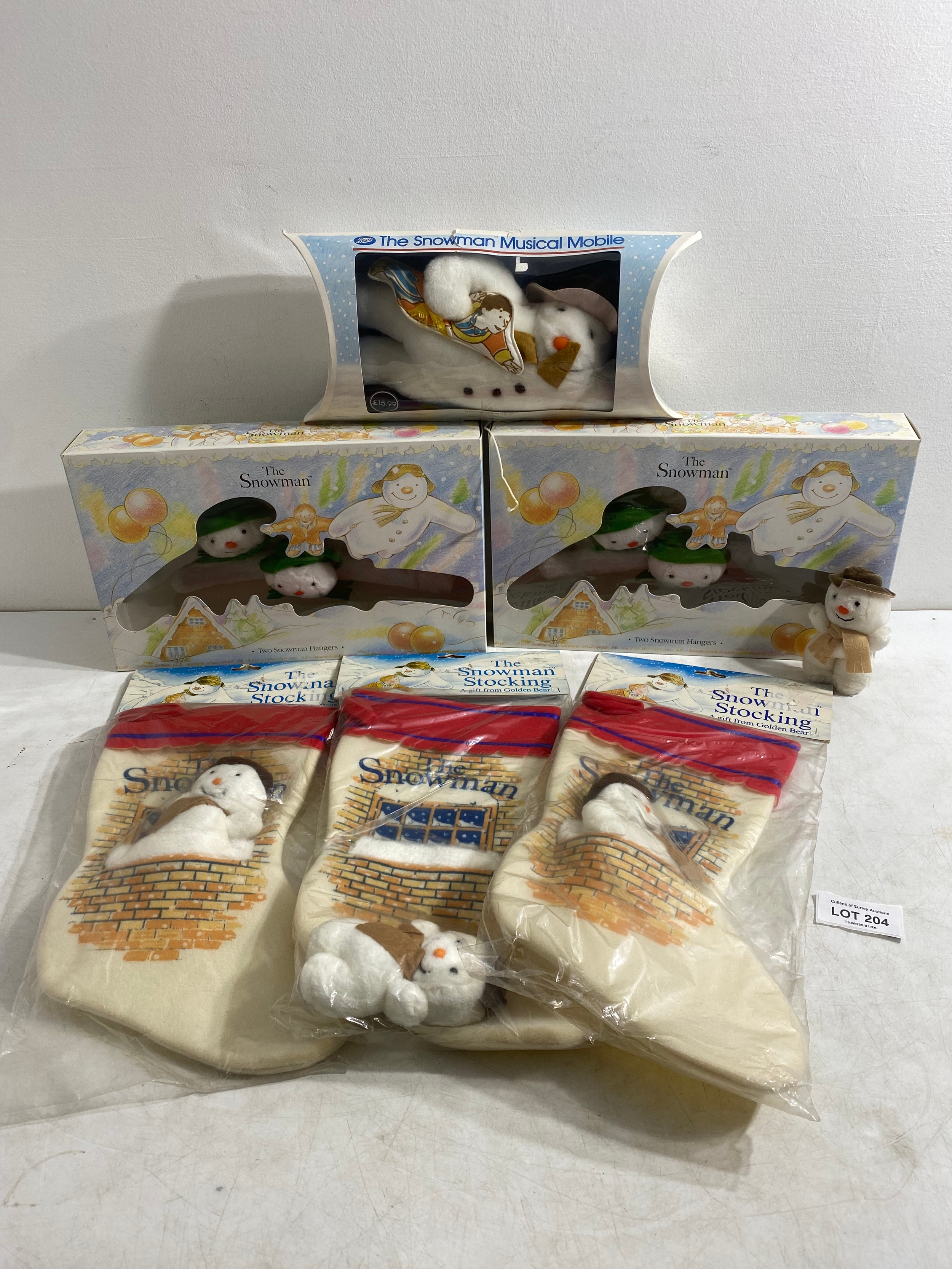 Vintage 1980/90's The Snowman bundle including Three Stockings, Musical Mobile plushie and Two sets of Two Grosvenor Hangers