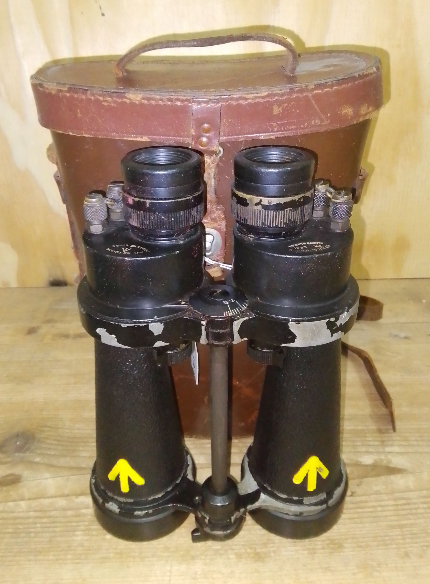 A pair of WWII naval binoculars by Barr & Stroud, leather case.
