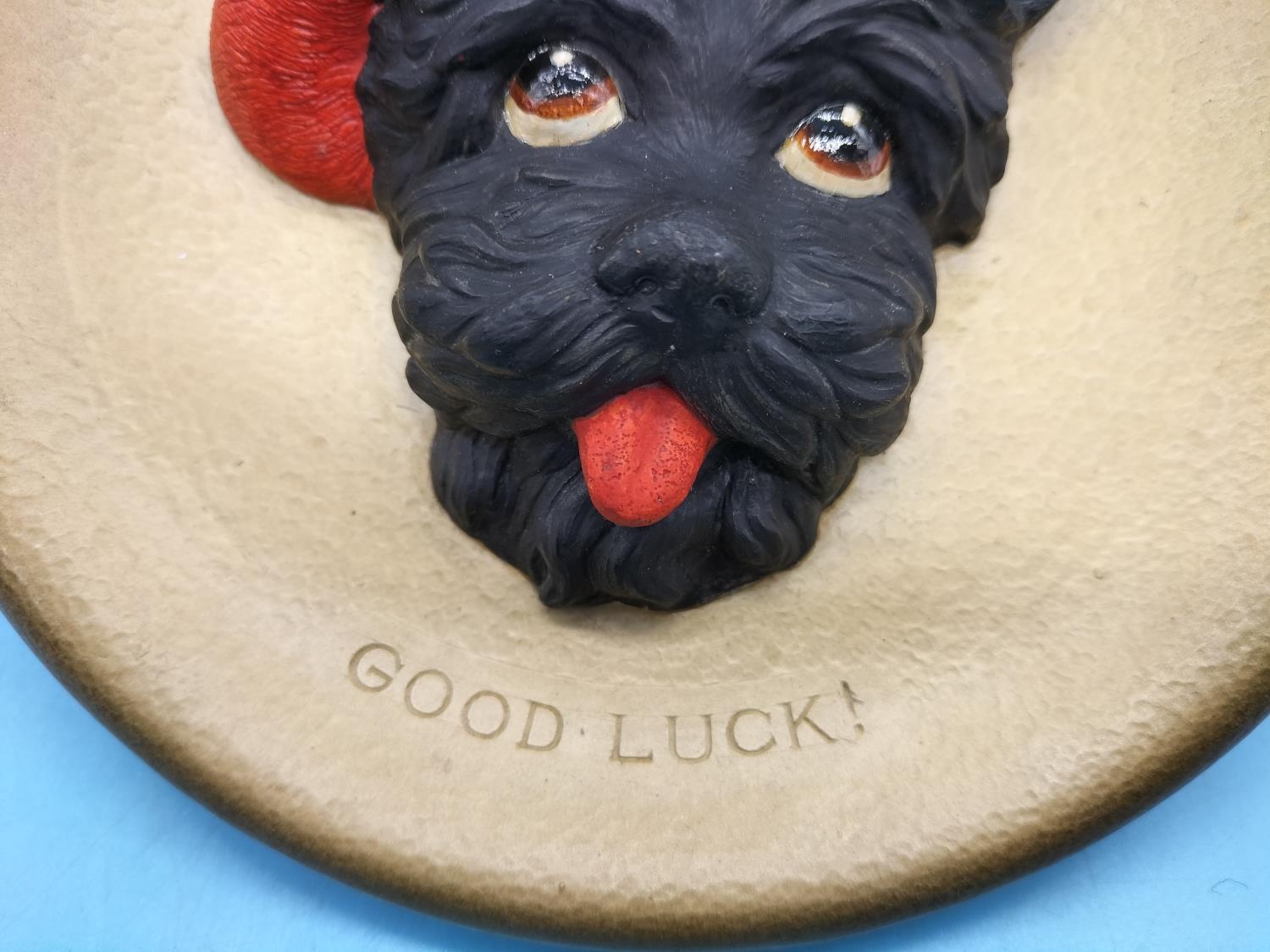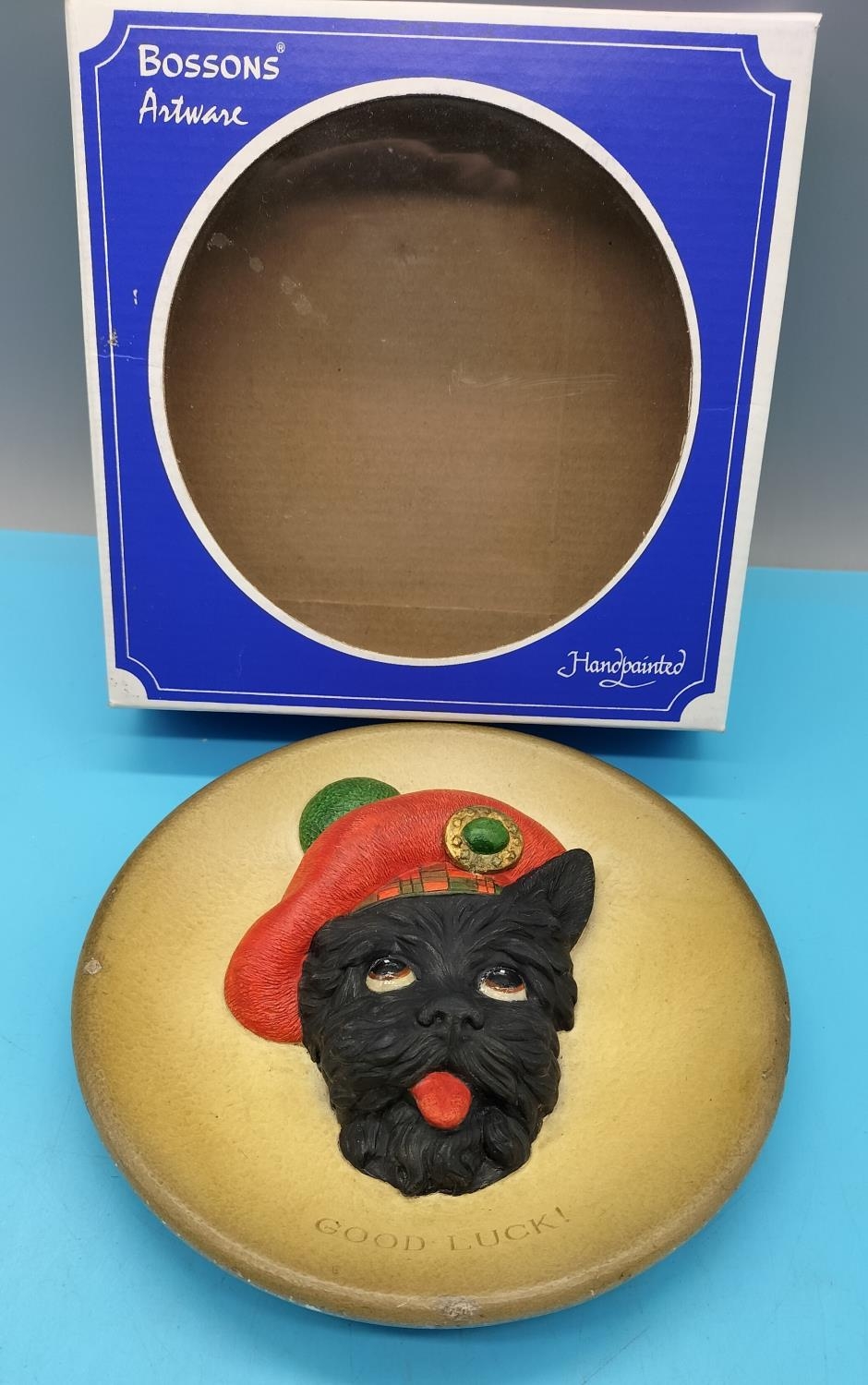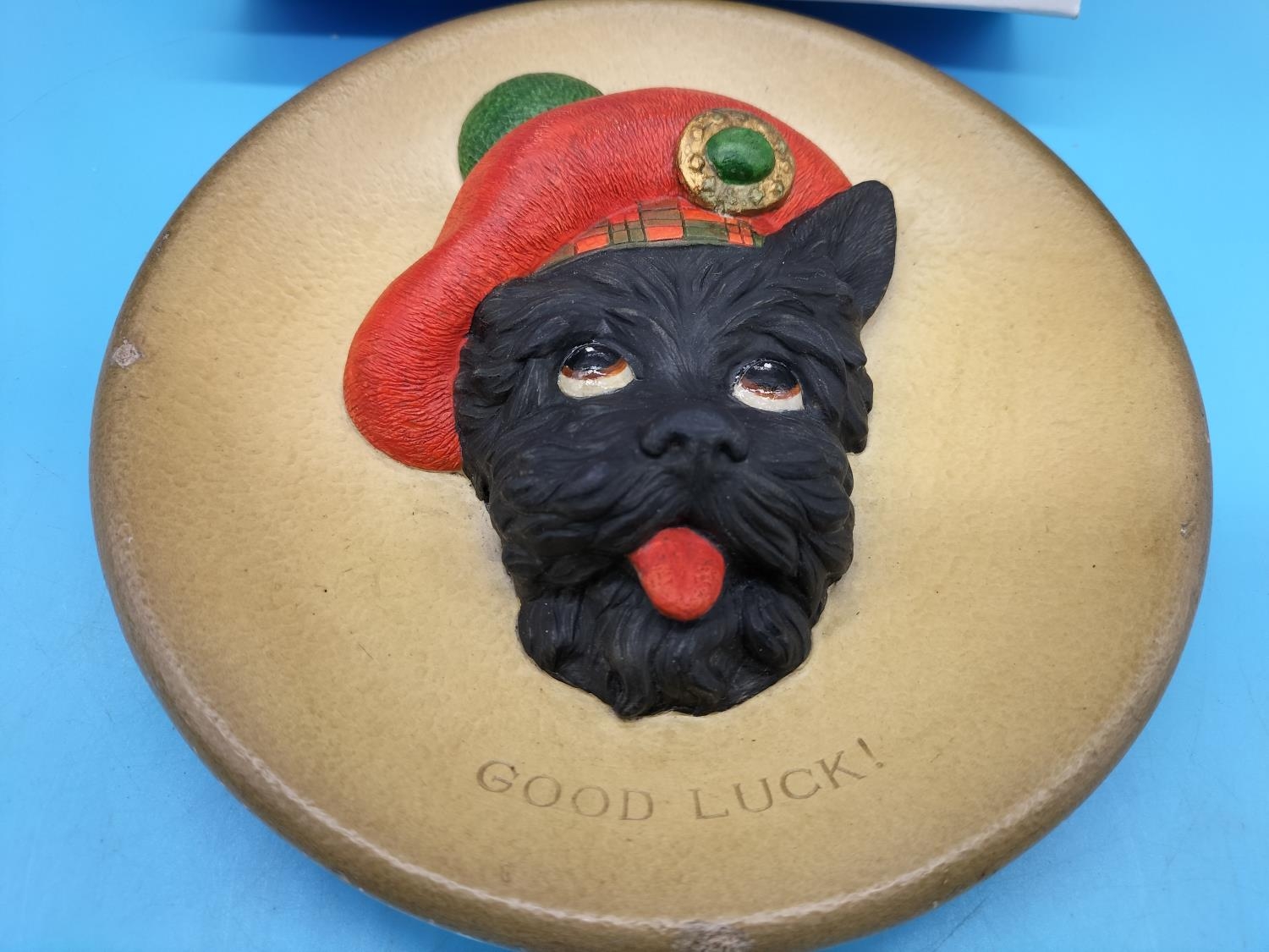 Boxed Bossons Scottie Dog 'Good Luck' Small Plaque. 15cm Diameter.