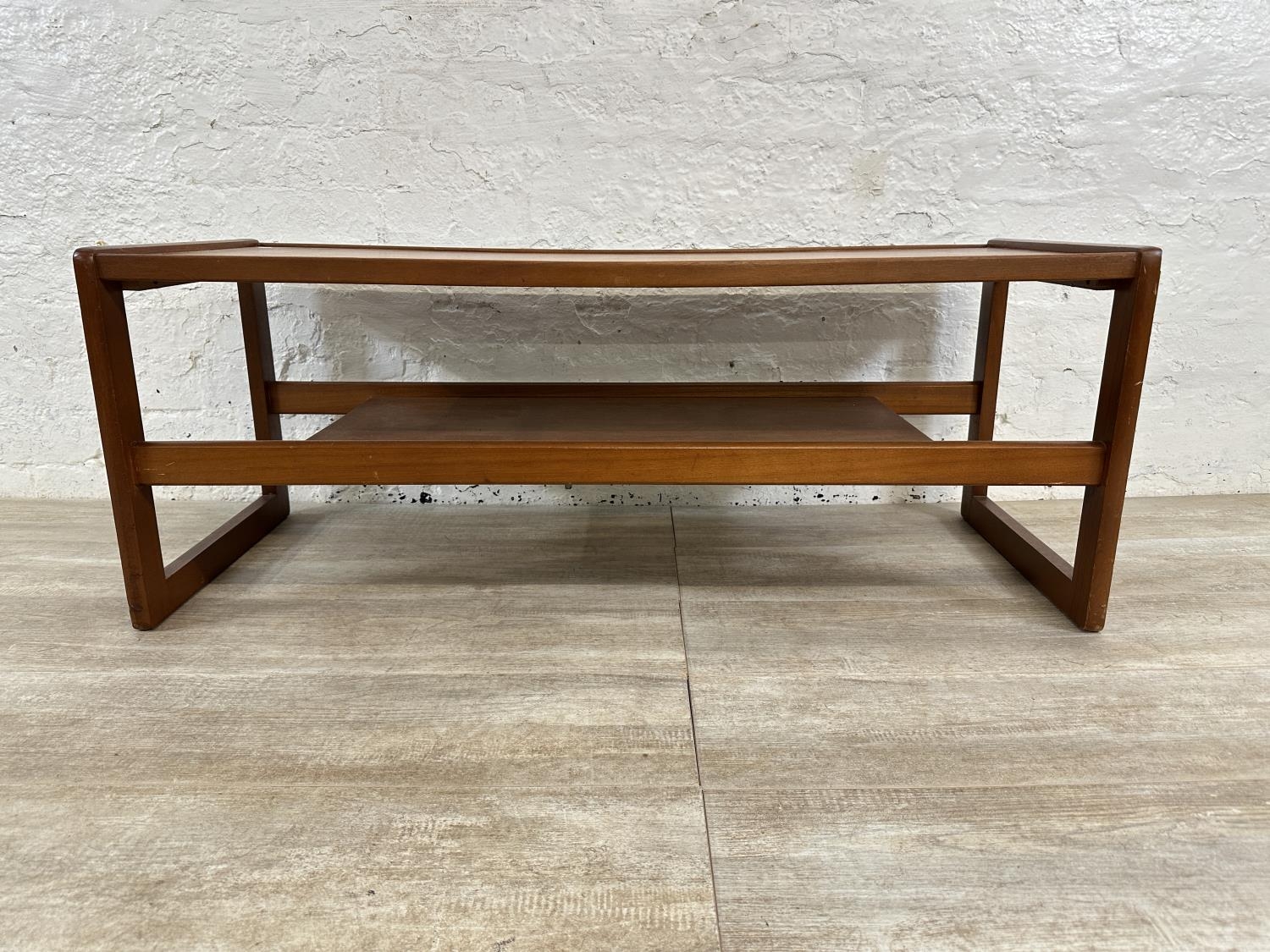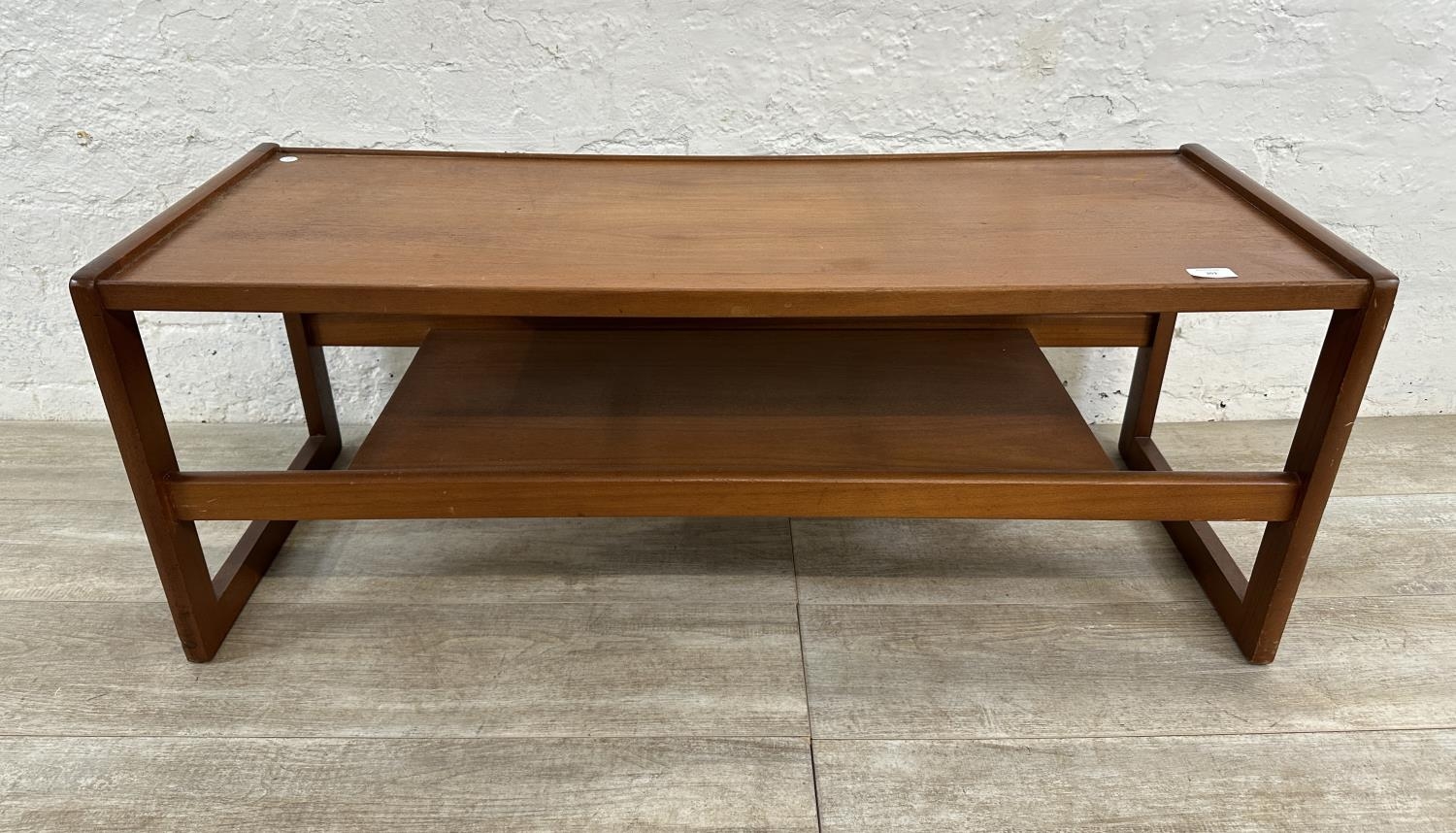 A mid 20th century teak coffee table - approx. 43cm high x 43cm wide x 111cm long