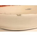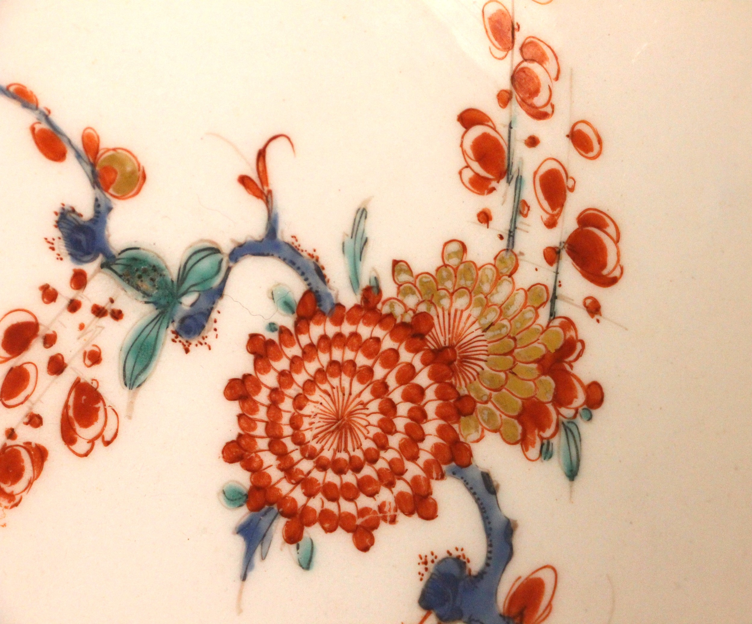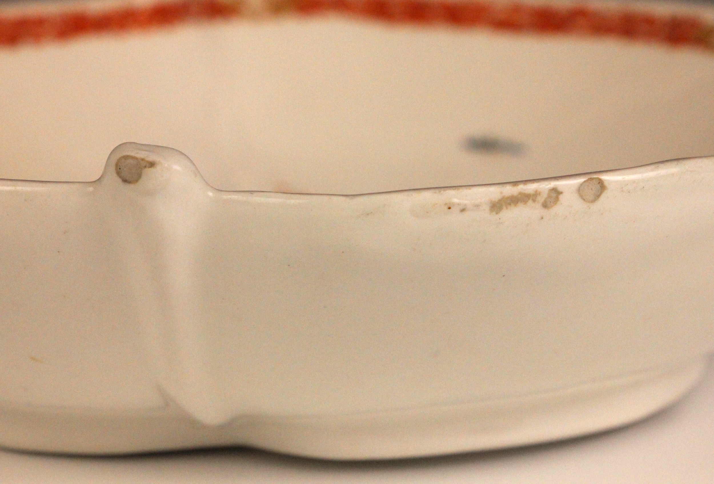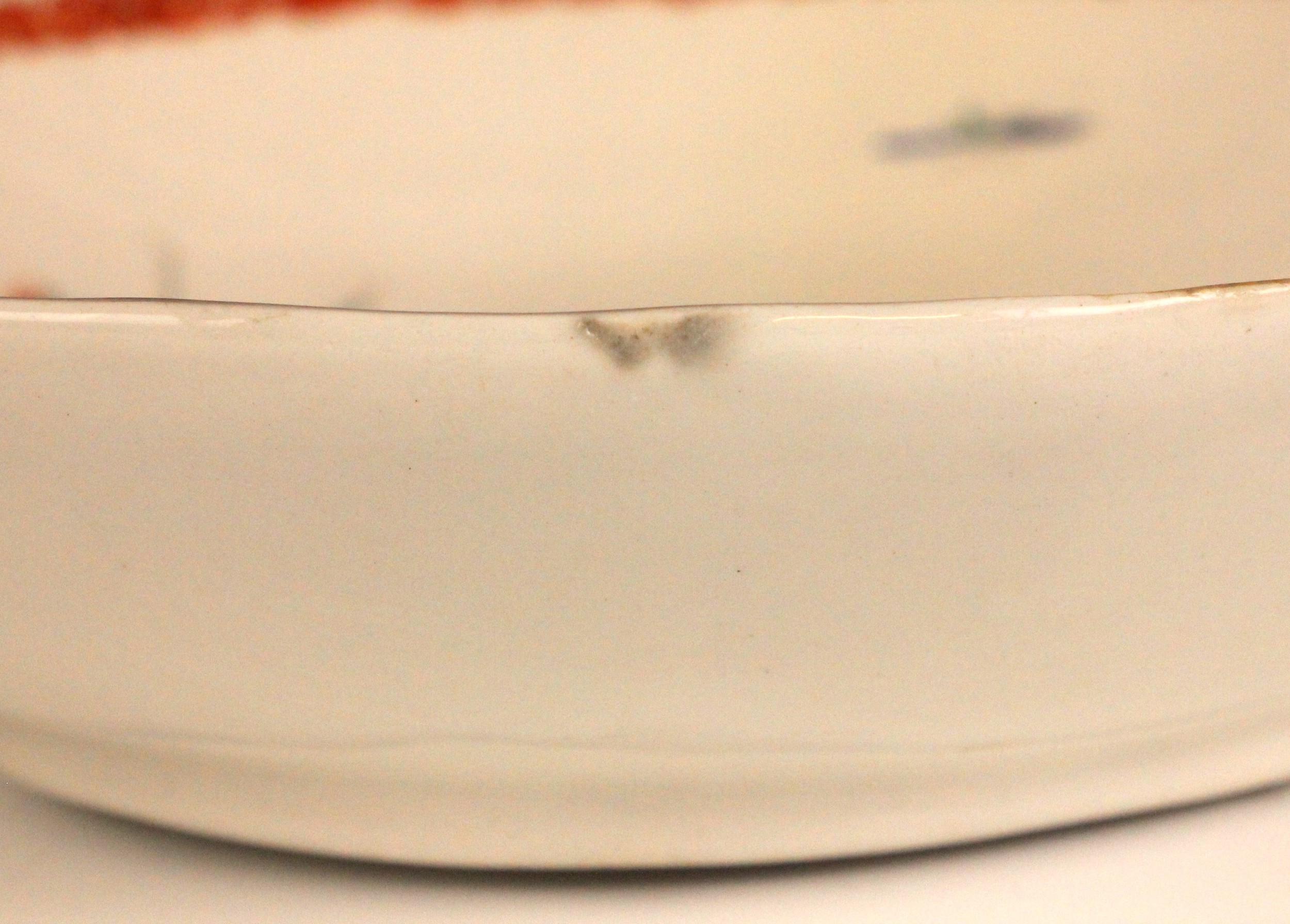 The dish shows worn flaked losses due to restoration, most noticeably to the base, the odd stain and the odd glazing fault to the rim. The foot rim shows wear commensurate with age and use. The interior shows wear including fine surface scratching, including to the gilt highlights and the red quail.