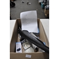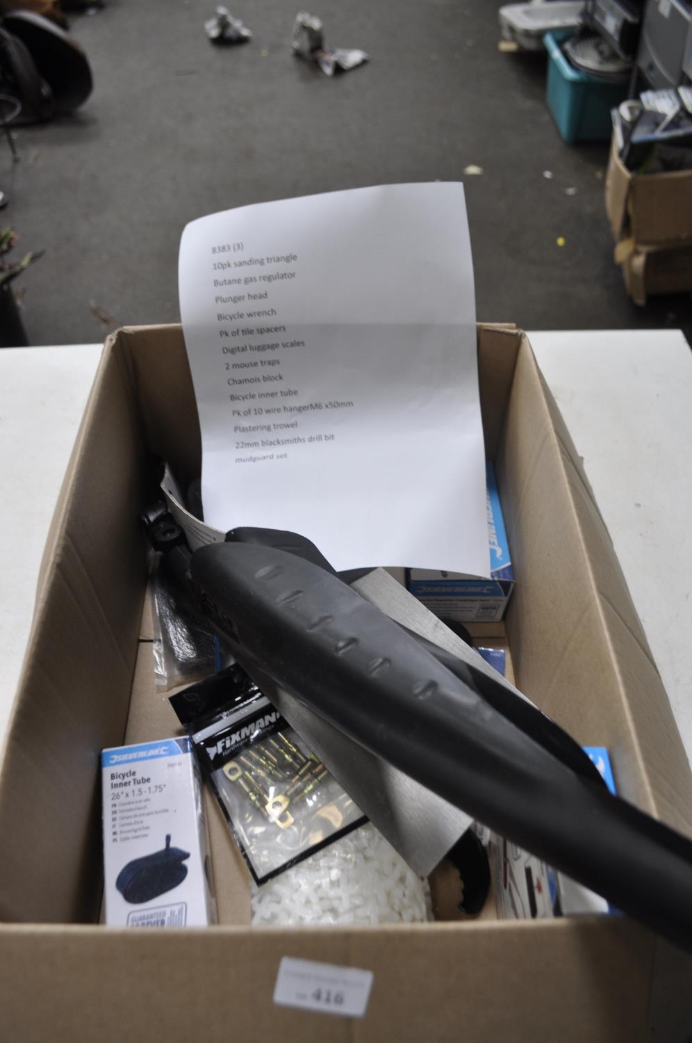 BOX CONTAINING VARIOUS NEW SILVERLINE BRANDED ITEMS INC PLASTERER'S TROWEL, DRILL BITS, CHAMOIS BLOCK, MUDGUARD SET, DIGITAL LUGGAGE SCALES, BUTANE GAS REGULATOR AND OTHERS