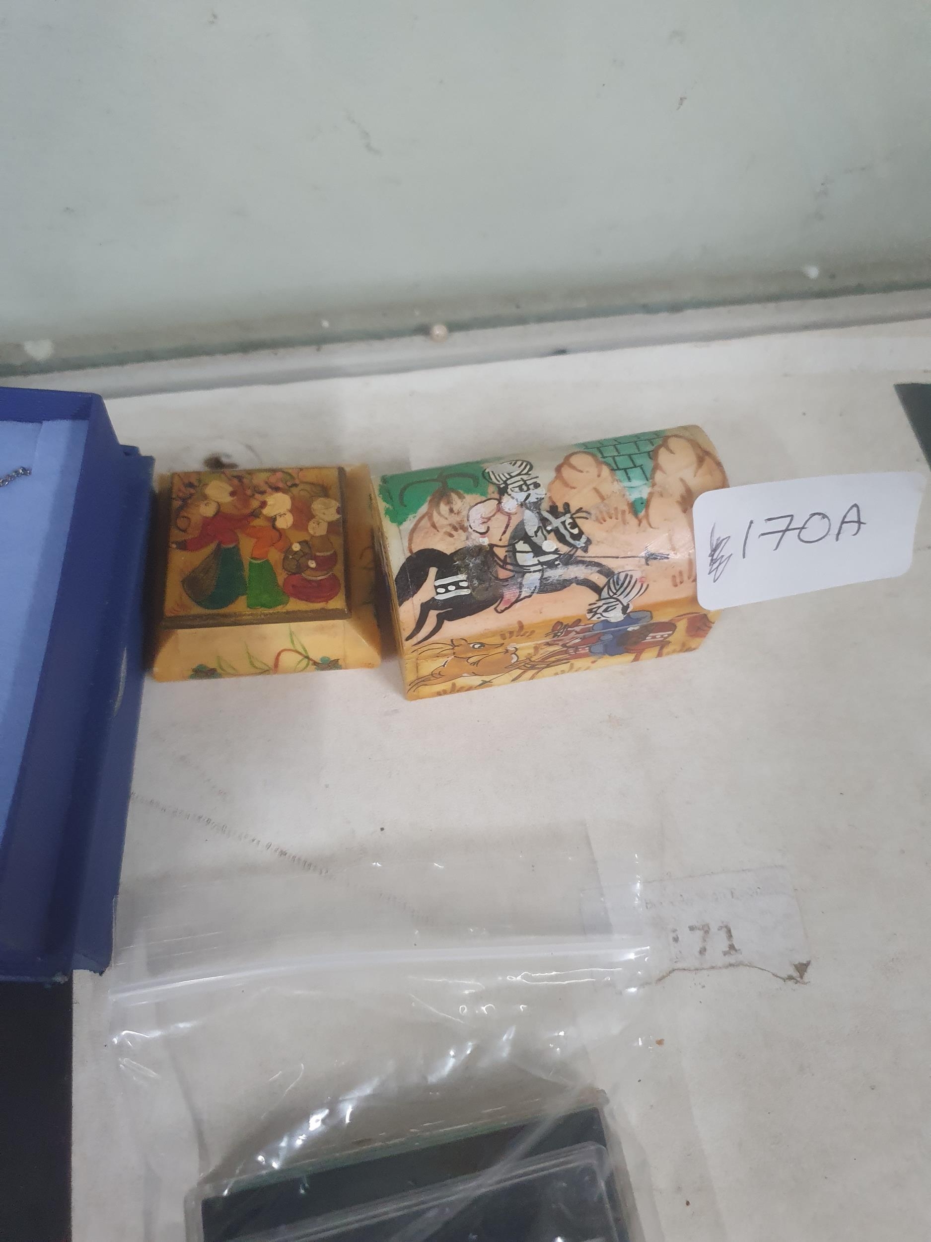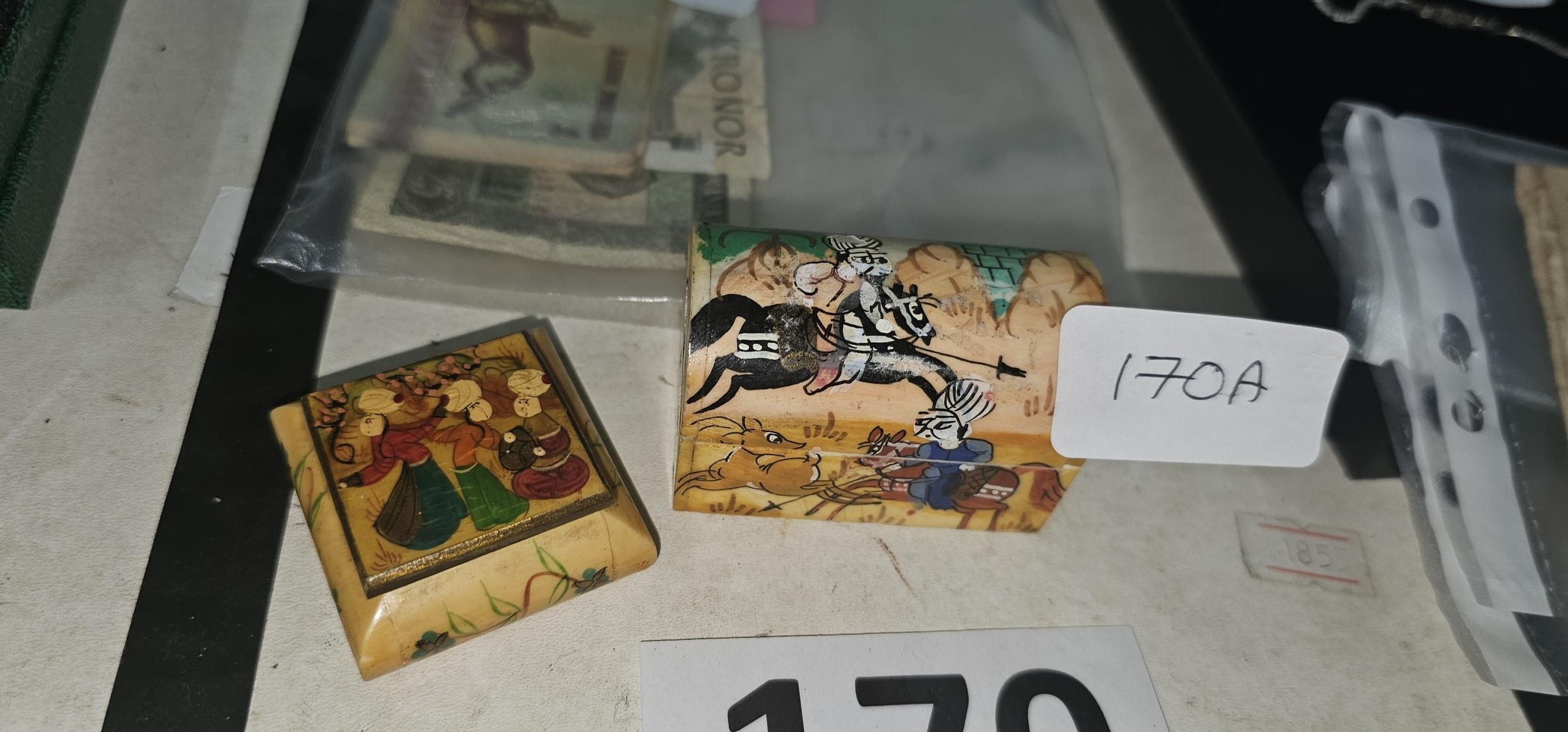 2 PERSIAN HANDPAINTED BONE TRINKET BOXES