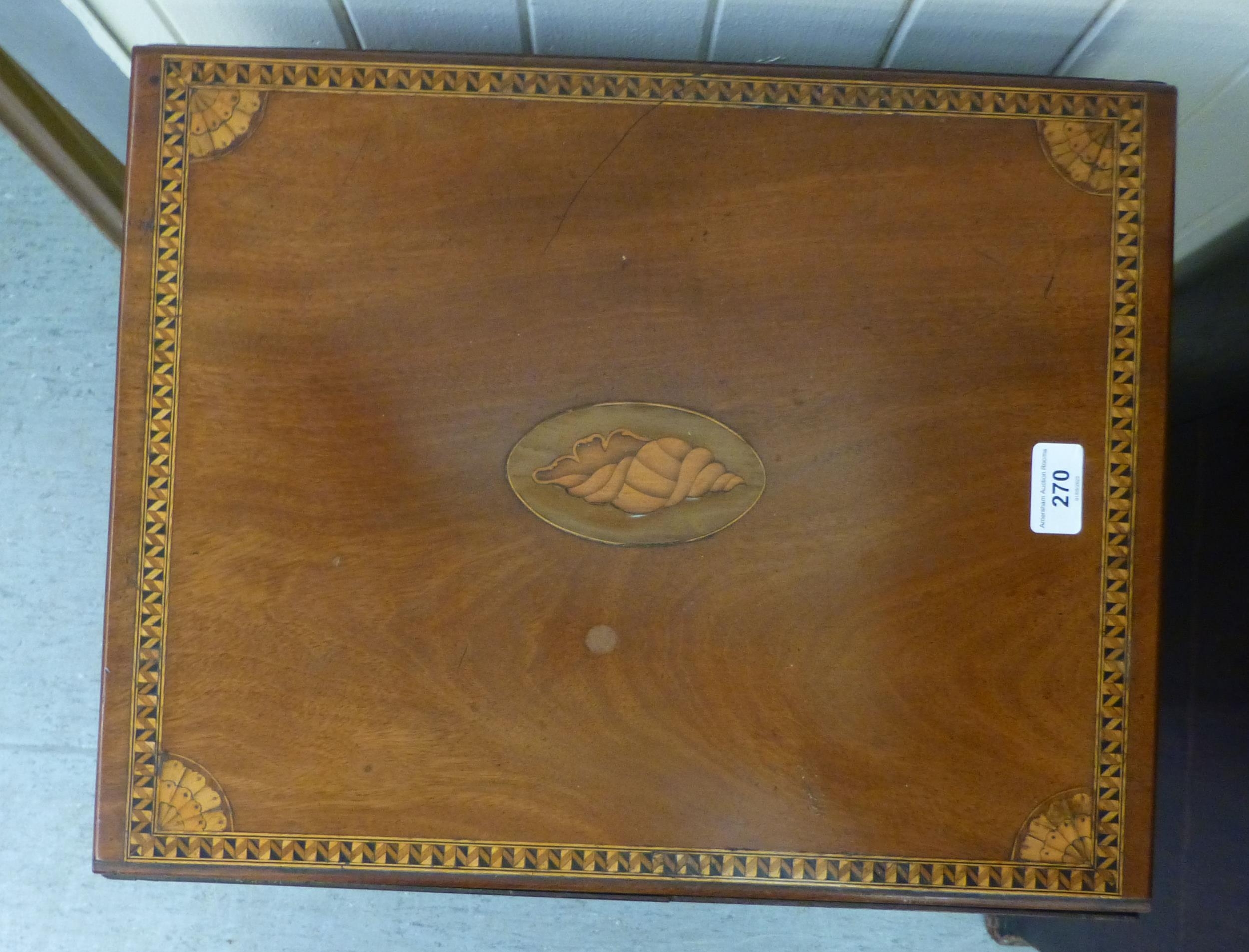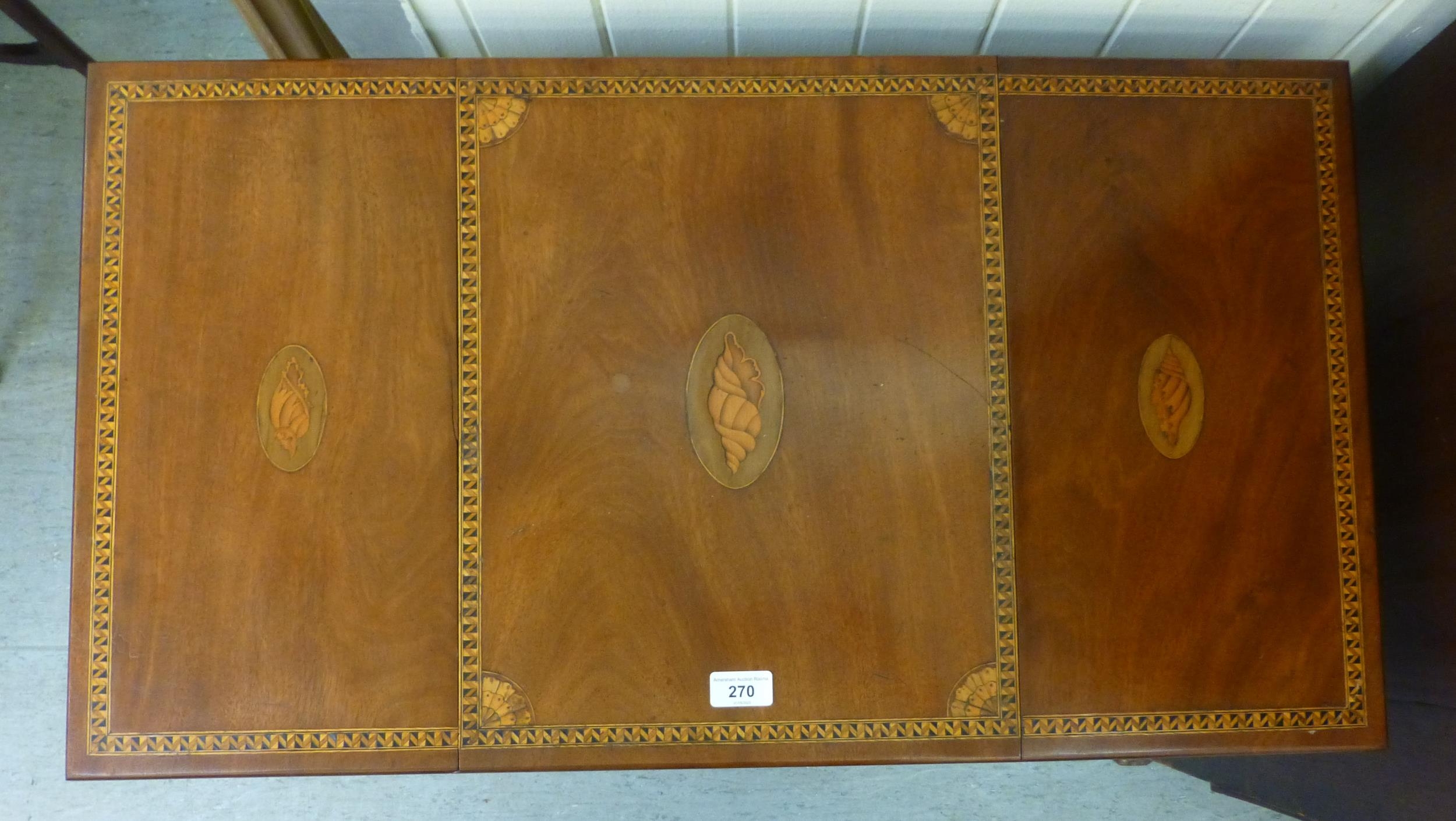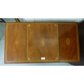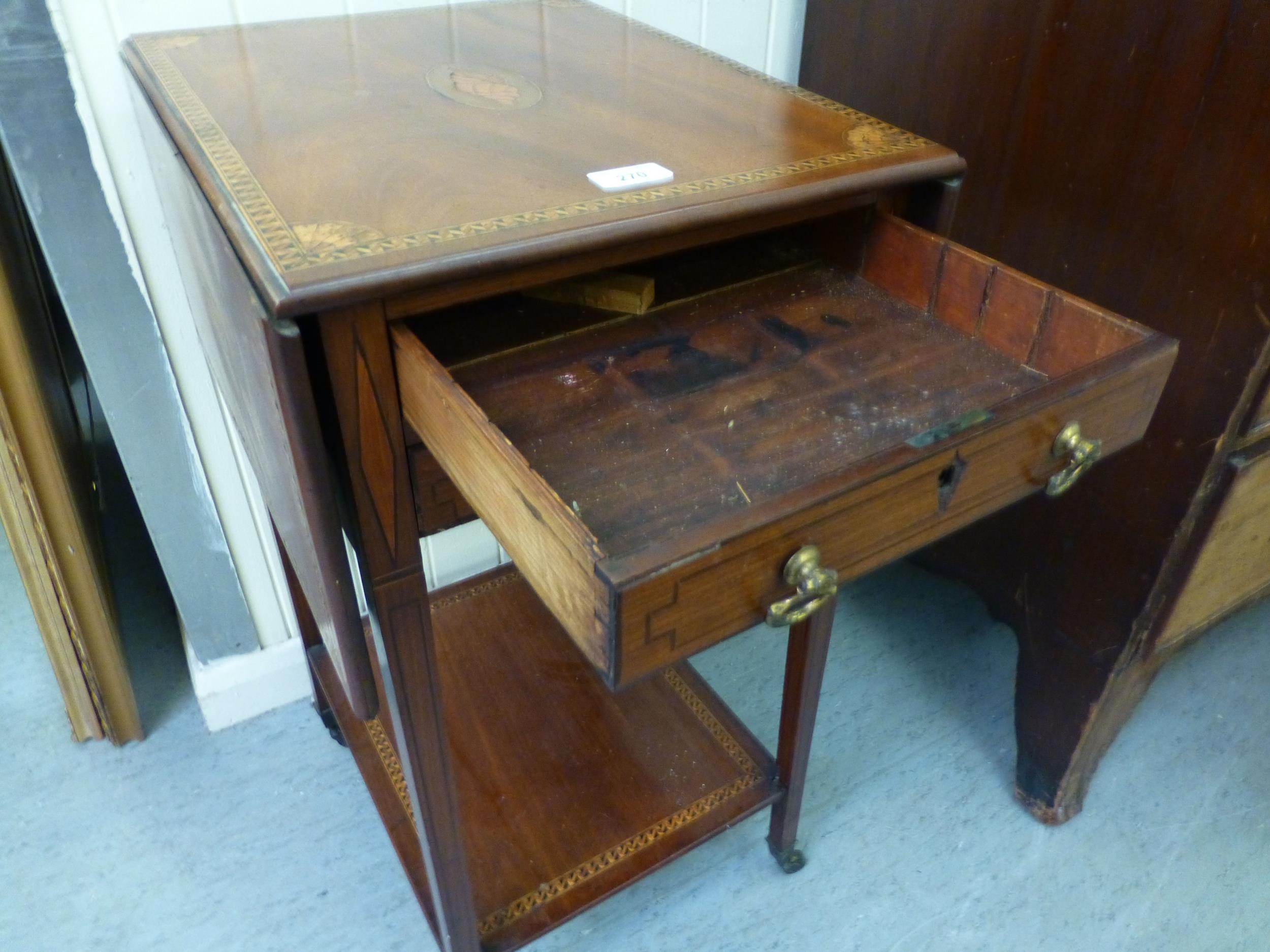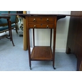 An Edwardian satinwood inlaid mahogany work table with fall flaps and two drawers, raised on square, tapered legs 29"h 14"w