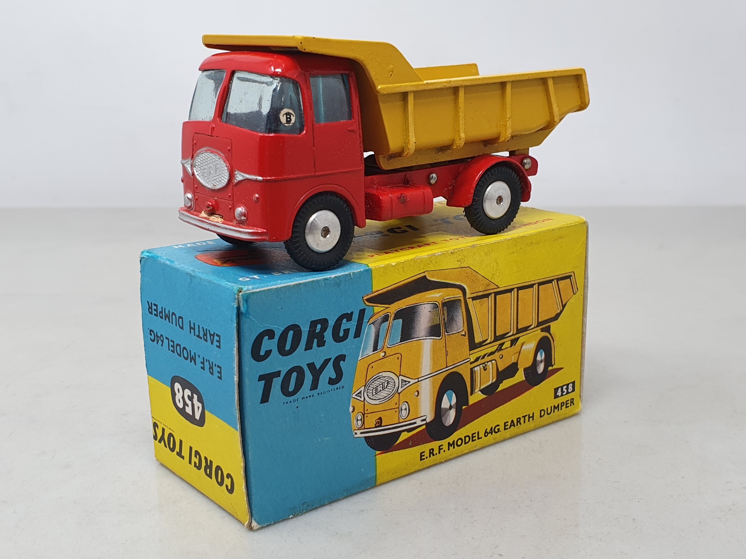A boxed Corgi Toys No.458 E.R.F. Model 64G Dumper, Ex plus, box Ex plus