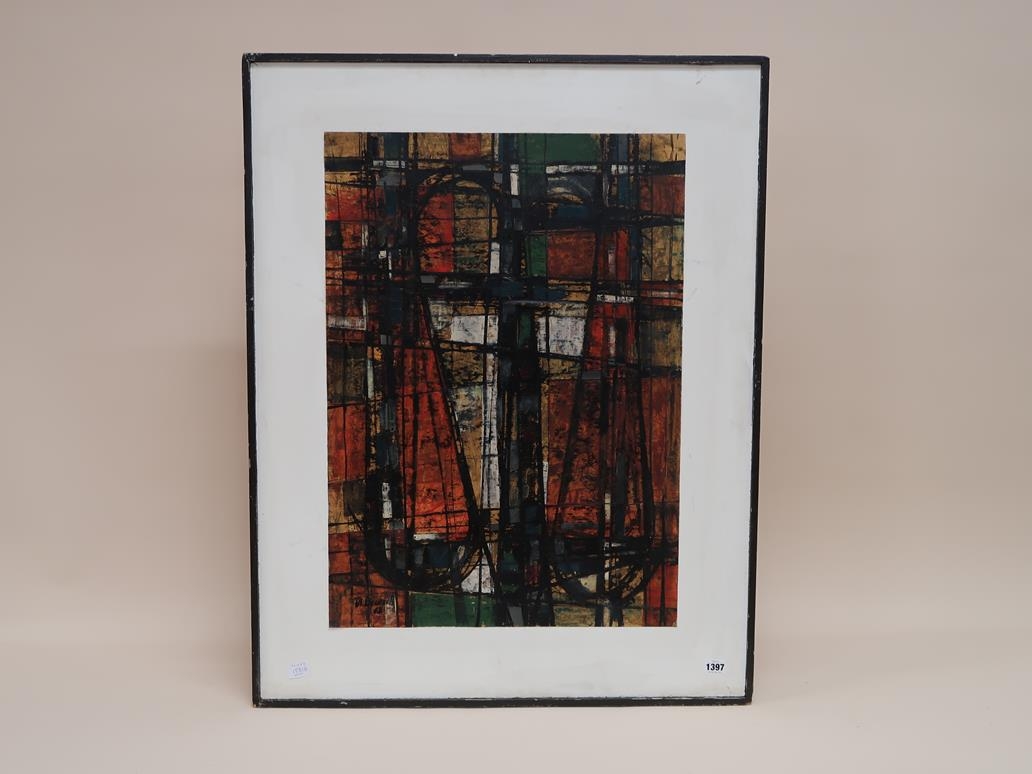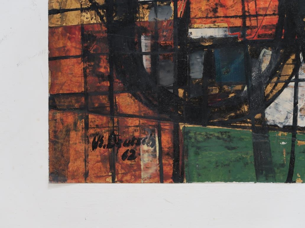 HANS EMIL DEUTSCH 42 - ABSTRACT, MIXED MEDIA, FRAMED, 70CM X 50CM