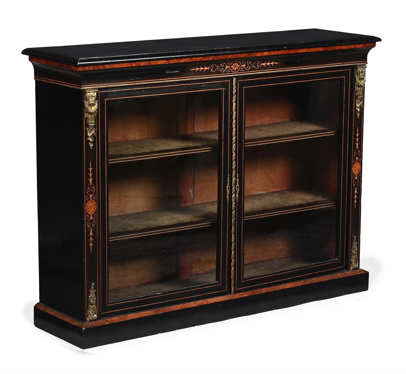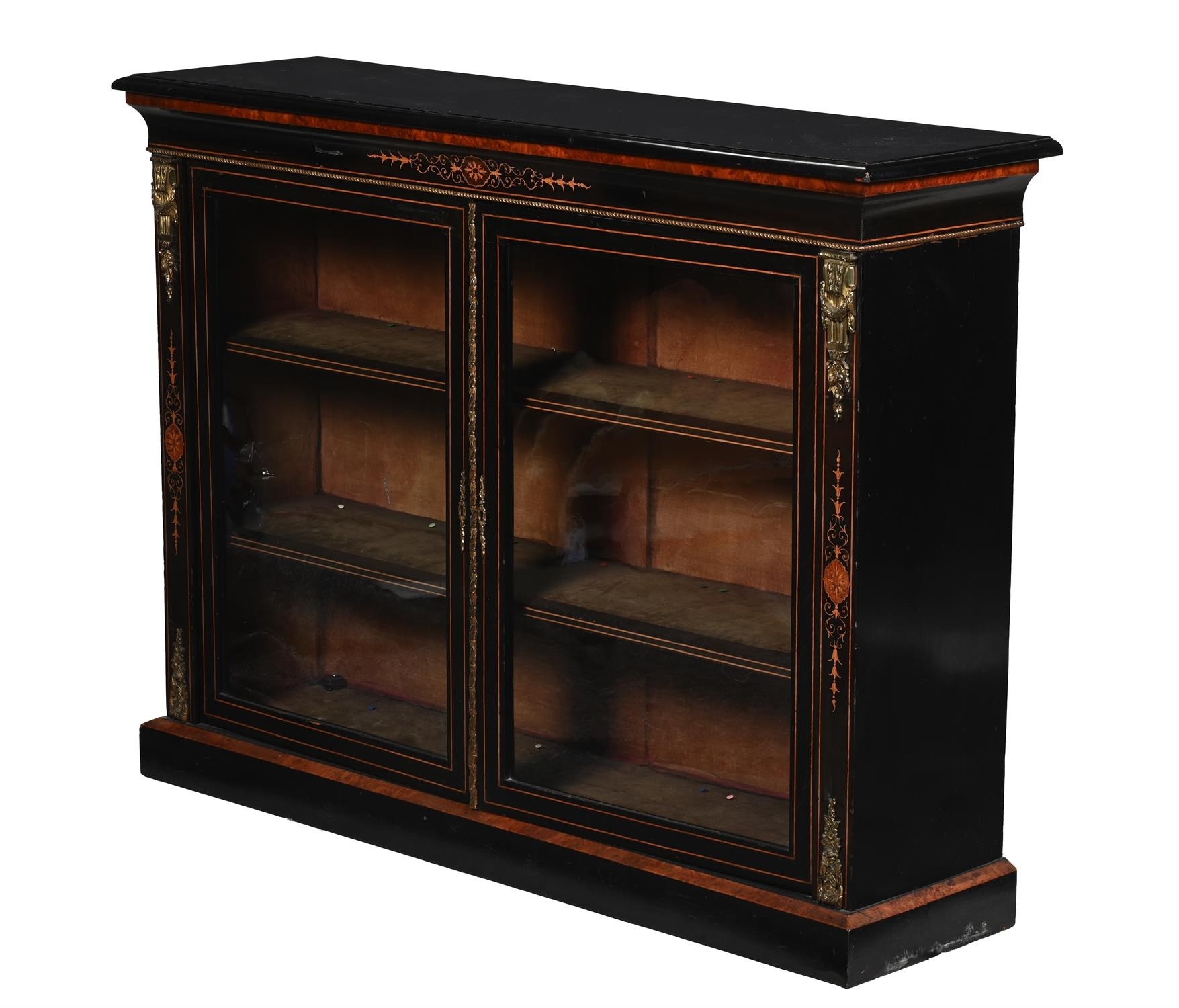 A VICTORIAN EBONISED AND INLAID DISPLAY CABINET OR CREDENZA CIRCA 1890102cm high, 138cm wide, 38cm deep