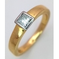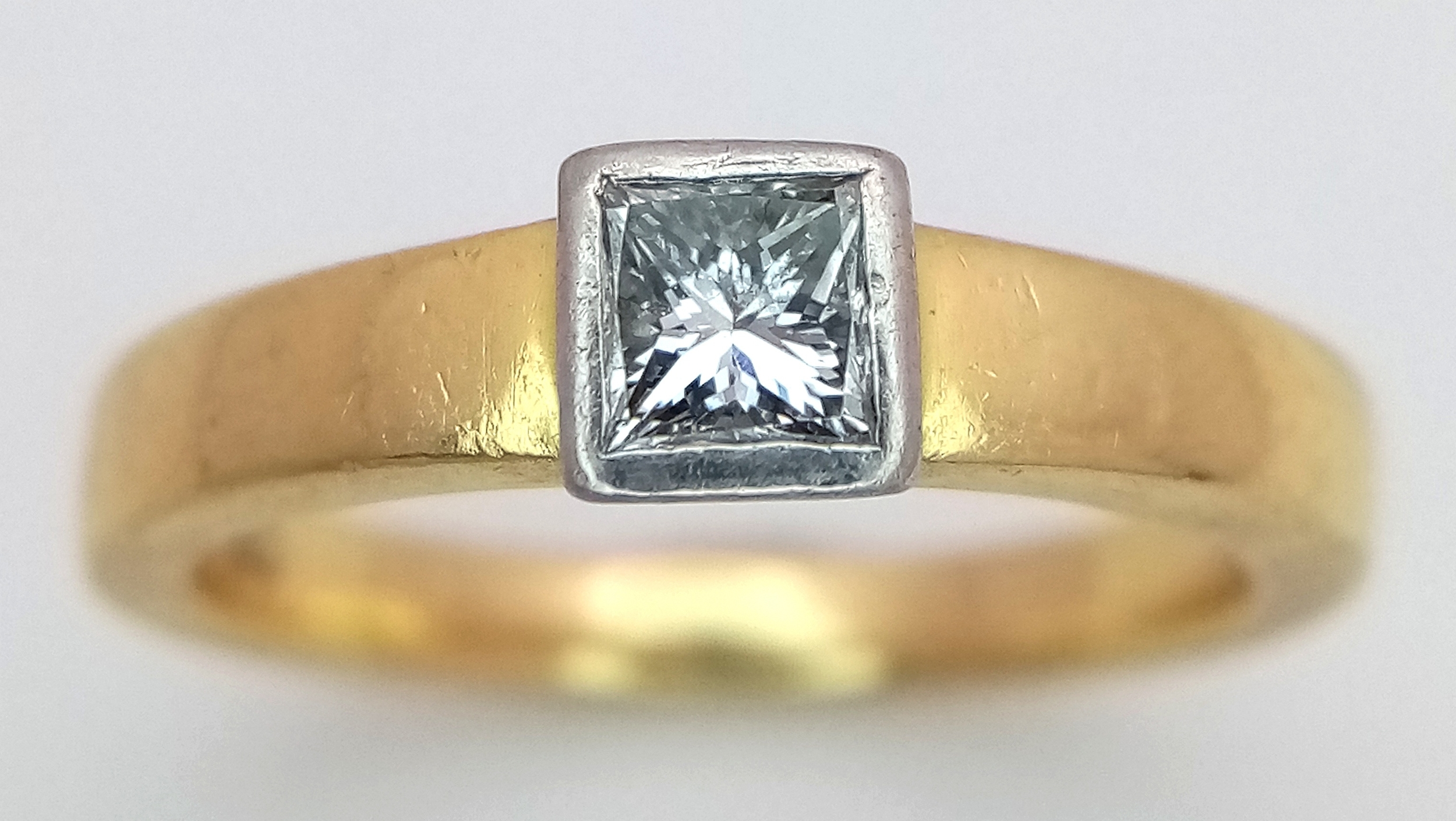 AN 18K YELLOW GOLD PRINCESS CUT DIAMOND SOLITAIRE RING. DIAMOND WEIGHT 0.25CT. TOTAL WEIGHT 4.4G. SIZE J. WITH MILLENIUM HALLMARK. SPSA 2020