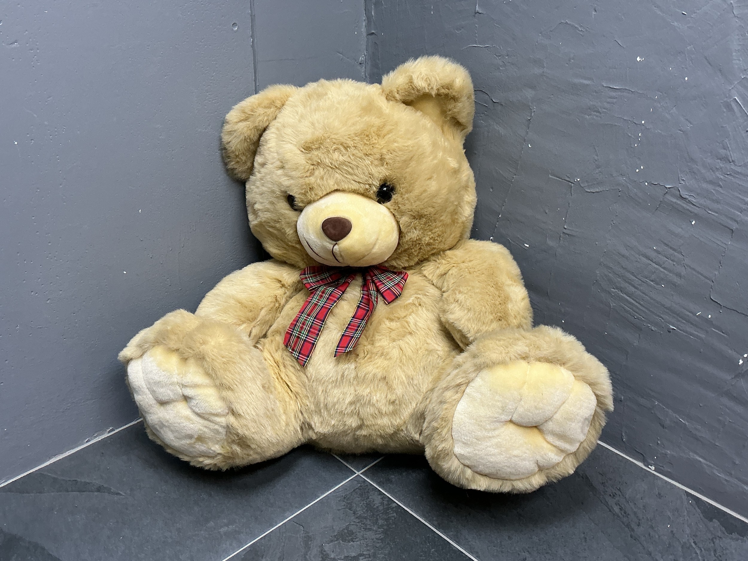 Large Soft Filled Teddy Bear with Tartan Bow Tie (80cm High)