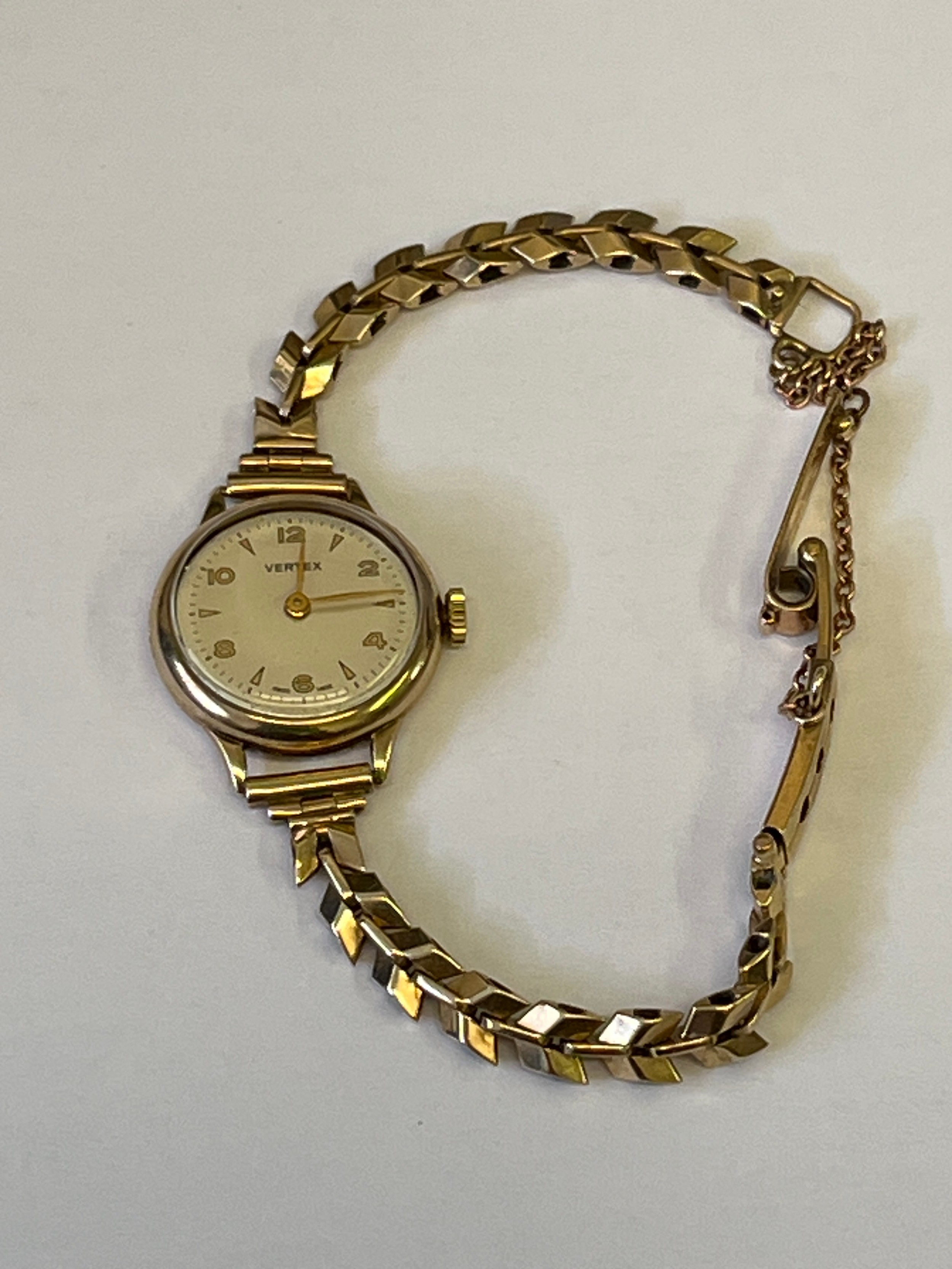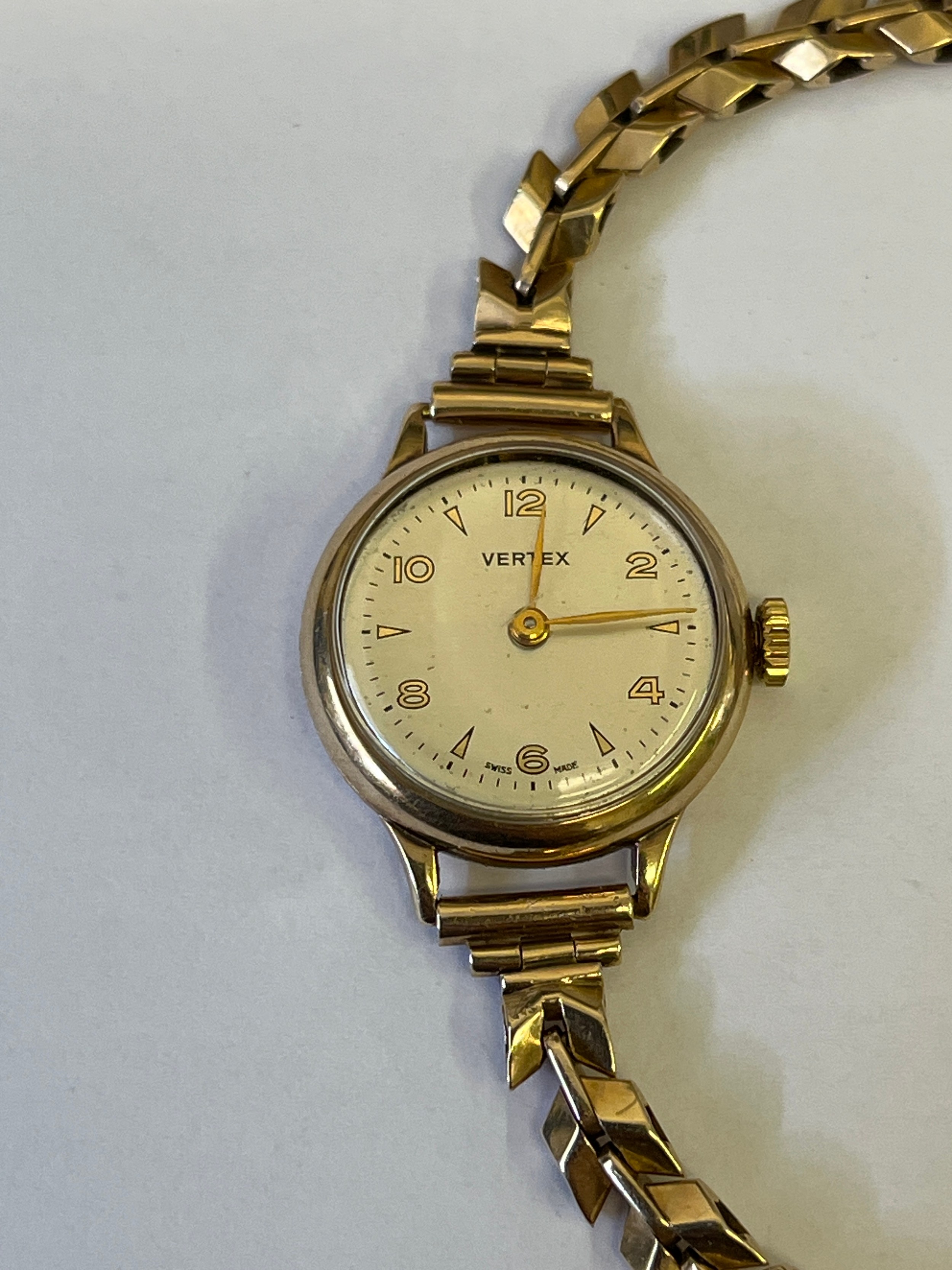A VINTAGE 9CT GOLD VERTEX WATCH AND BRACELET TOTAL WEIGHT 19.82GR Aaron Lufkin Dennison 1955 THE BRACELET BY BIRMINGHAM 1955 BY JOSEPH COOK FULL HALL MARKS