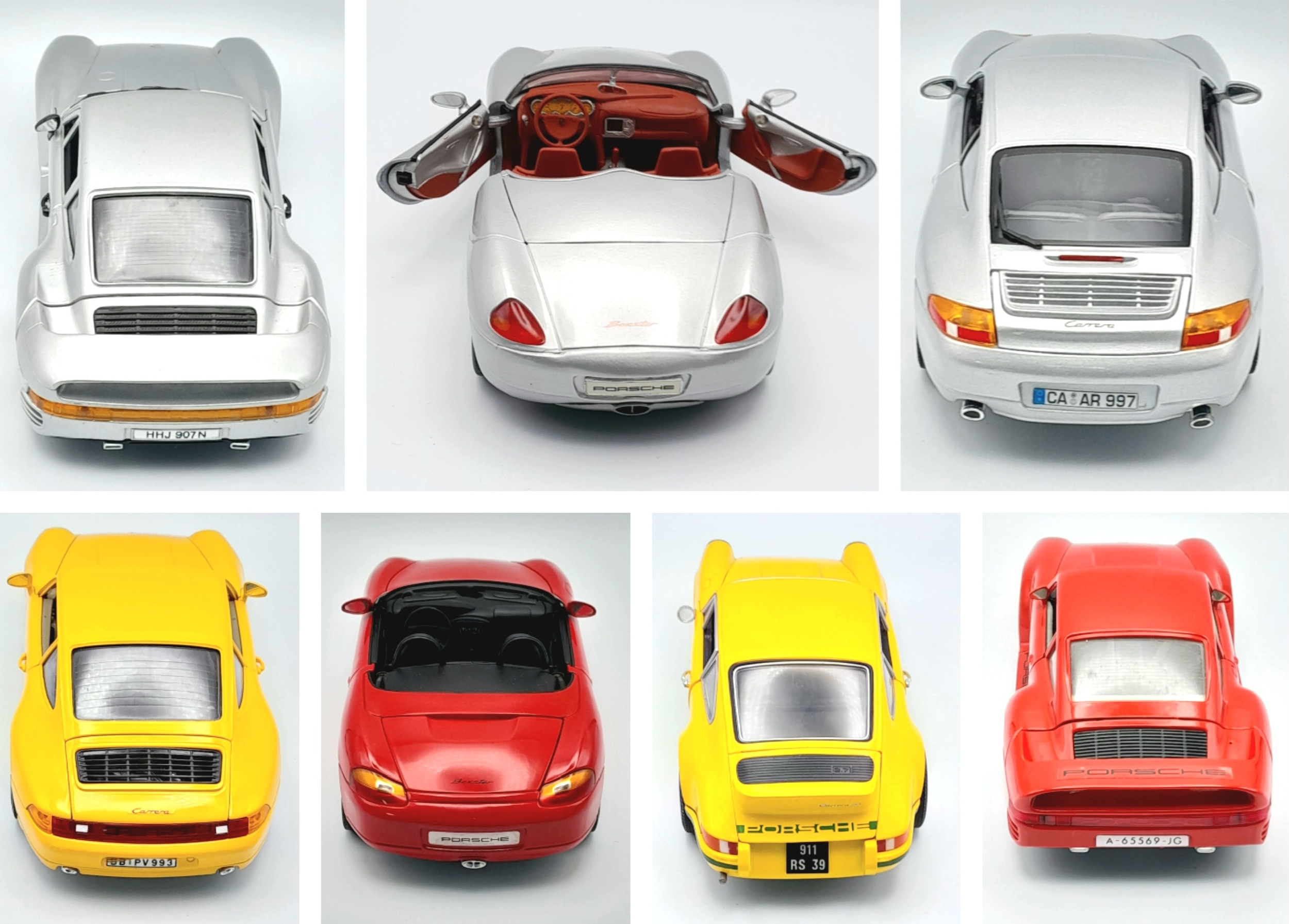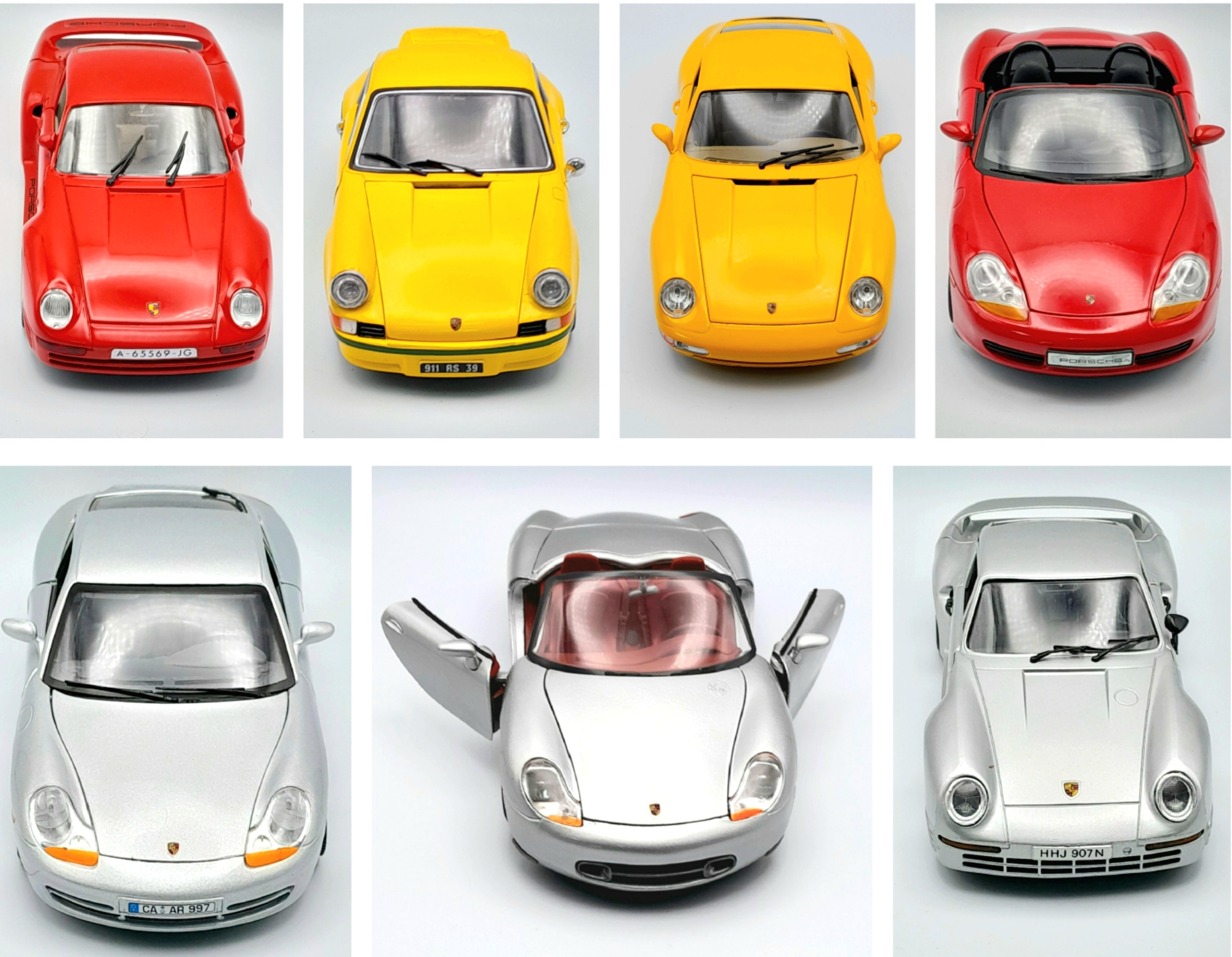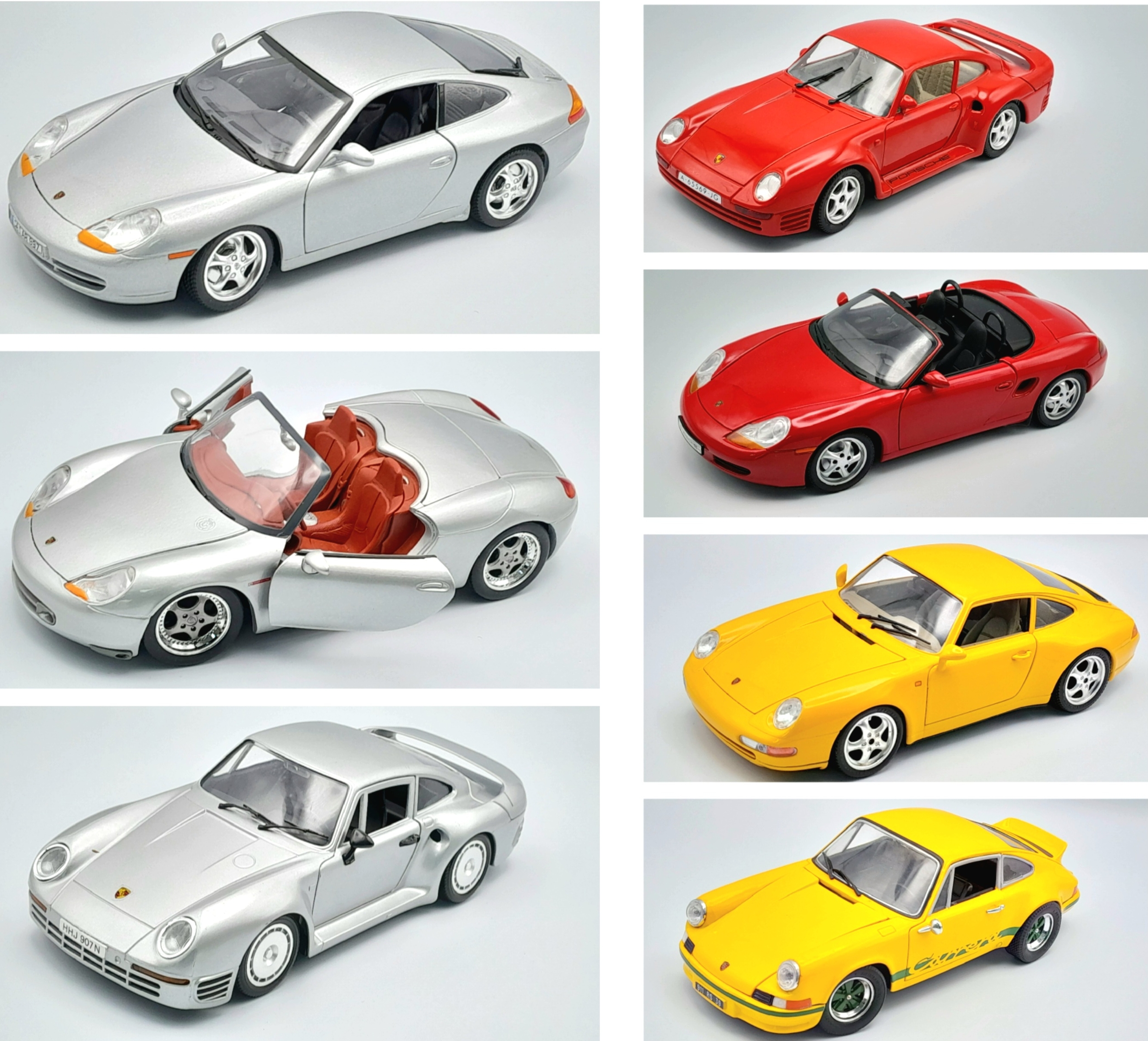 Seven loose 1/18th scale Porsche models. To include Maitso and Burago. Good condition. Please see photos.