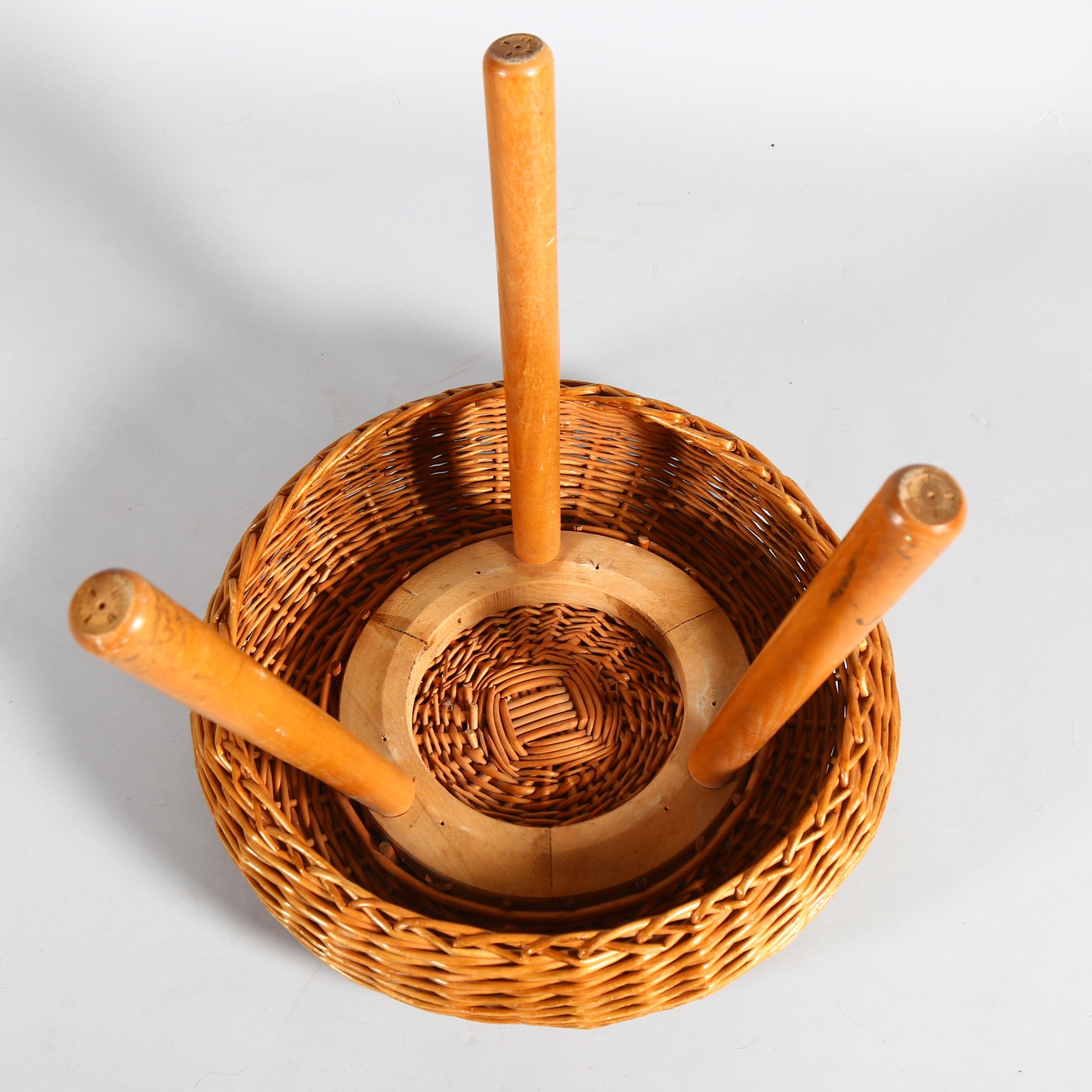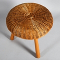 A Tony Paul 1960s' wickers stool / ottoman on beech tripod frame, height 43cm, diameter 45cm