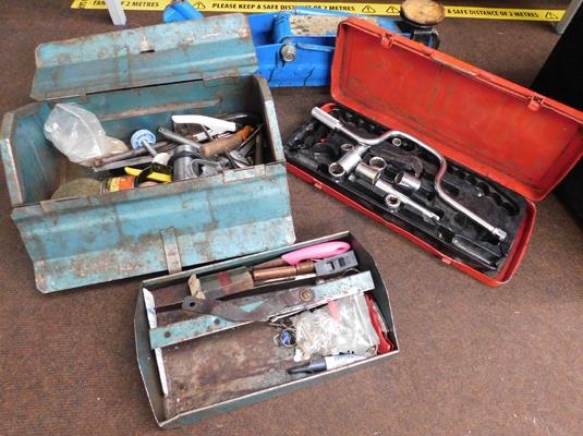 Car jack, wheel bolts & tool box