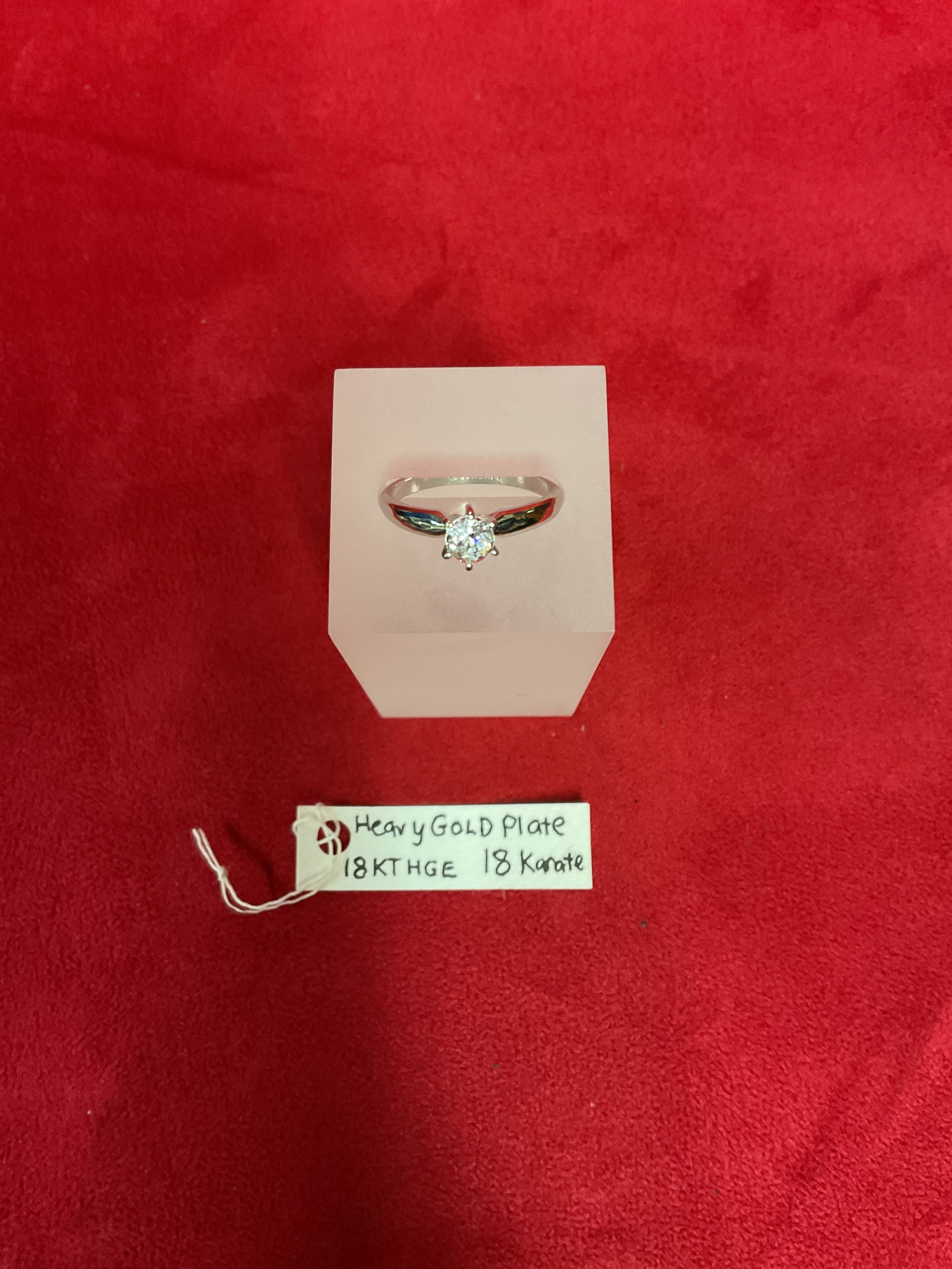A heavy gold plated 18KT HGE ring inset with clear stone