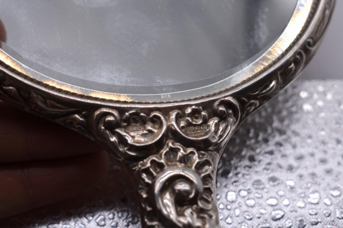 A four piece silver embossed dressing table set, by W I Broadway & Co, Birmingham 1963.