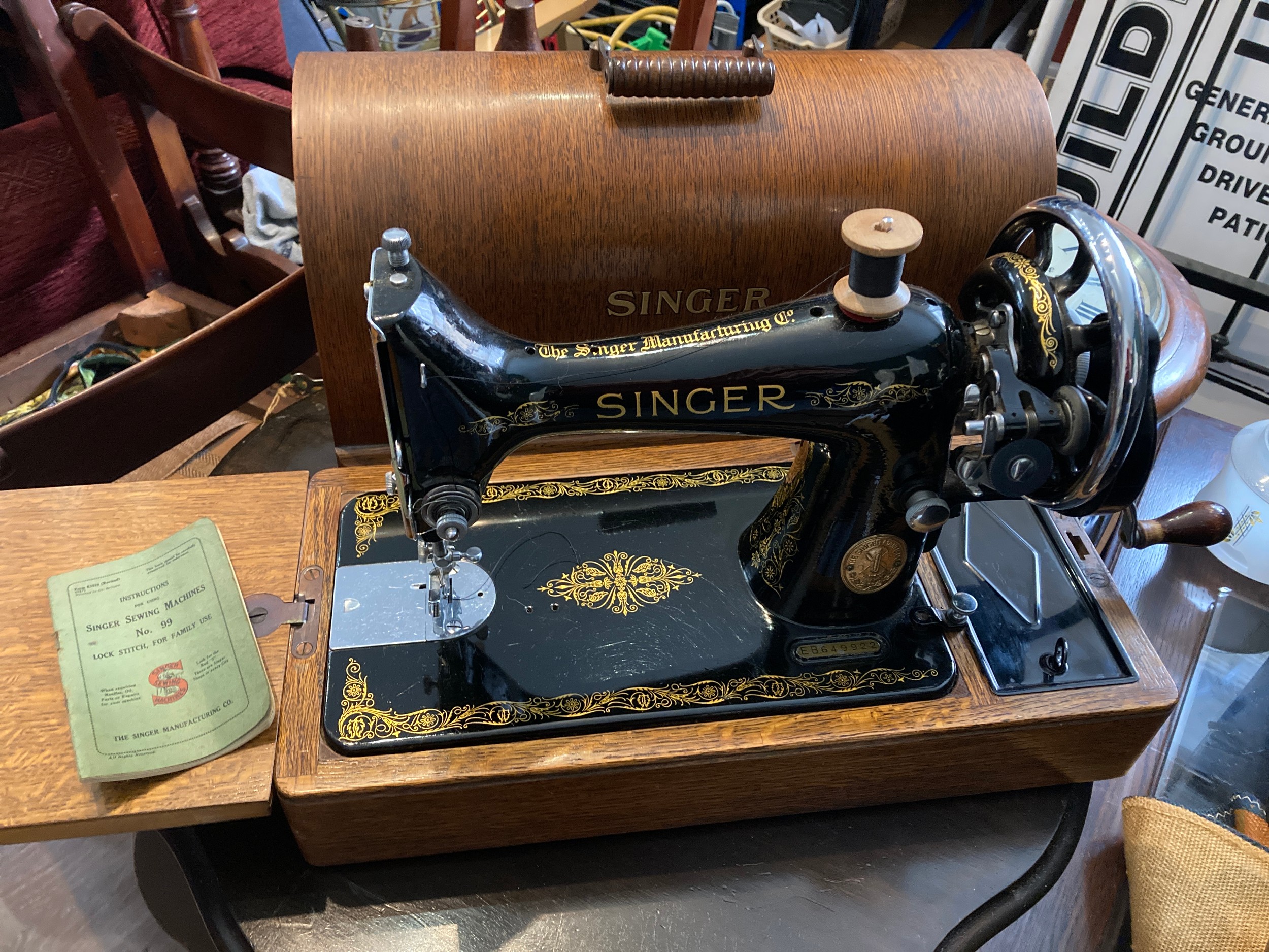 Cased Singer Sewing Machine Hand Cranked