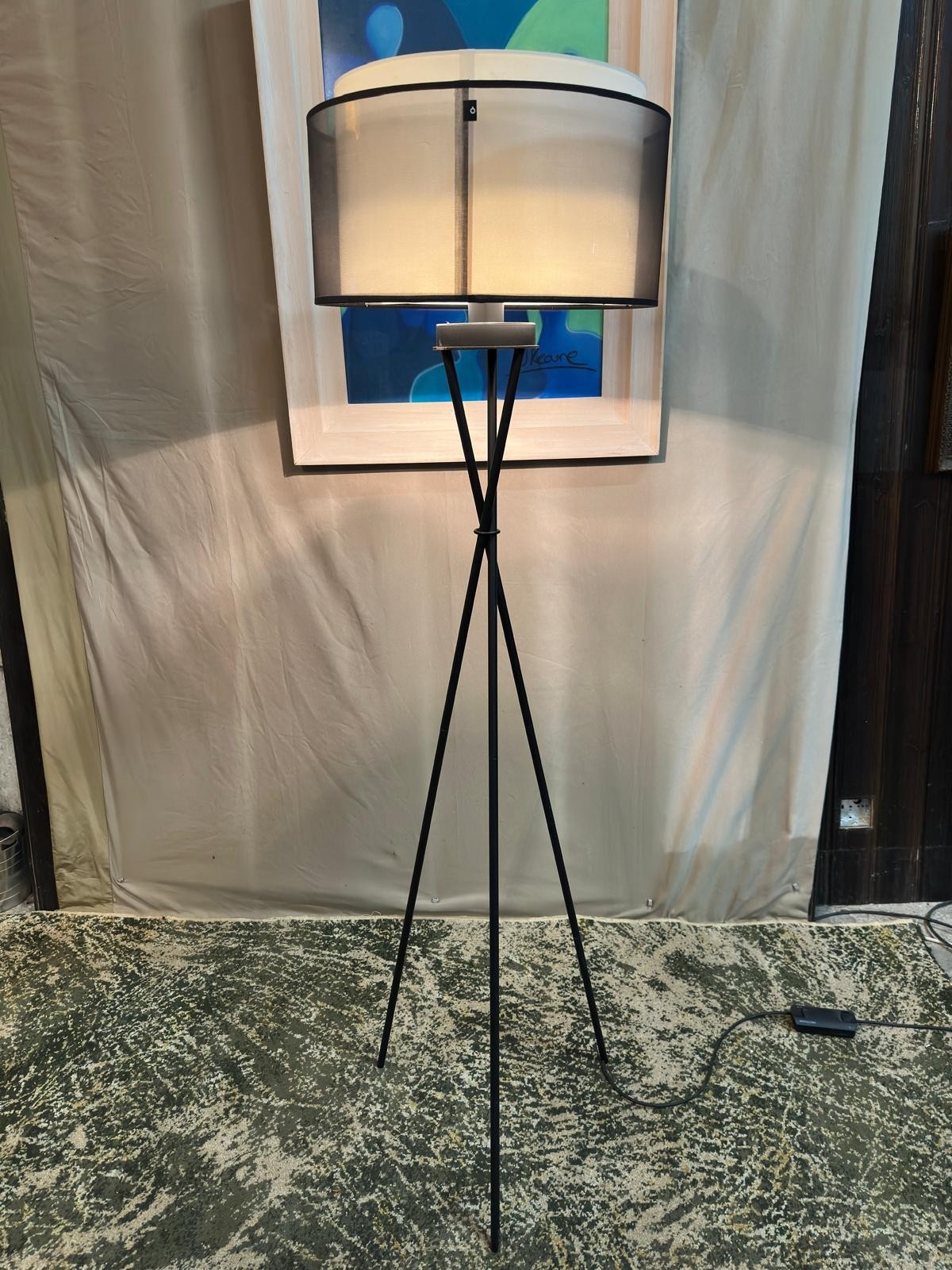 X Frame Standard Lamp with Twin Style Shade - working order (Height 165cm)
