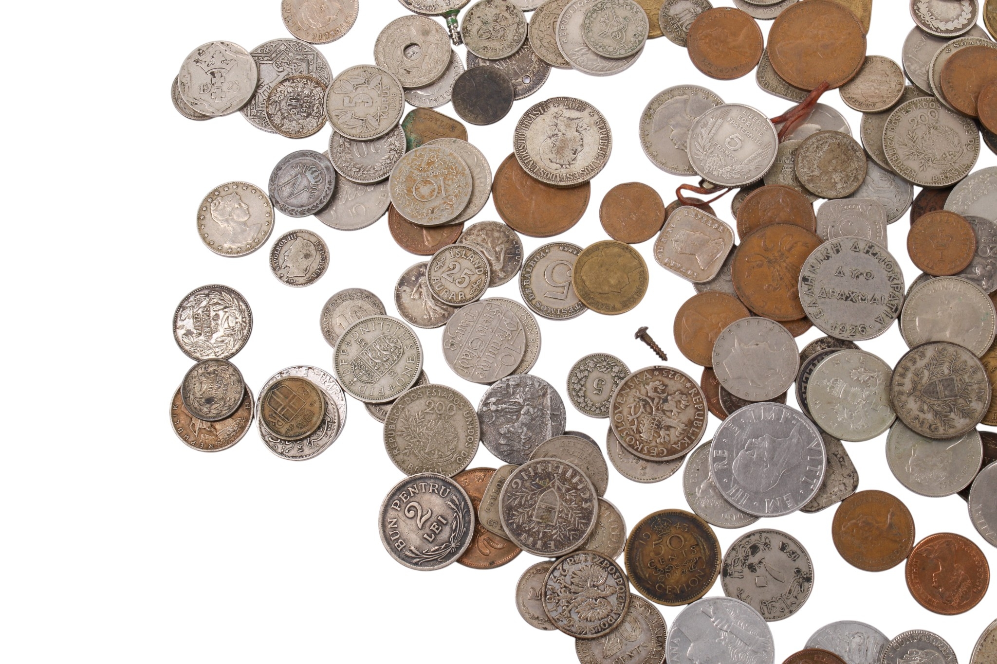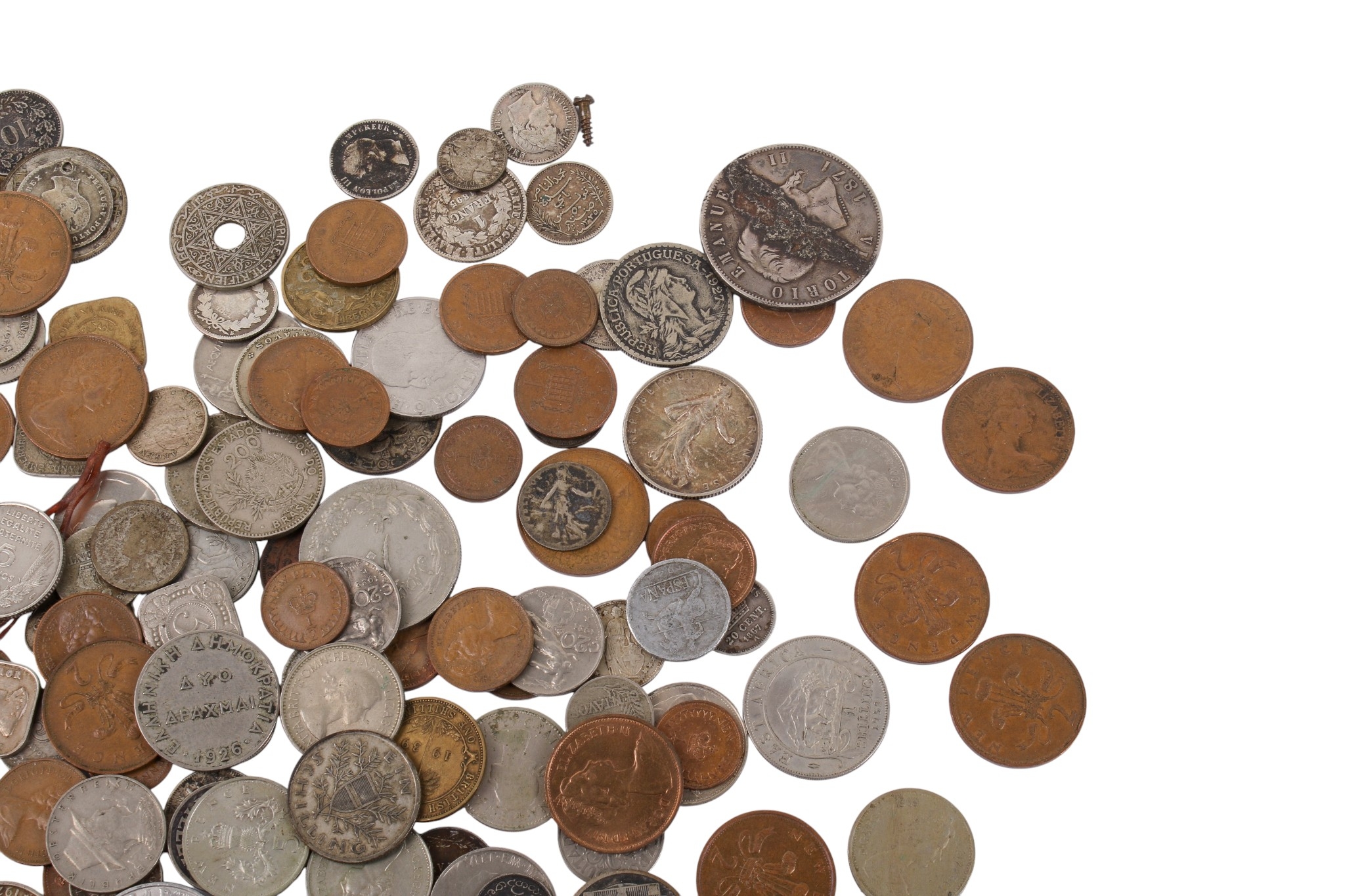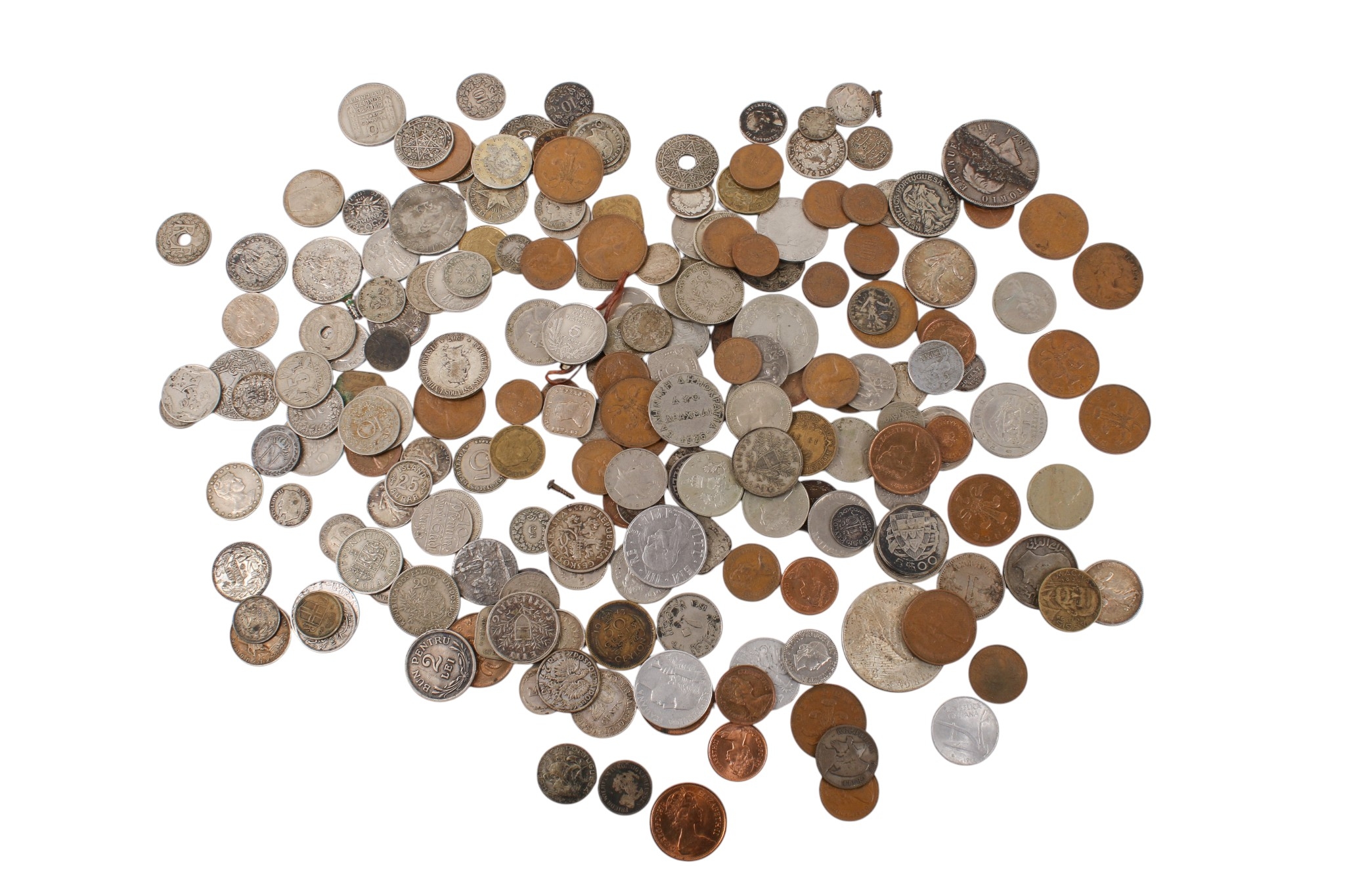 A collection of assorted 19th and 20th century world coins. Including silver