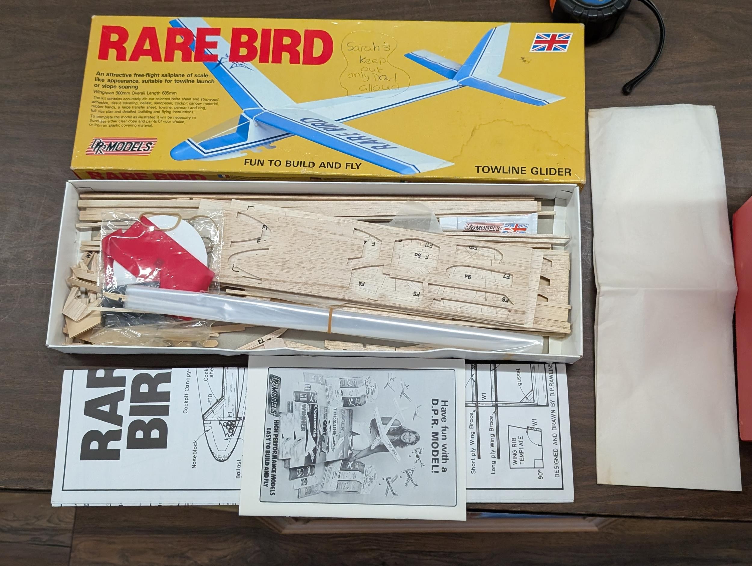 As new Rare Bird, Tow Line Glider wooden model kit