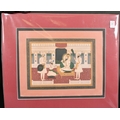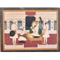 A Sikh school Indian painting of a Guru with servants in attendance, watercolour and gouache, 9" x 12".