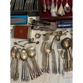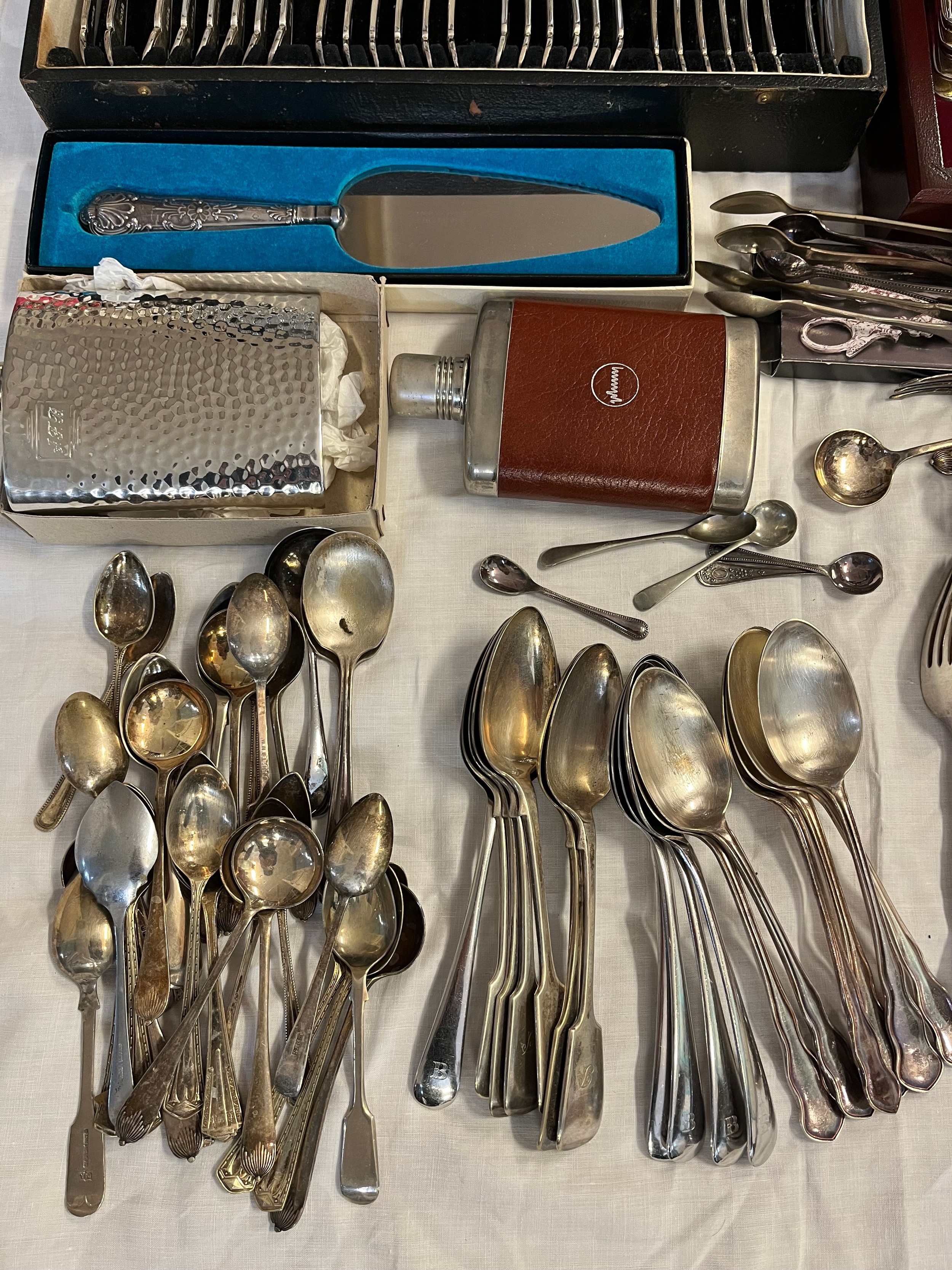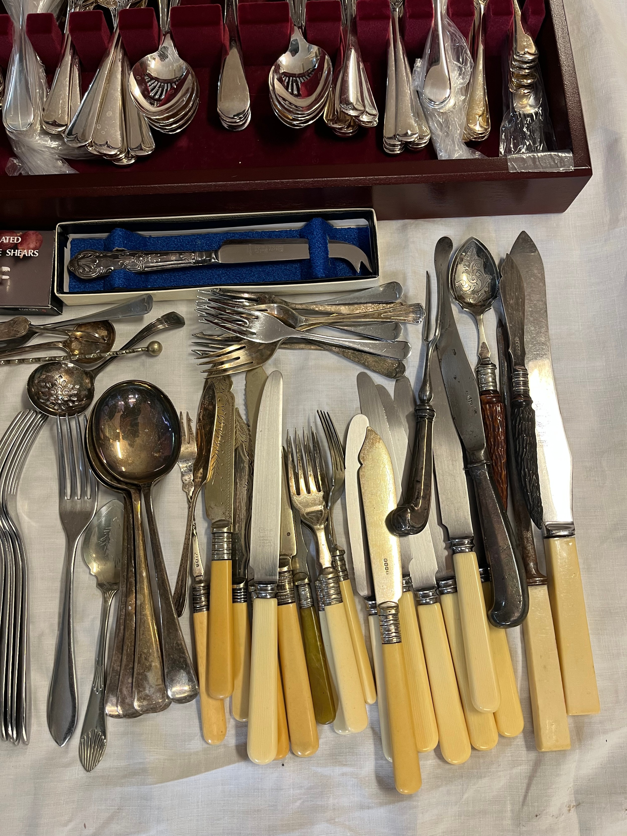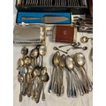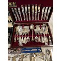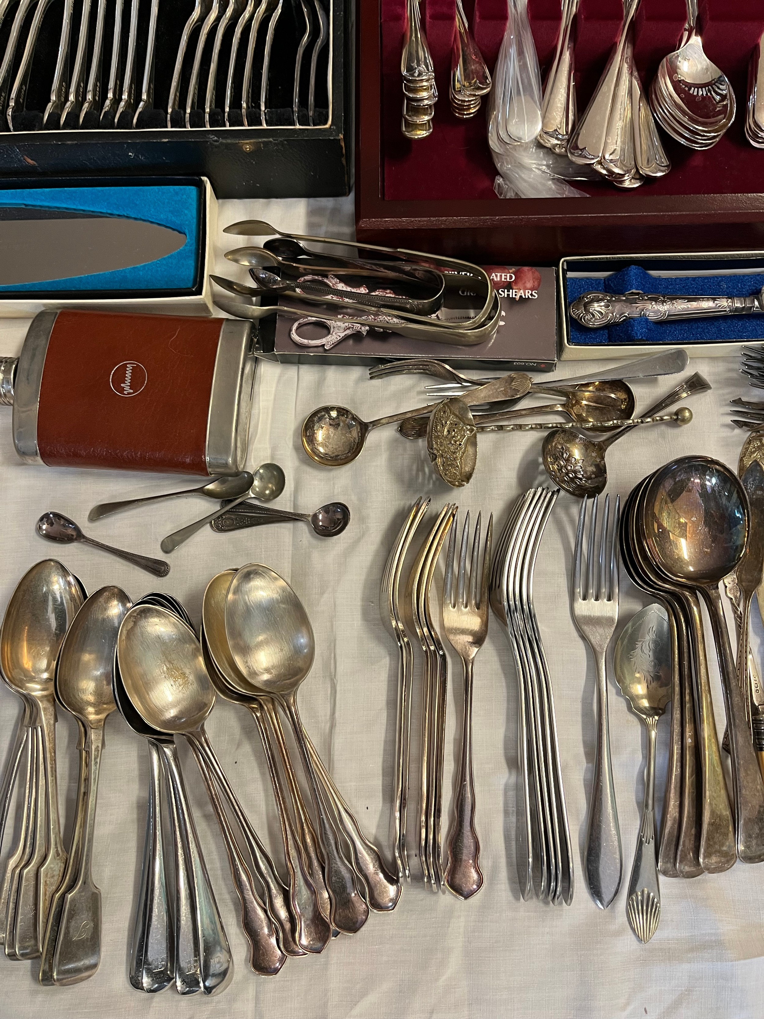 Two boxed canteens of silver plated cutlery together with other white metal items.