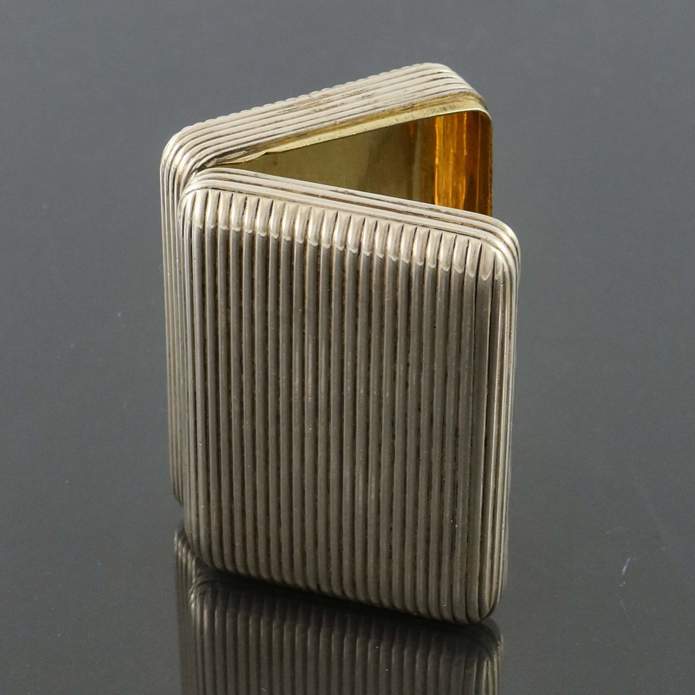 A George III silver snuff box, Thomas Phipps and Edward Robinson, London 1799, cushioned cuboid form, reeded throughout, gilt interior, 7cm x 5cm x 2cm, 3.04ozt